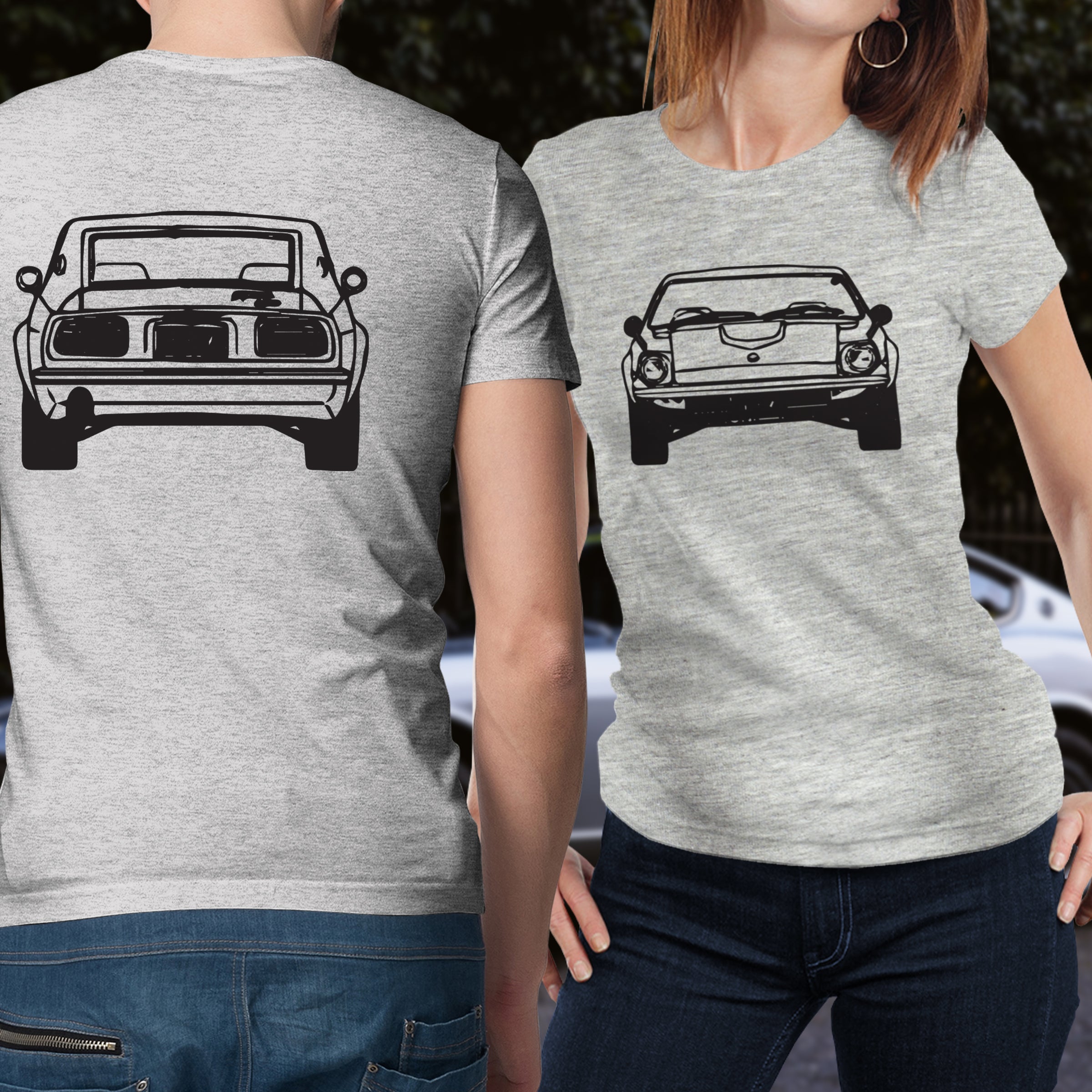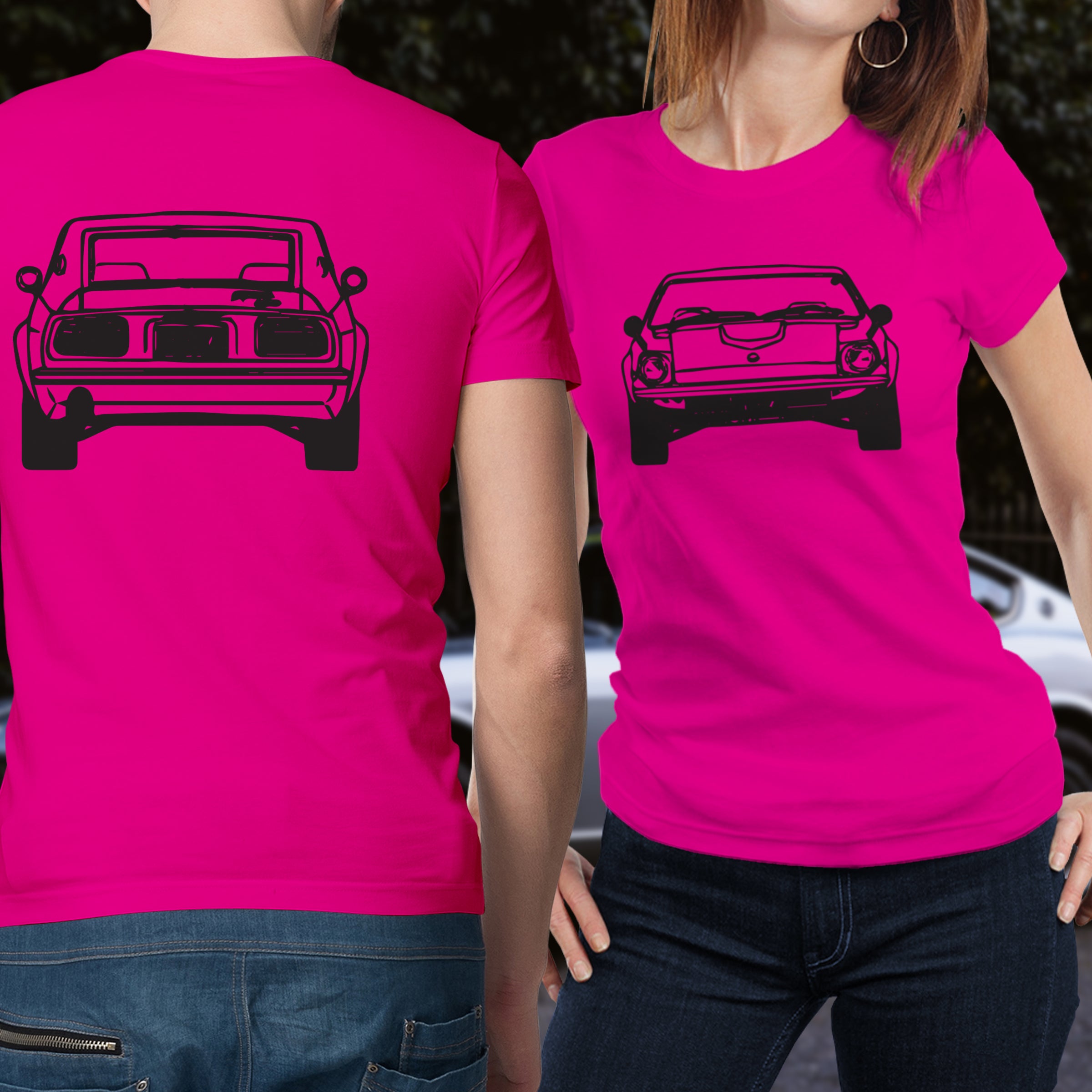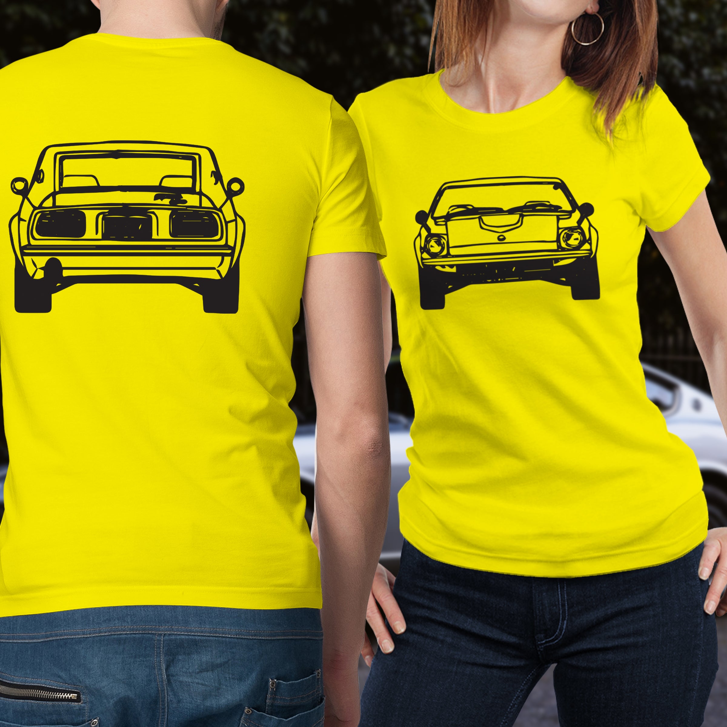 Datsun Z Front/Back Shirt. All shirts are 100% Preshrunk cotton with a heat pressed digital printed image. Shirts are custom made to order.