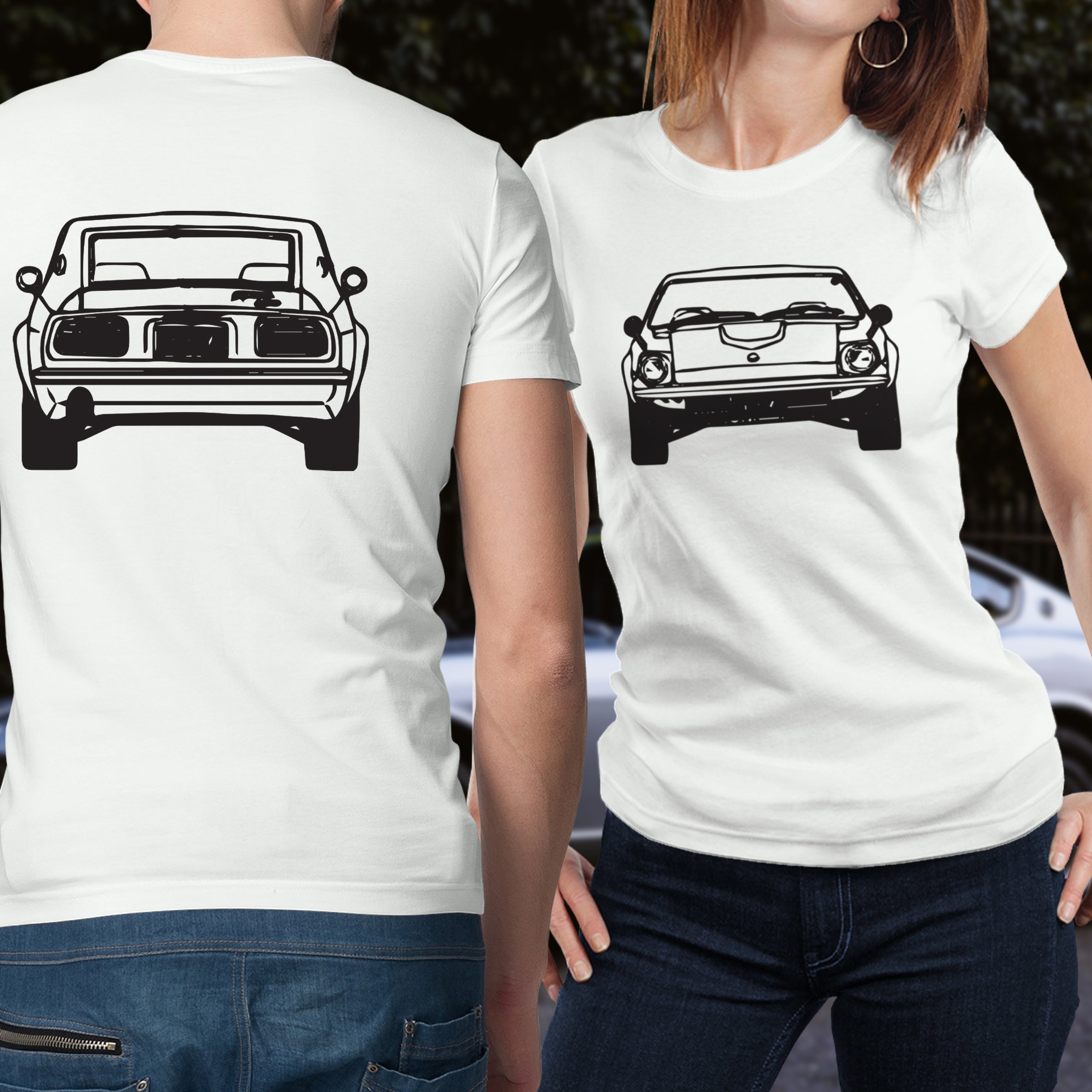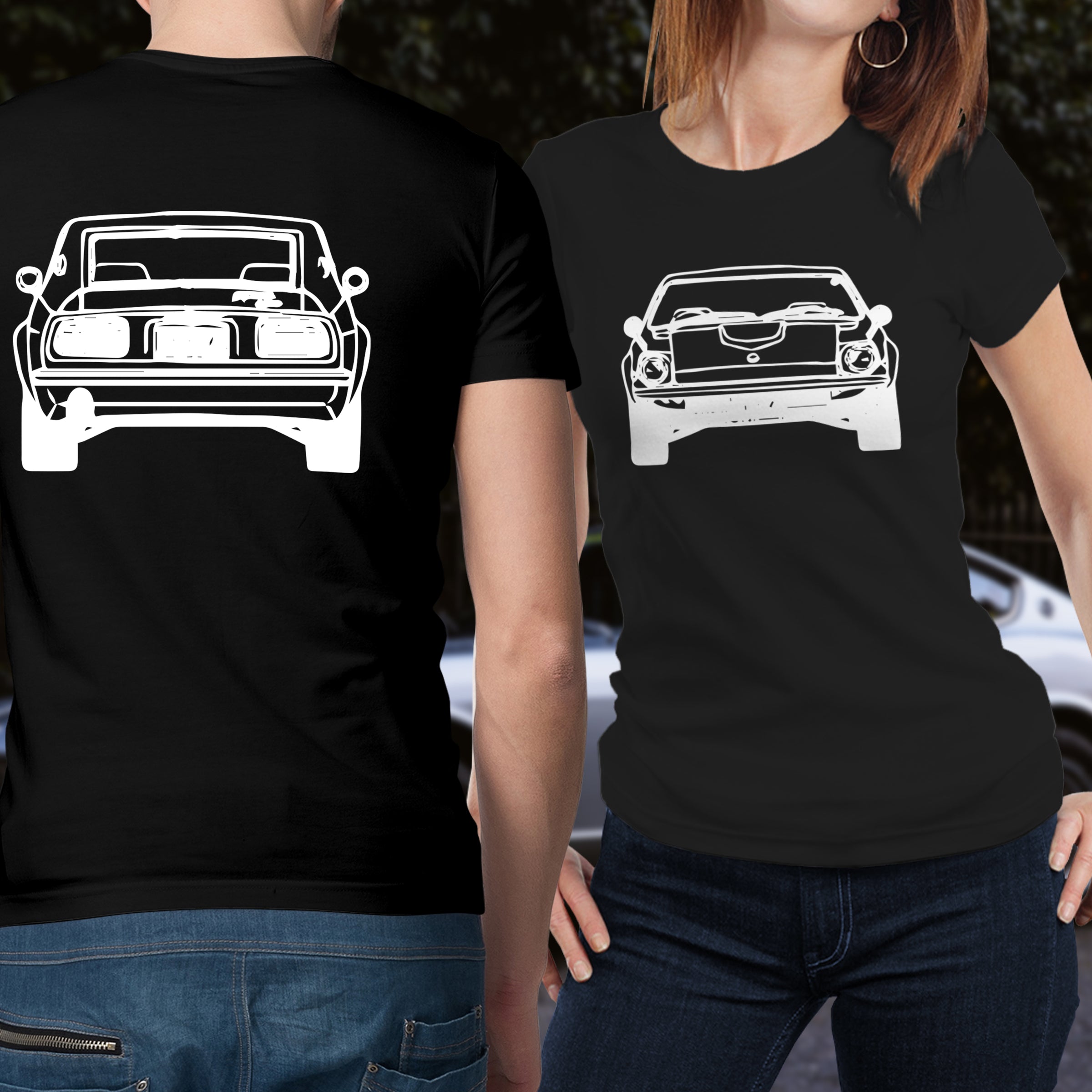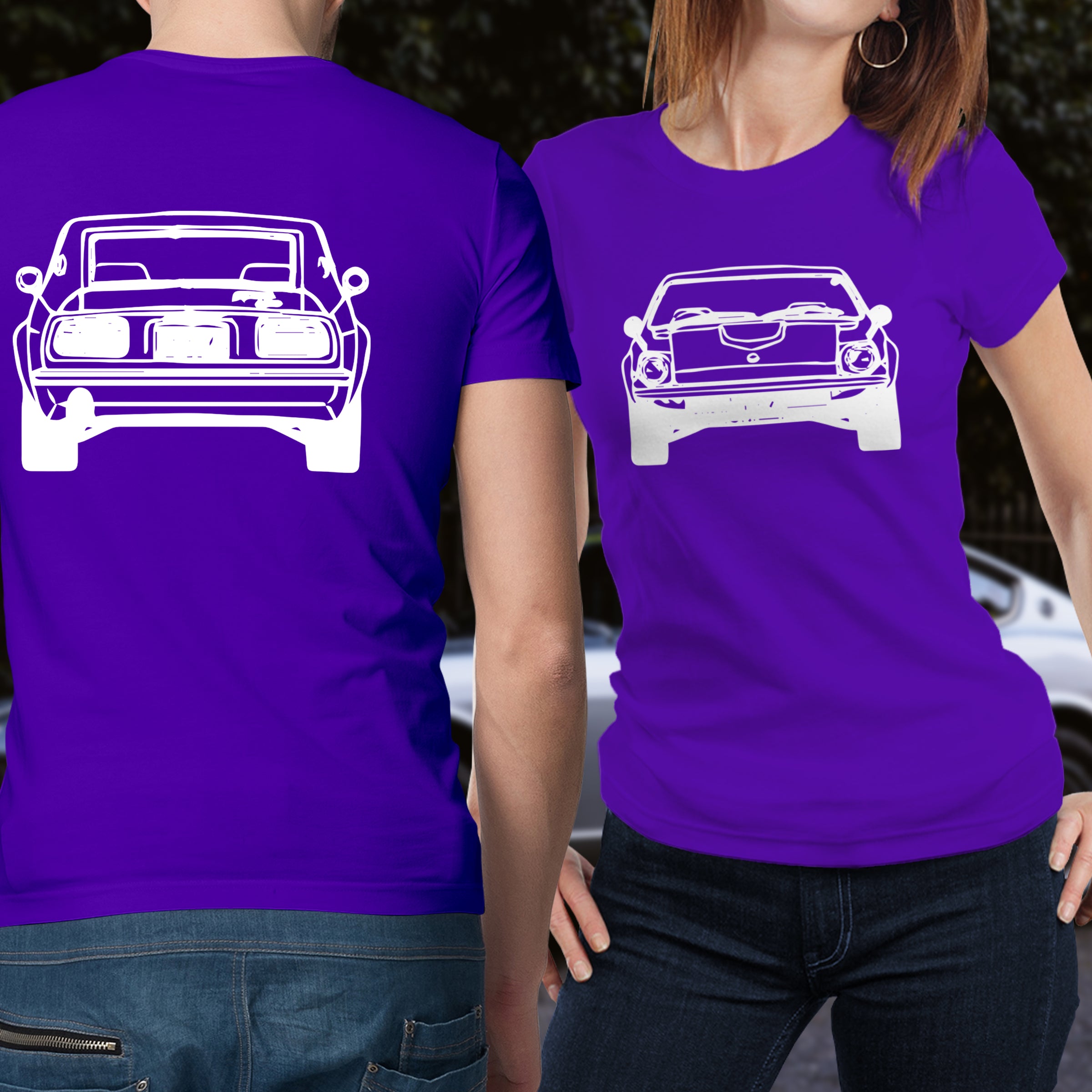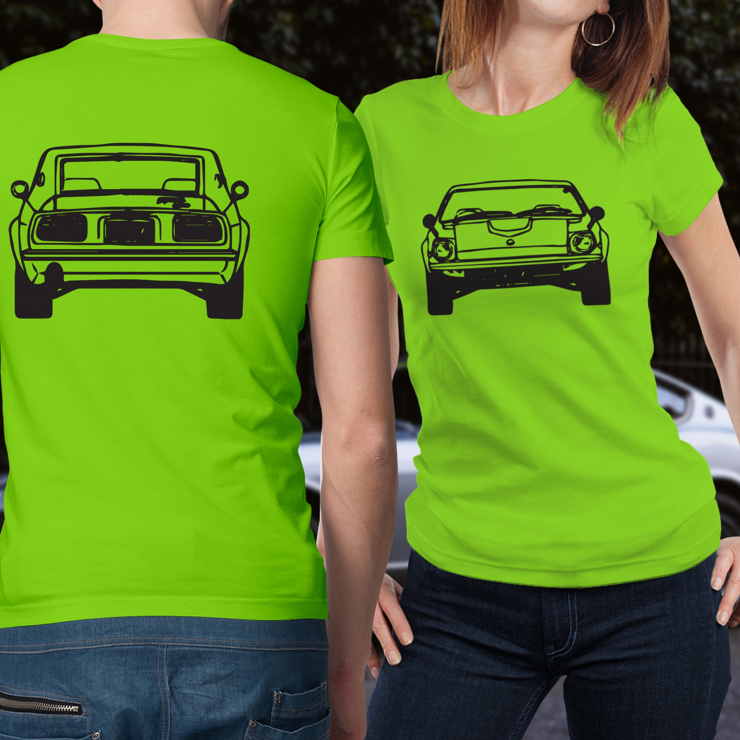 Datsun Z Front/Back Shirt. All shirts are 100% Preshrunk cotton with a heat pressed digital printed image. Shirts are custom made to order.