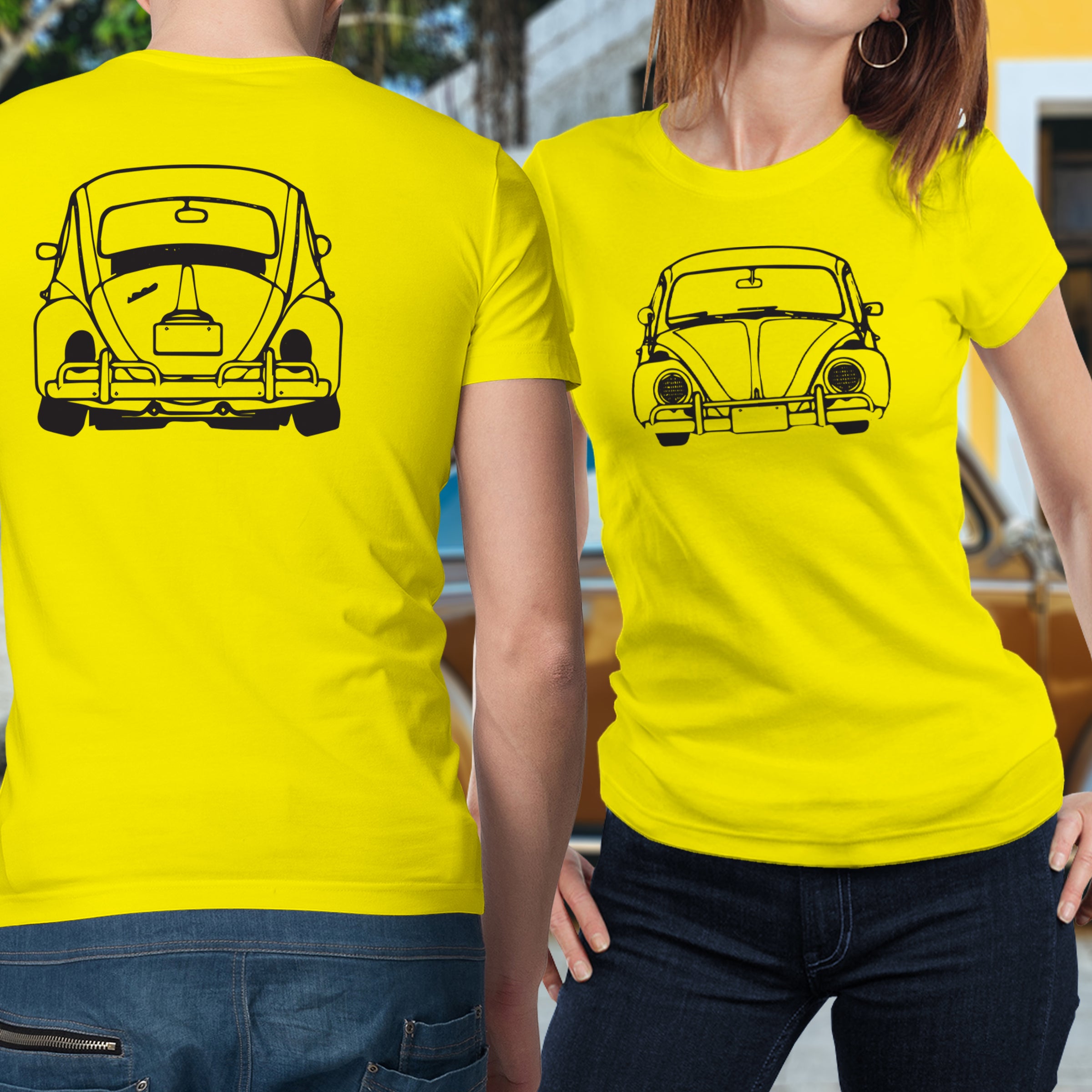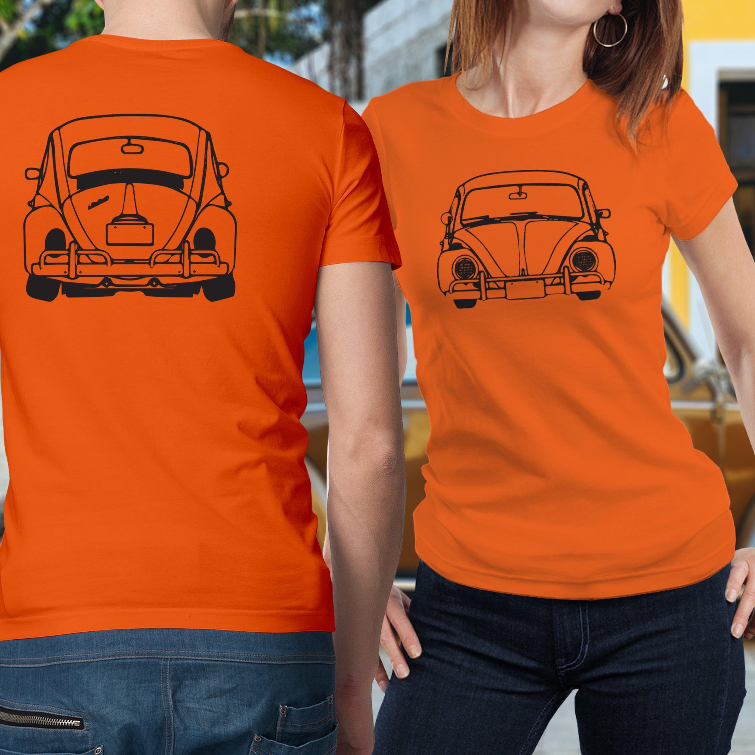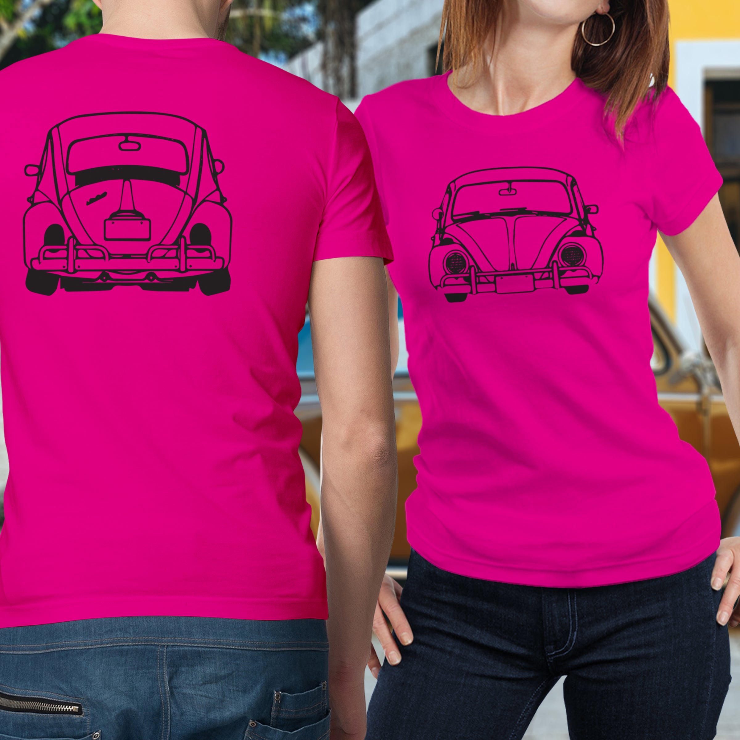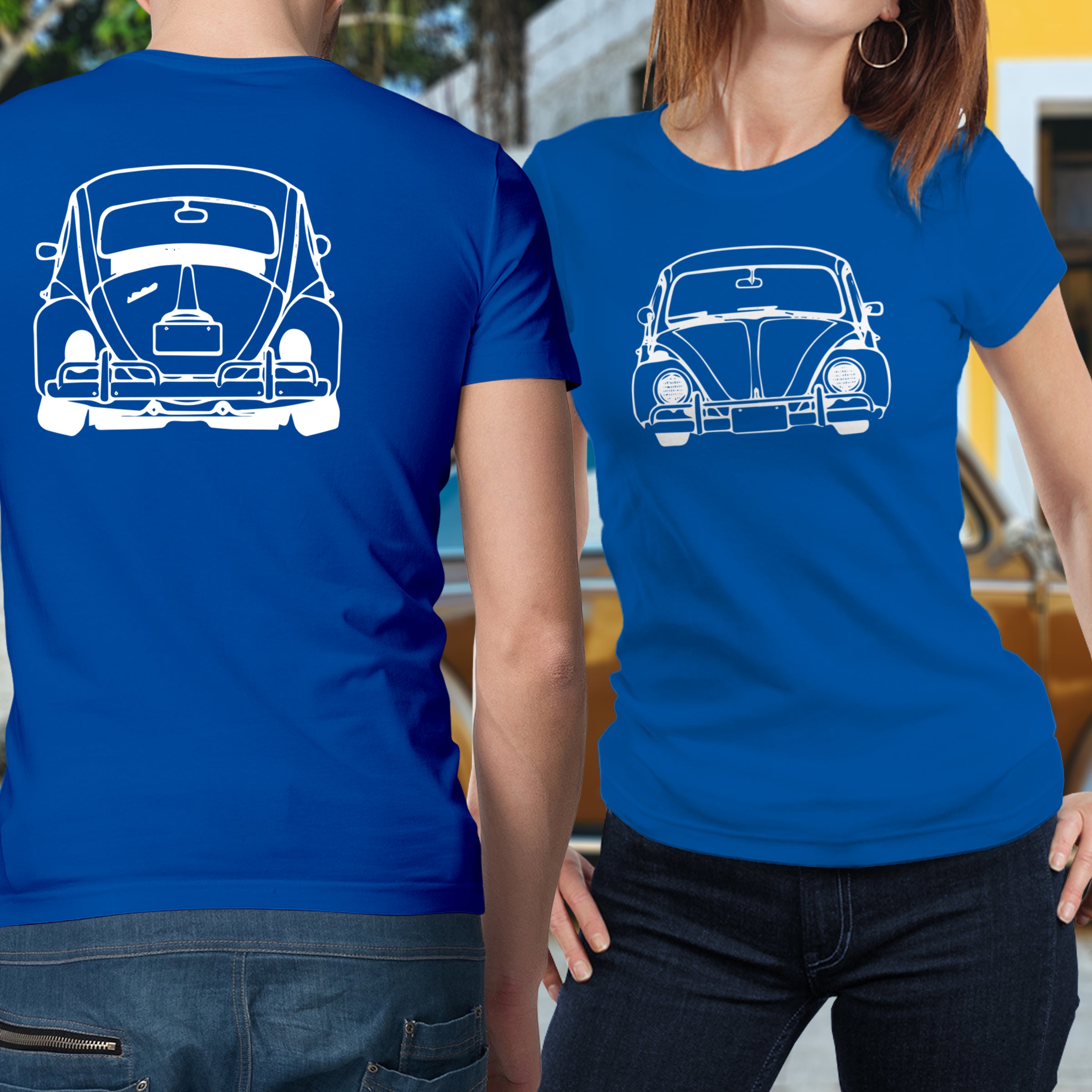 VW Bug Front/Back Shirt.  All shirts are 100% Preshrunk cotton with a heat pressed digital printed image.  Shirts are custom made to order.
