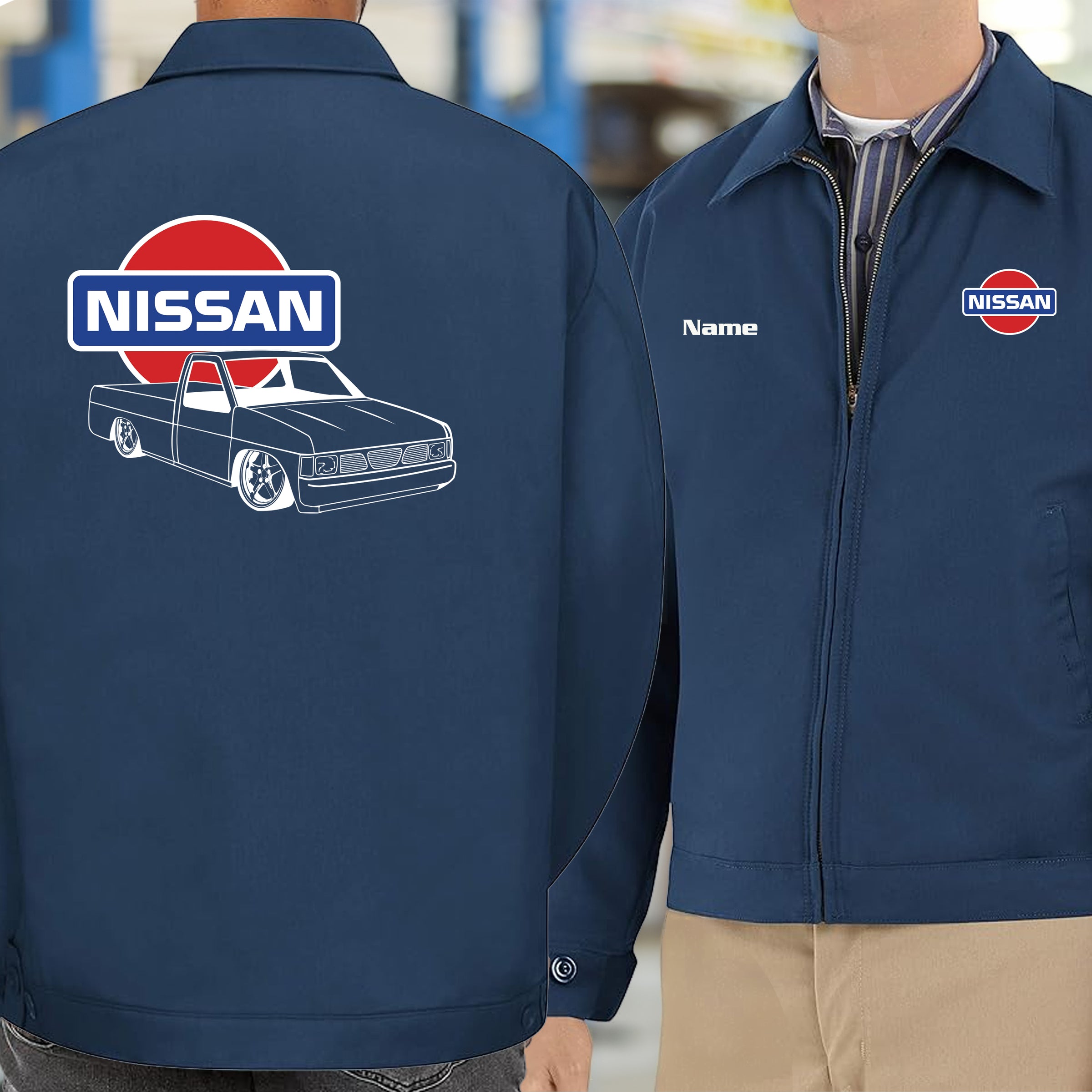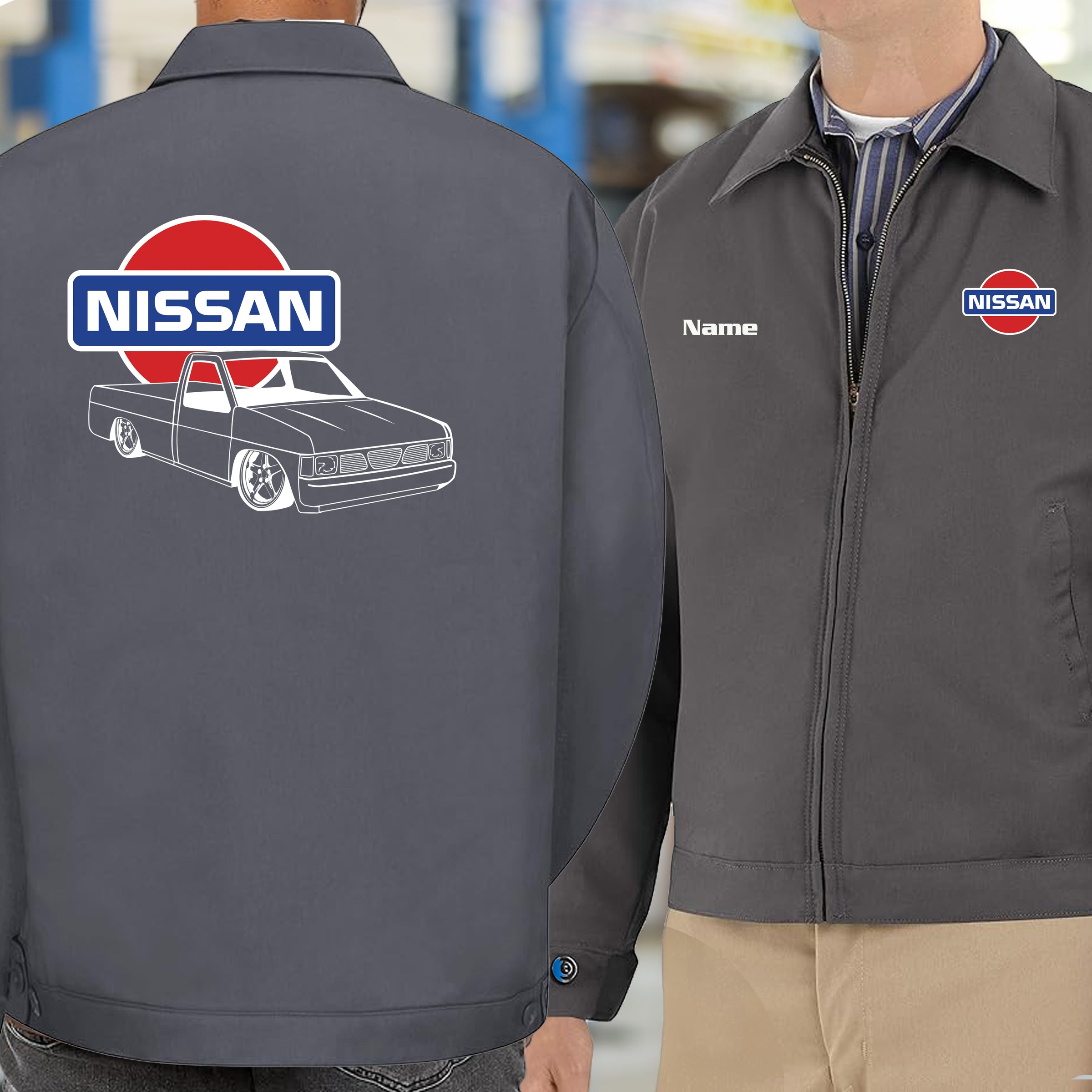 Rock this Nissan Hardbody mechanic's jacket and celebrate the truck that proved pickups could be both practical and jaw-dropping when customized right. The bold design honors the legendary mini truck that became a lowrider icon through the dedication of builders who understood its potential. Durable enough for serious wrenching, styled sharp for truck meets and street cruises. Whether you're building your dream custom or just living the truck lifestyle, this jacket delivers authentic character—because the Hardbody didn't just haul loads, it hauled dreams and became the ultimate expression of mini truck culture excellence.