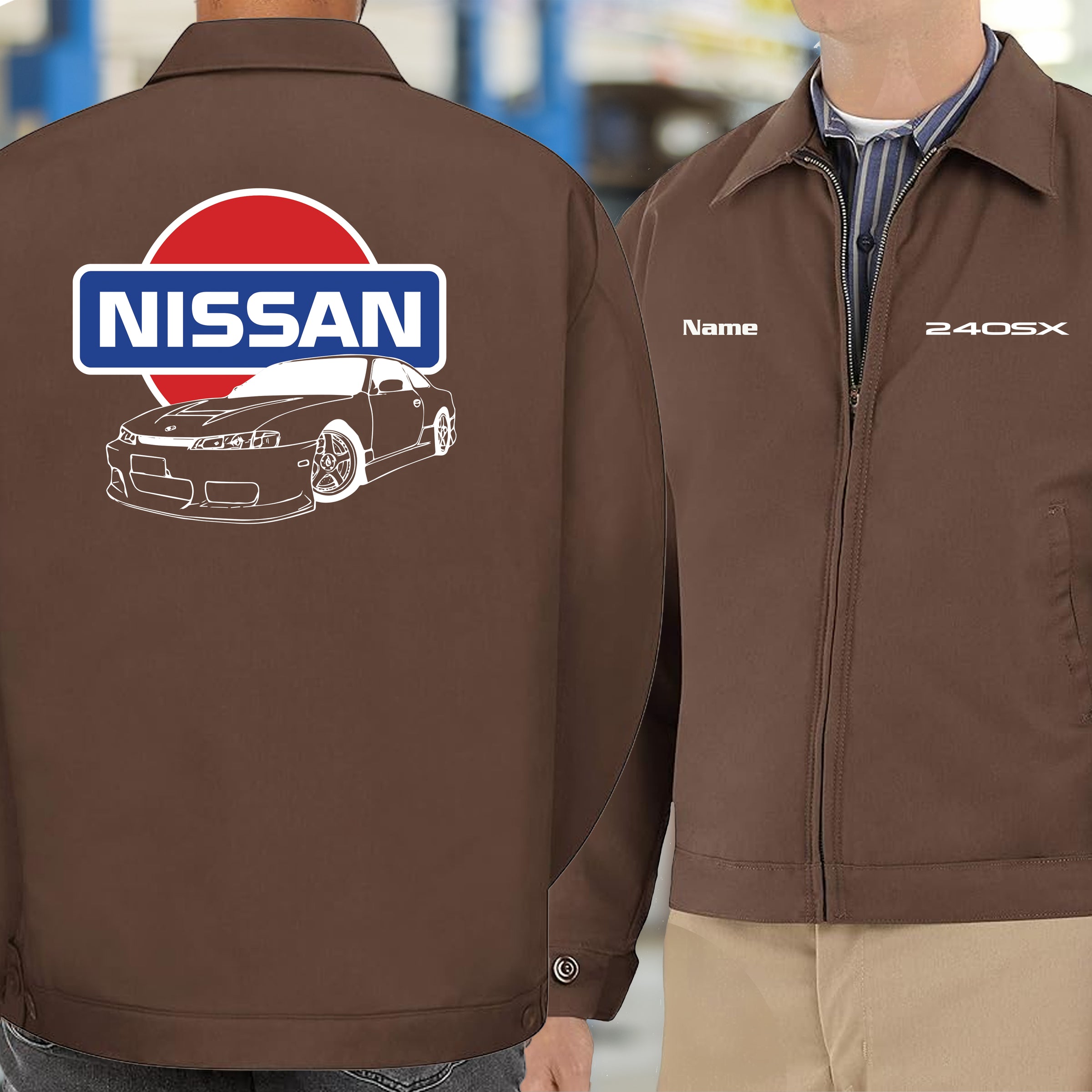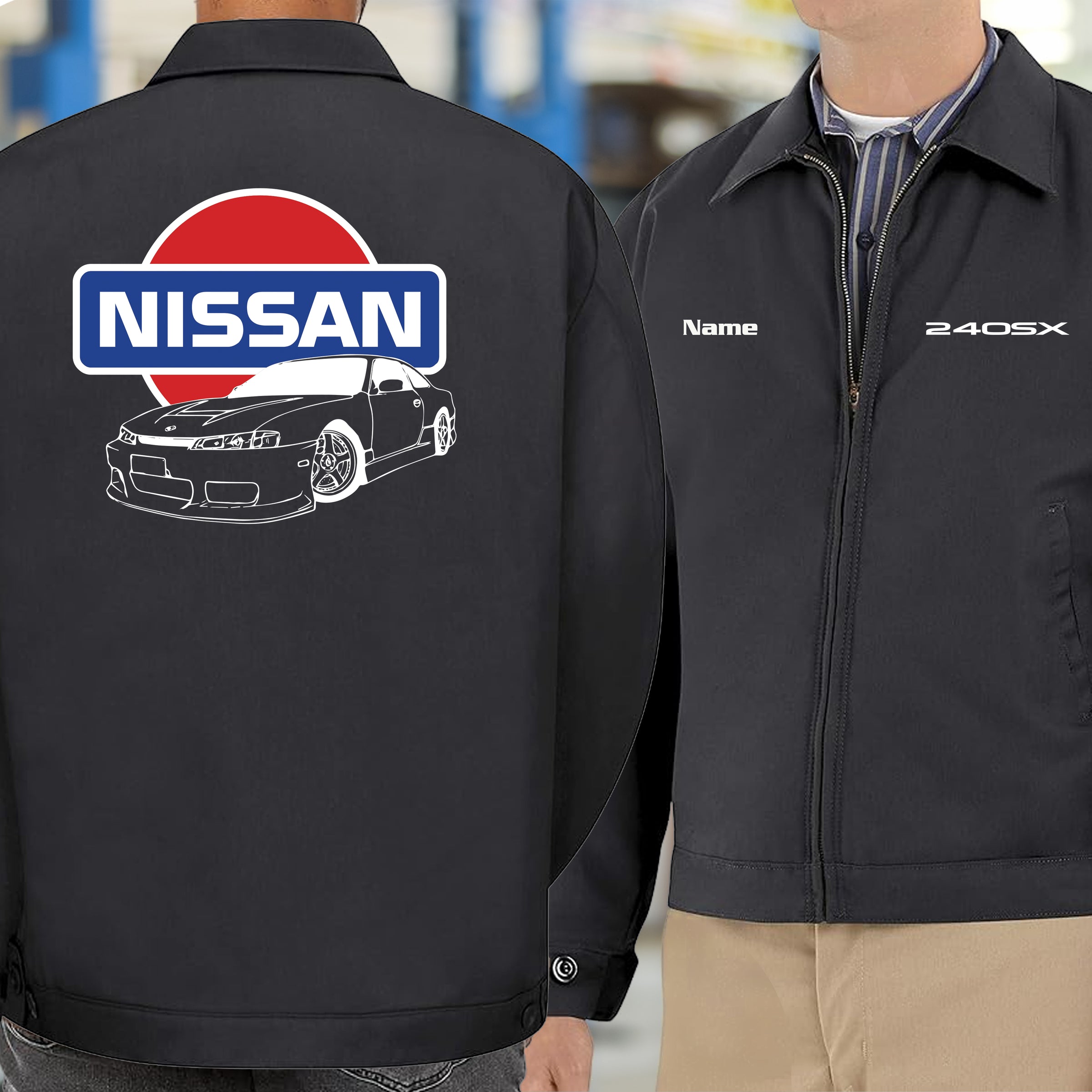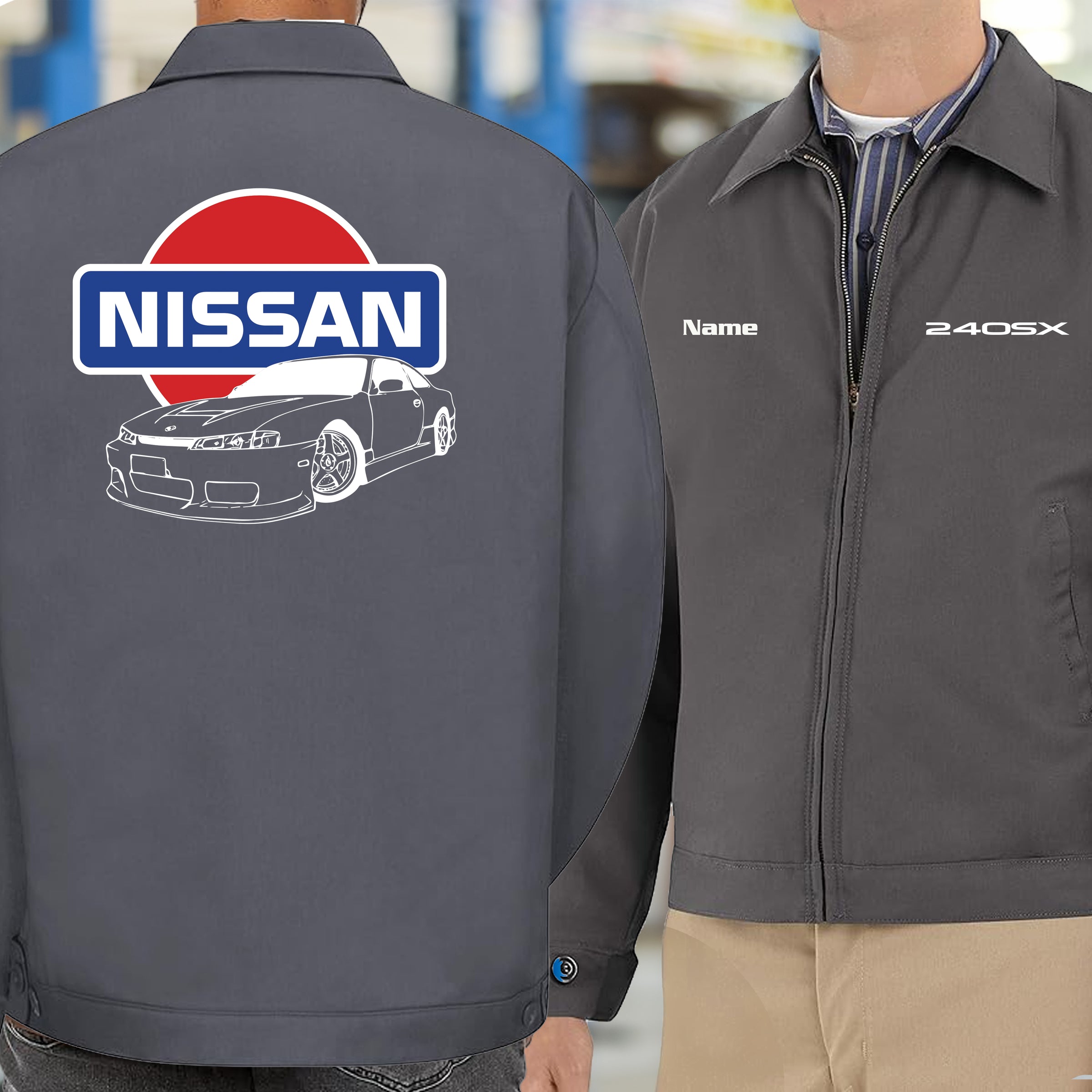 Represent the evolution with this Nissan S14 Kouki Old School Logo Mechanic's Jacket. Built for the drift heads and tuners who know the Kouki facelift elevated the 240SX to legendary status. Throw it on in the garage while you're dialing in your setup, wear it trackside when you're chasing times, or rock it at the meet to show you know your stuff. Tough construction meets vintage JDM vibes—this is essential wear for true S14 Kouki believers.