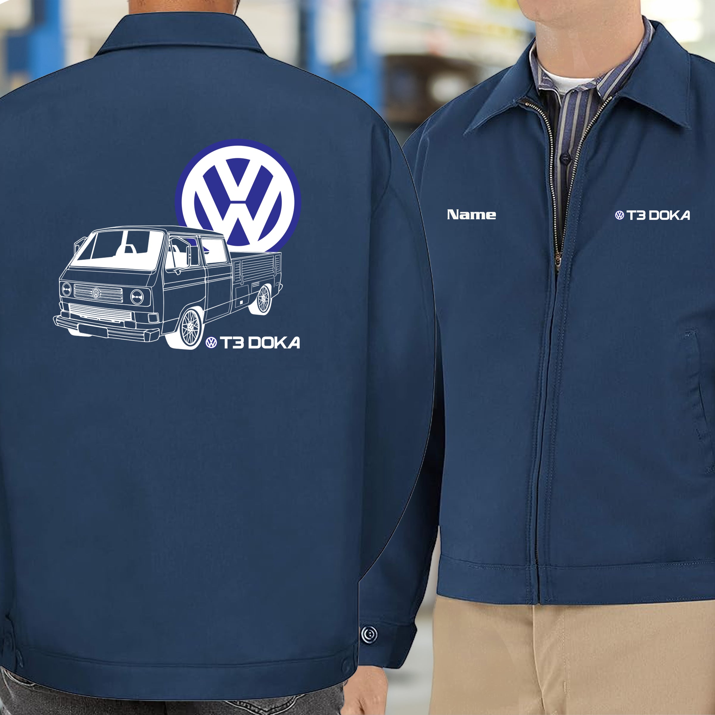 This VW T3 Doka mechanic's jacket is made for those who respect the dual-cab icon that defined a generation. The T3 Doka earned its legendary status through reliability, versatility, and timeless design—qualities this jacket embodies. Whether you're restoring your own, spending weekends in the shop, or simply devoted to air-cooled heritage, this is the outerwear that speaks your language. Built tough for real work and real passion, it's the perfect layer for anyone serious about their VW commitment.