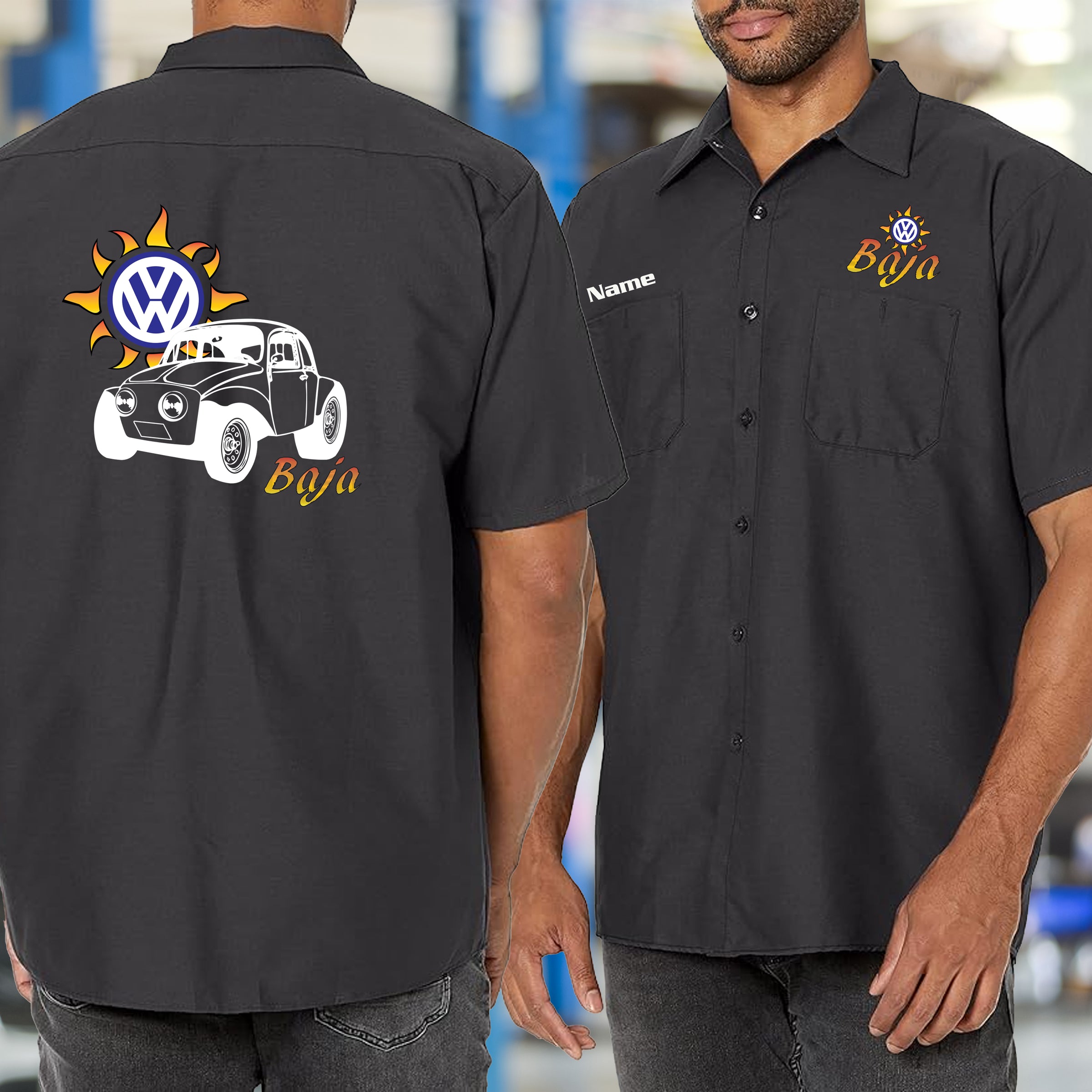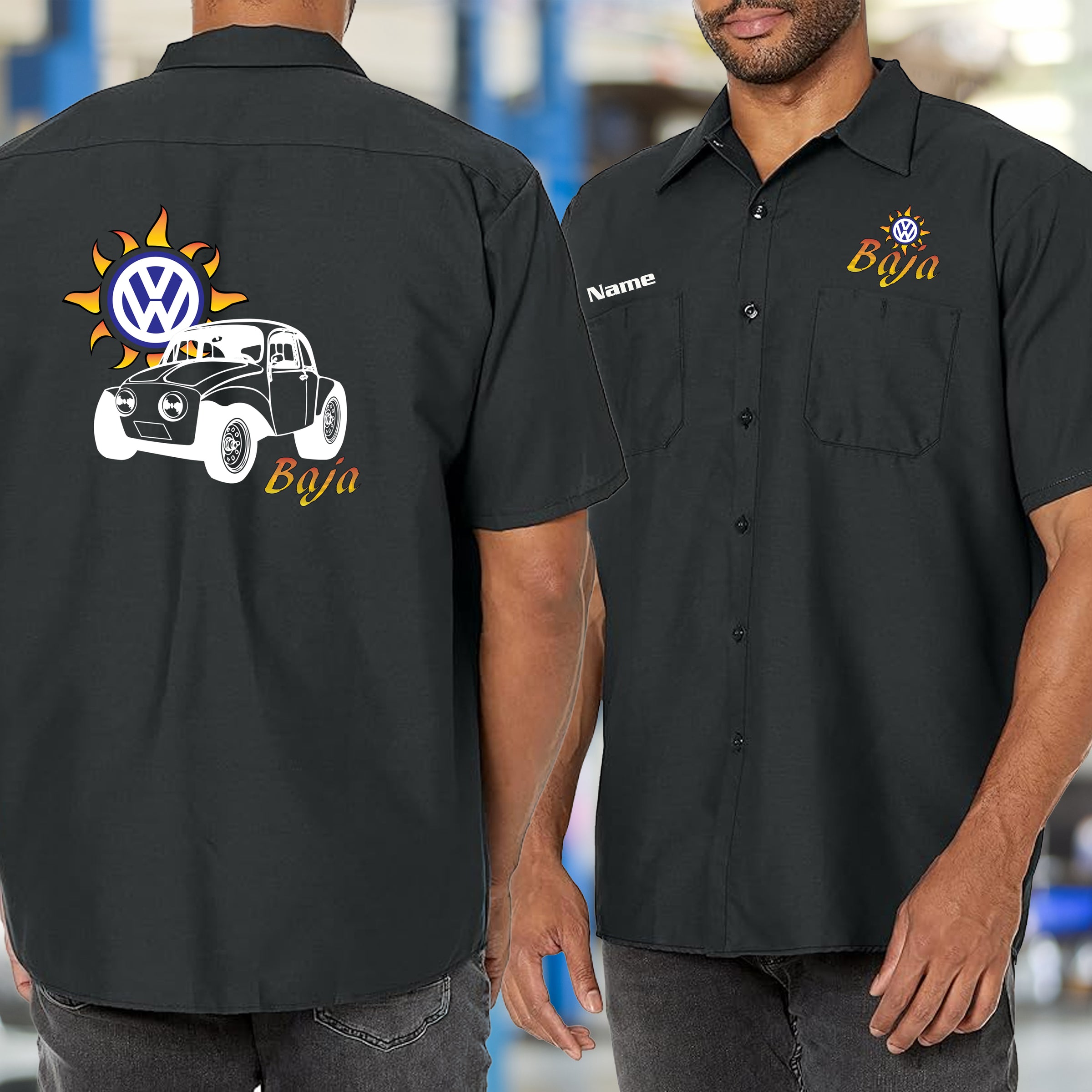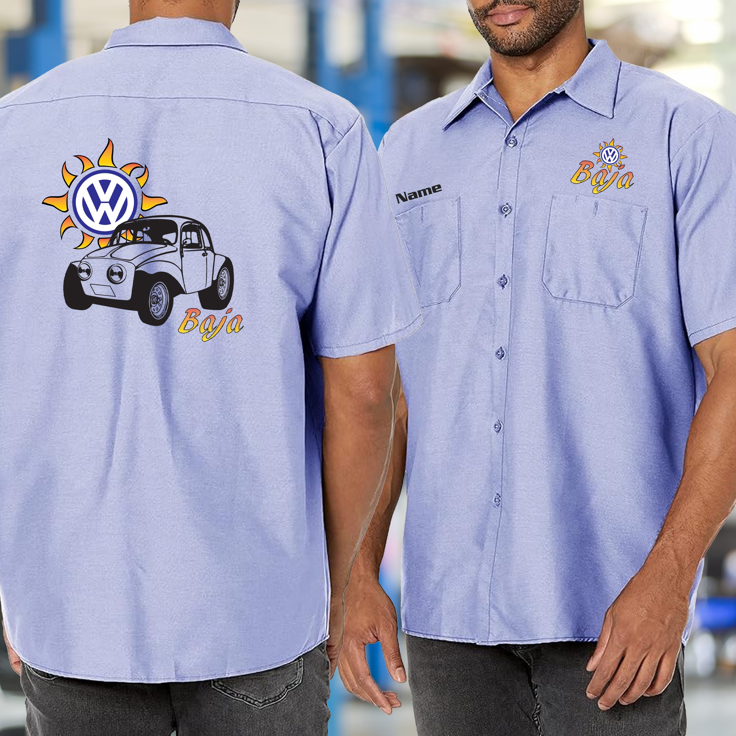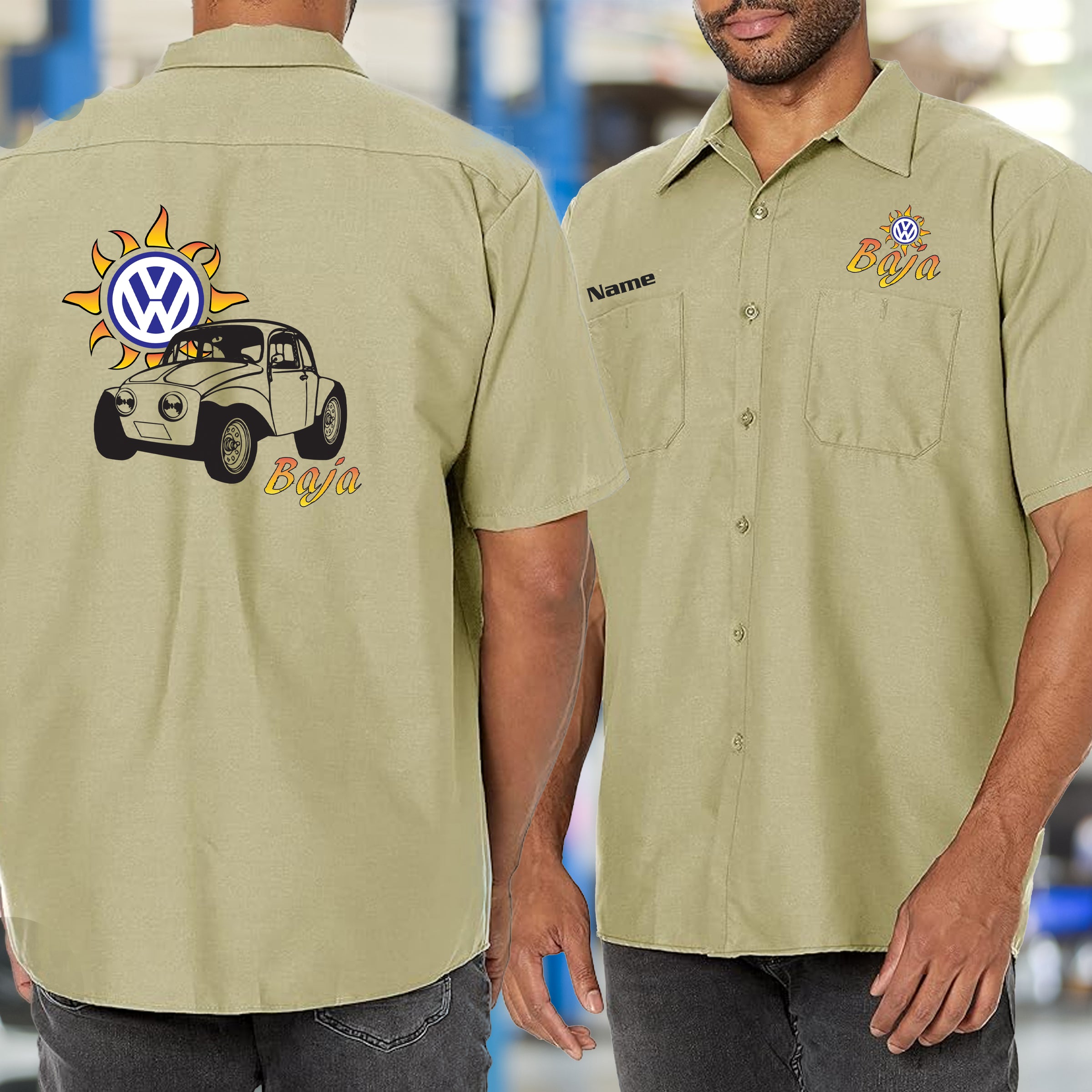 Sport this VW Baja Bug shirt and celebrate the air-cooled legend that conquered deserts and hearts alike. Perfect for the garage, the track, or showing off at car shows, this shirt honors the bug that proved VW could handle anything. Comfortable and casual, it's the go-to piece for enthusiasts who appreciate the Baja Bug's raw spirit and timeless appeal. Wear your off-road passion loud.