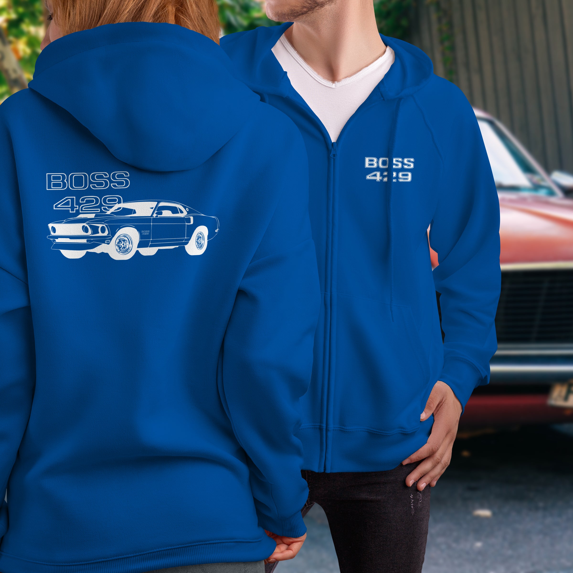 Zip into automotive greatness with this Boss 429 Mustang Logo Full Zip Hoodie, a wearable homage to the first-generation monster that set the standard for raw muscle. The full-zip design gives you versatility—layer it up for extra warmth or rock it open over your favorite tee. Built for fans who appreciate the golden age of performance, this hoodie combines comfort with undeniable style. Celebrate the engine that made legends and wear your passion for classic Mustang power.