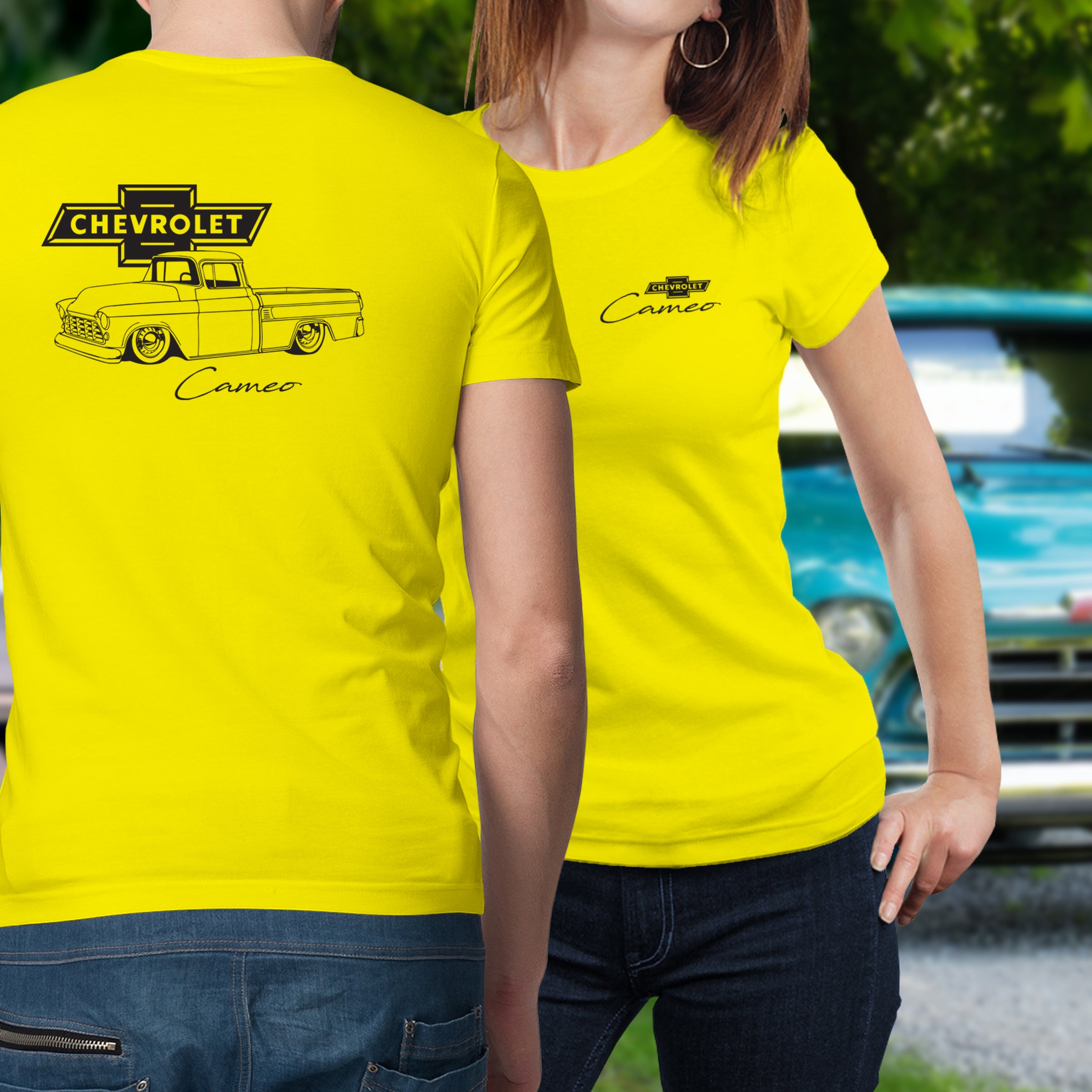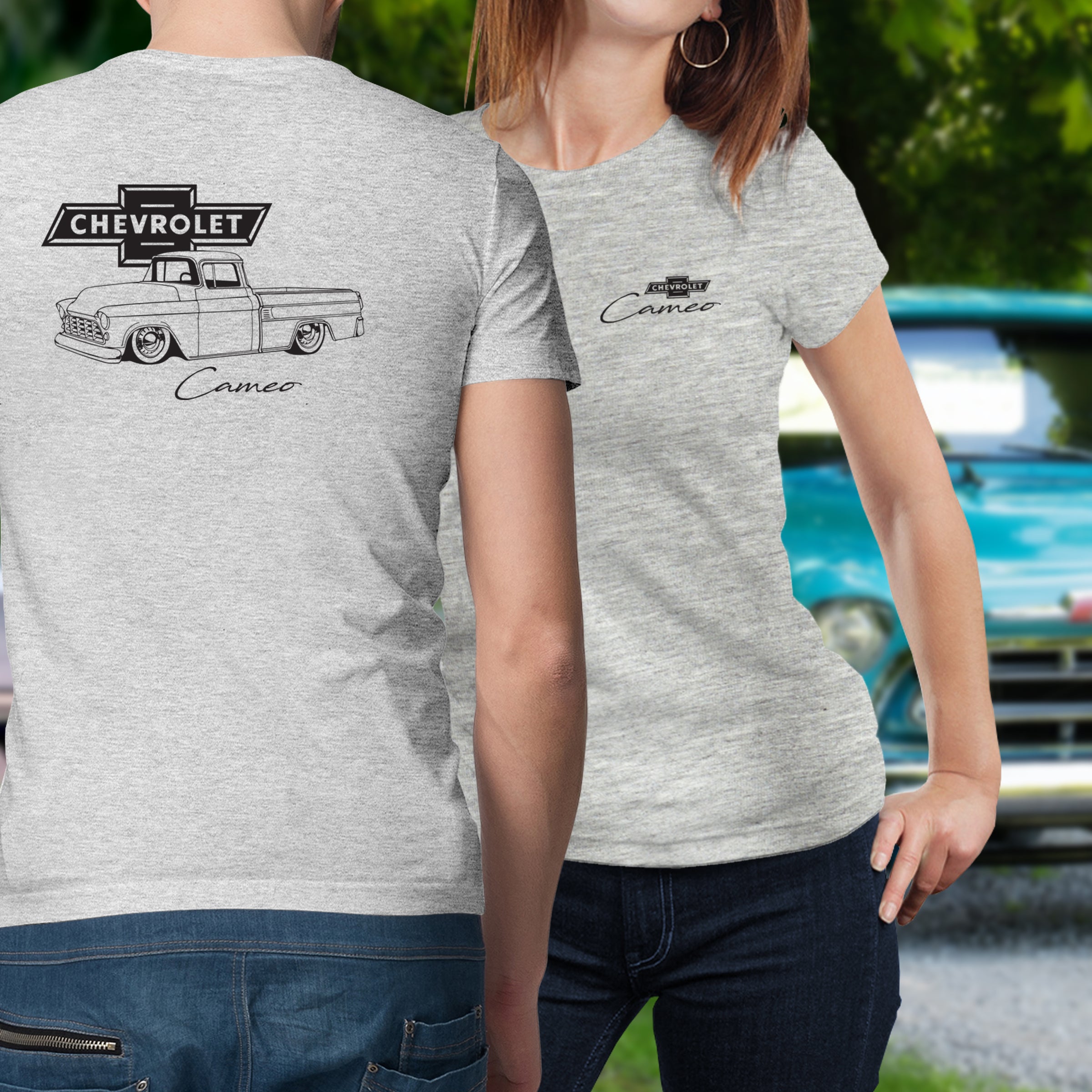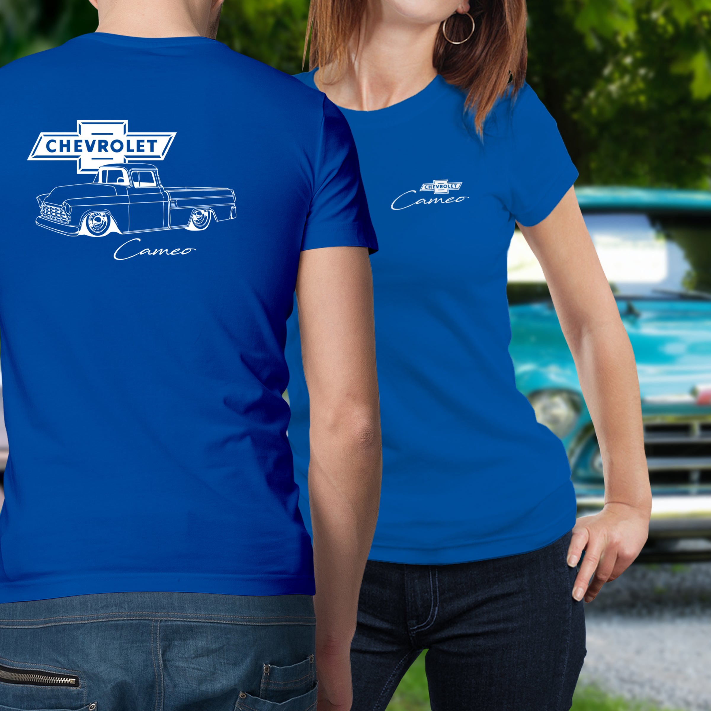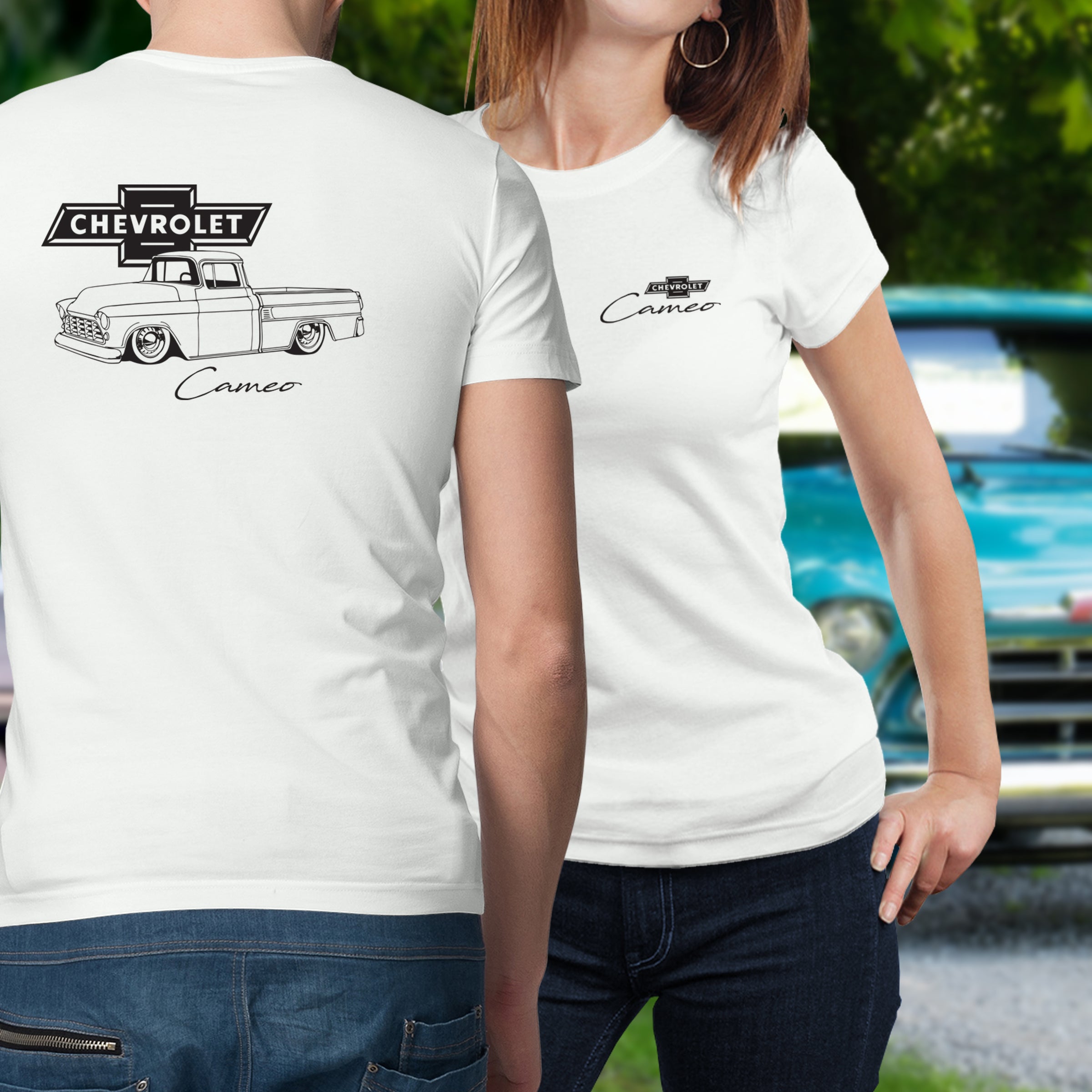 Celebrate automotive history with this Chevy Cameo Truck Shirt, a tribute to one of the most iconic pickup designs ever built. The Cameo's revolutionary two-tone paint scheme and distinctive styling revolutionized the truck market when it debuted. Perfect for classic truck enthusiasts, collectors, and anyone who appreciates American automotive heritage. Wear your passion for vintage Chevrolet trucks with pride. Comfortable, durable, and designed for fans who know their classics.