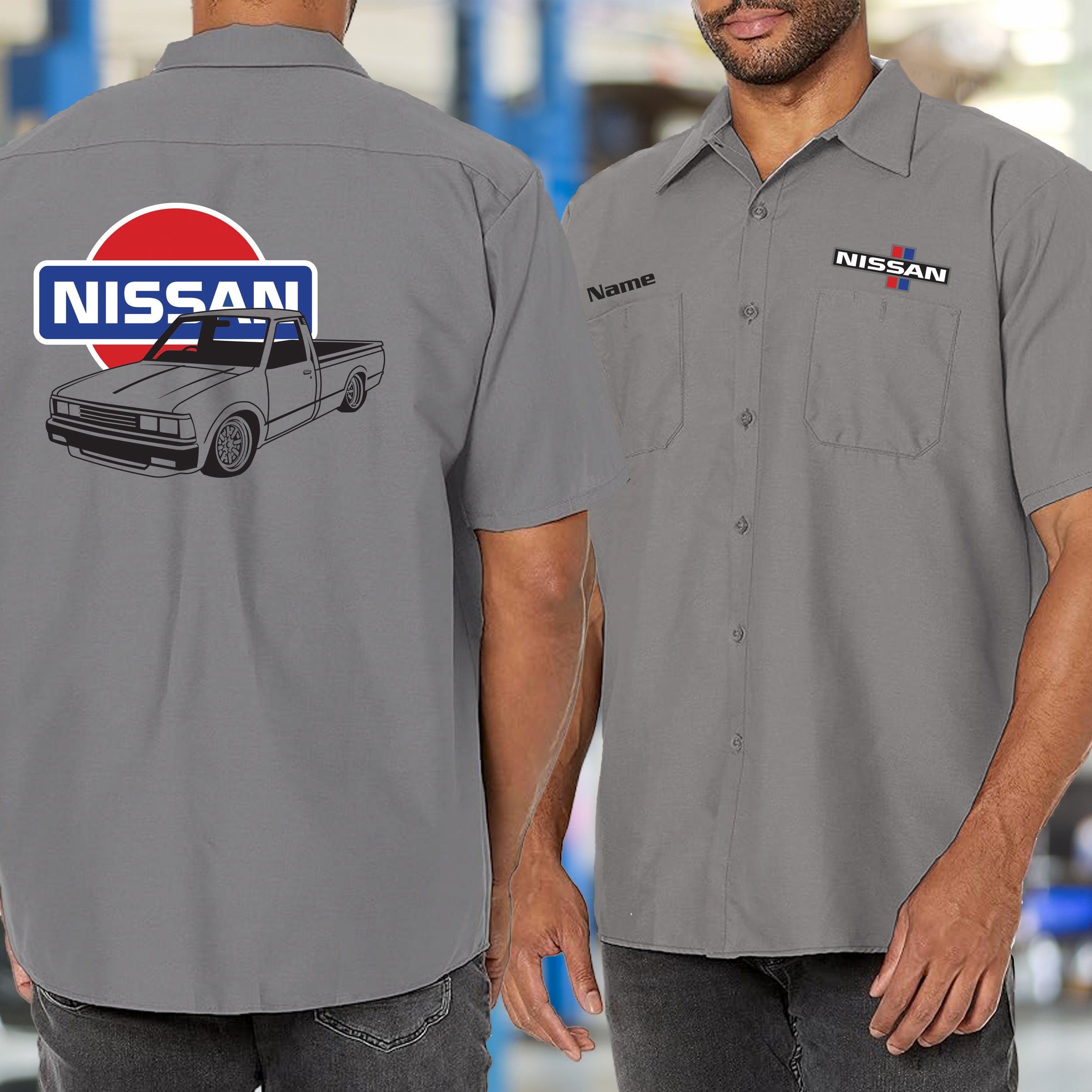 Nissan 720 Mechanic's Shirt with digital heat pressed image.  All shirts are custom printed to order.