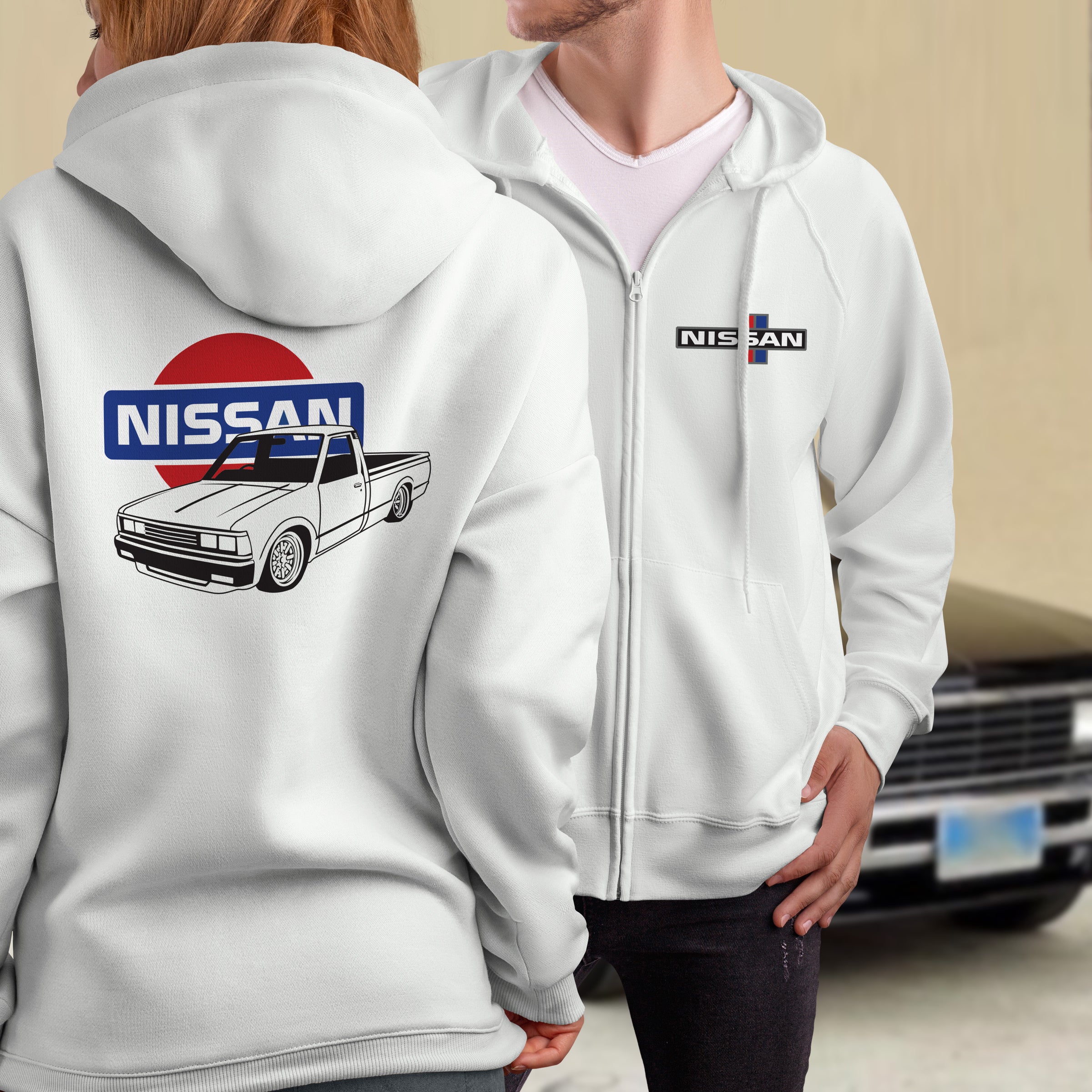 Gear up with this full-zip hoodie that celebrates the iconic Nissan 720—the mini truck that started it all. Whether you're deep in the lowrider scene or just appreciate classic Japanese trucks, this piece lets your passion show. Throw it on for instant credibility at the car meet, or keep it casual for everyday wear. Comfy, stylish, and made for those who know their automotive legends.