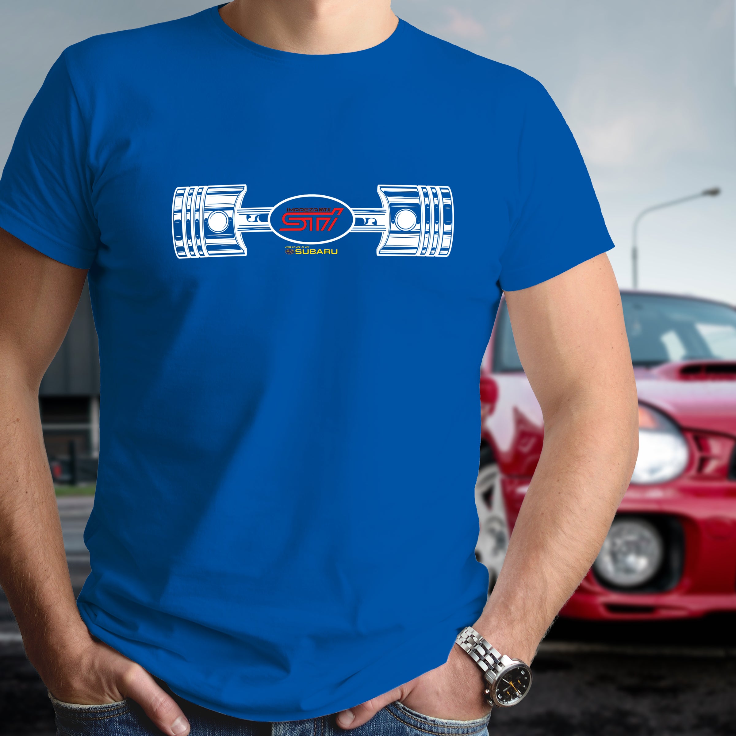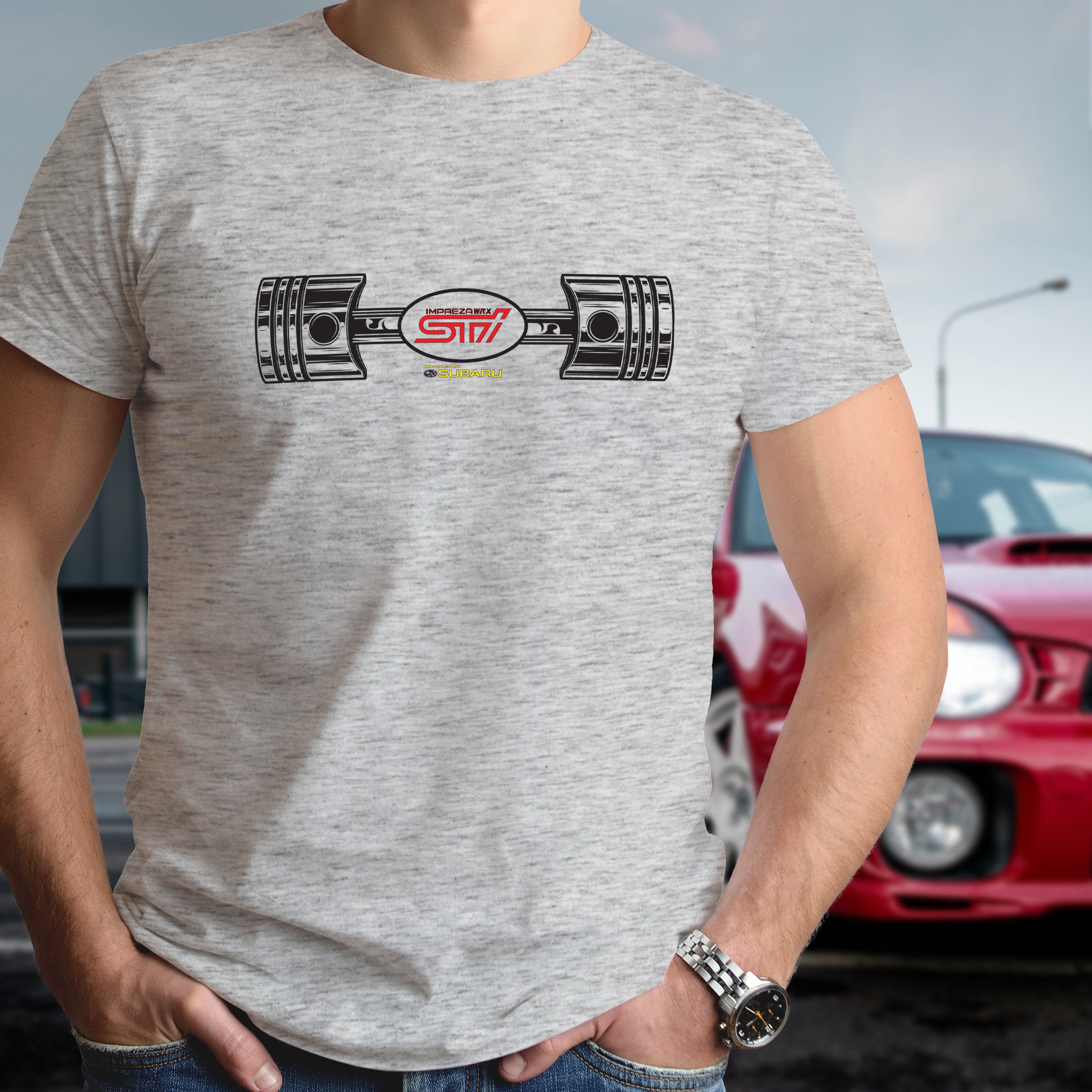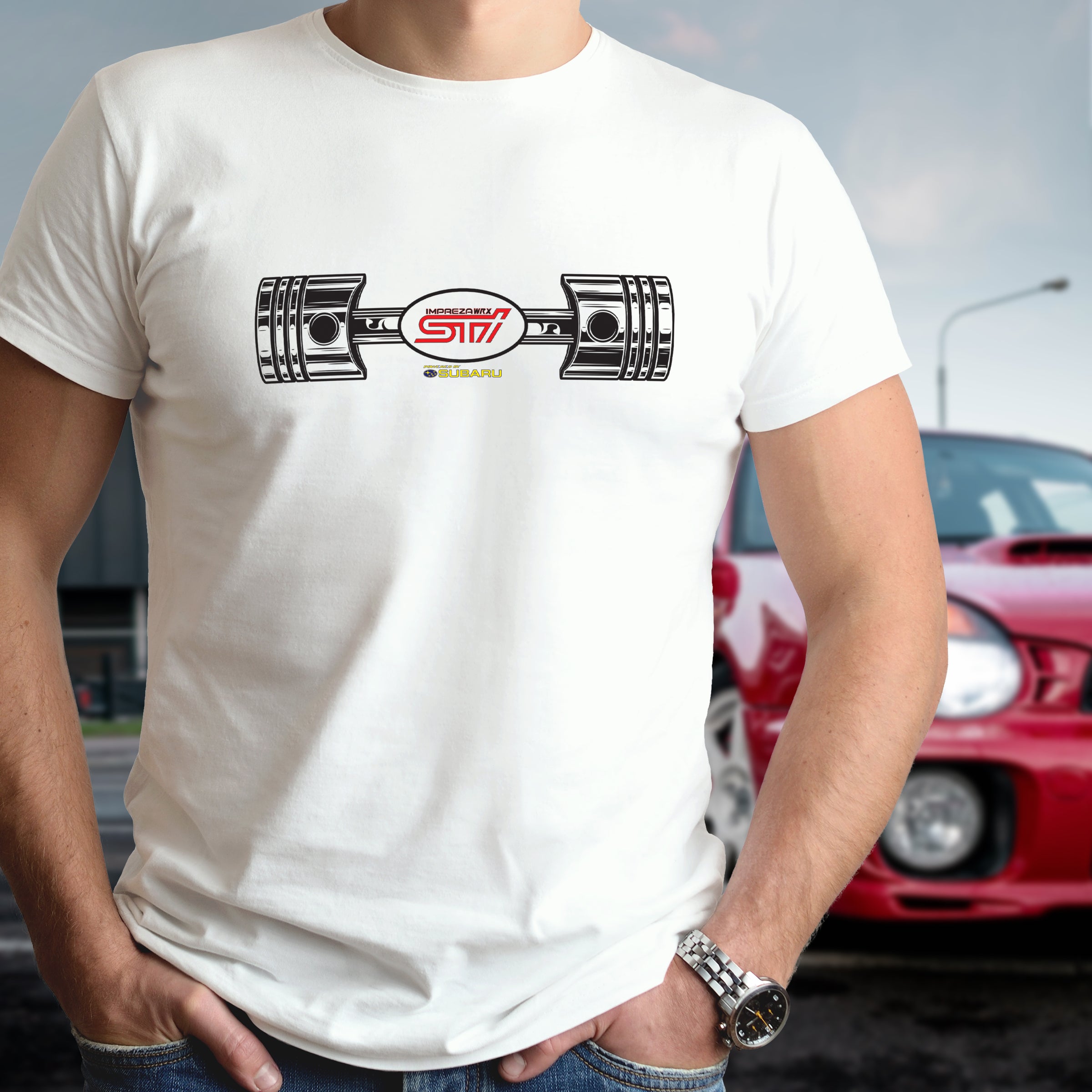 Rock the Subaru Impreza WRX STI with this Piston shirt. The WRX STI is a performance machine powered by the iconic flat-4 engine that delivers genuine thrills and earns respect from enthusiasts worldwide. This shirt features striking Subaru WRX STI piston branding perfect for casual wear. Whether you're enjoying spirited drives, attending car meets, or celebrating this legendary machine, this piece connects you with fellow fans who know the WRX STI represents pure driving passion and Japanese engineering excellence.