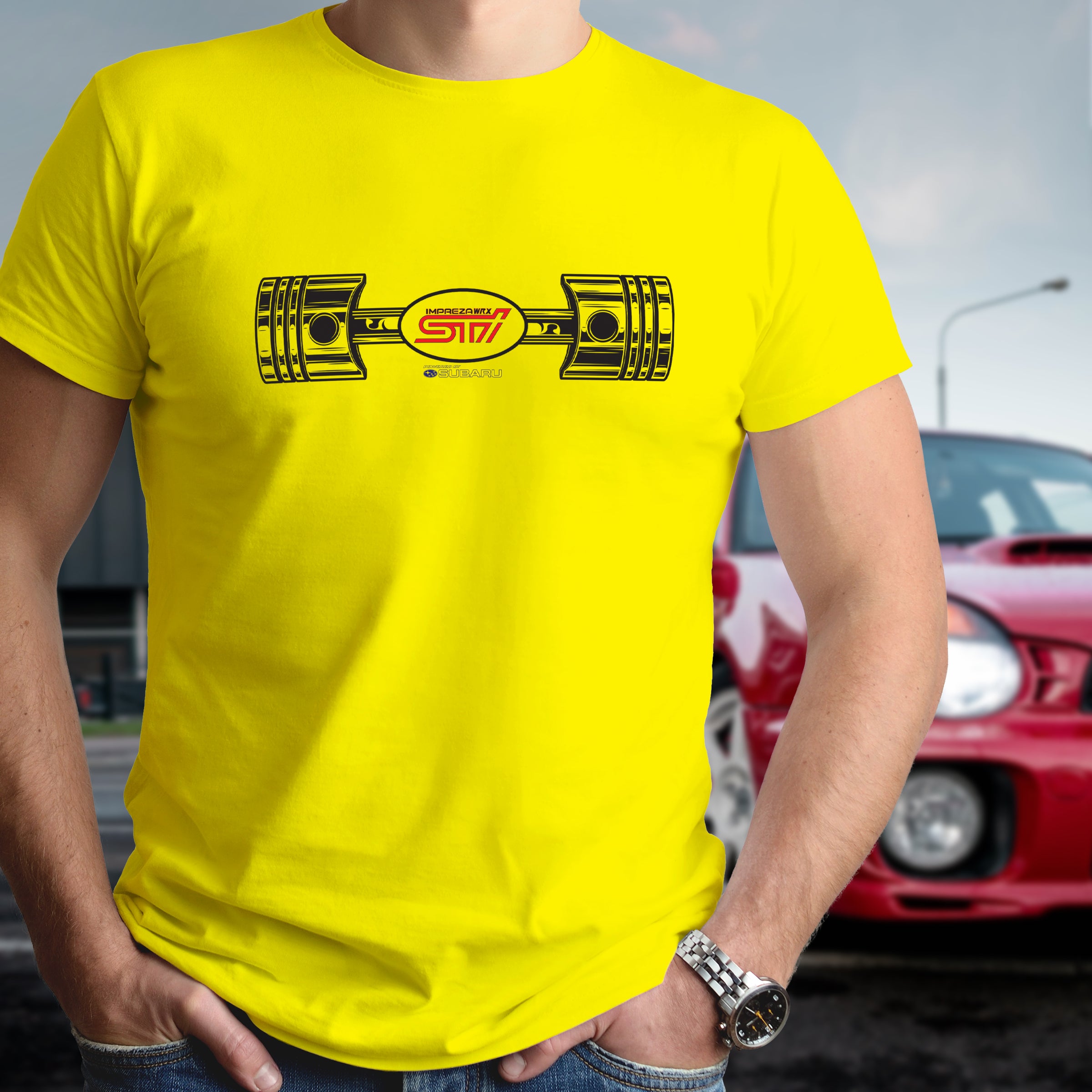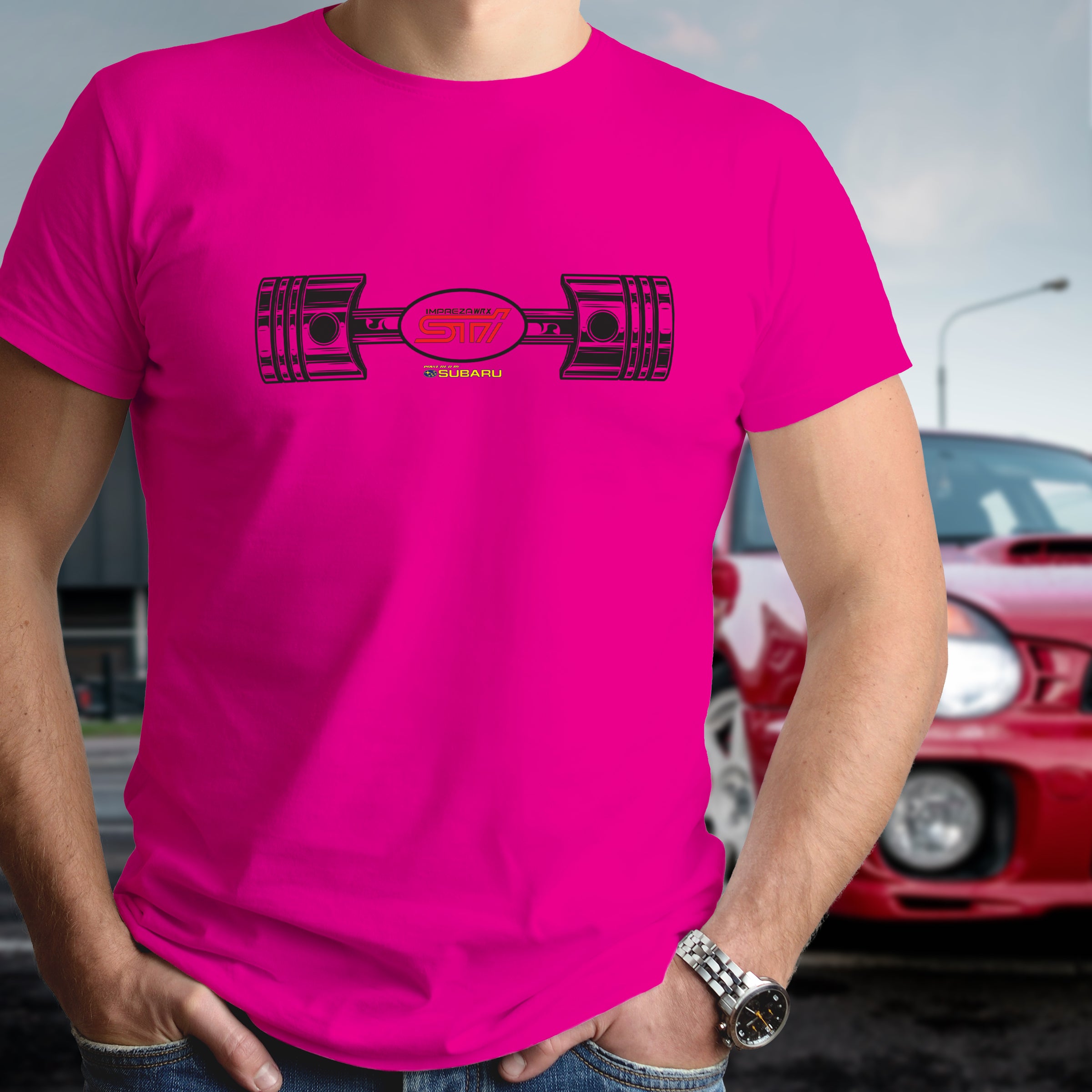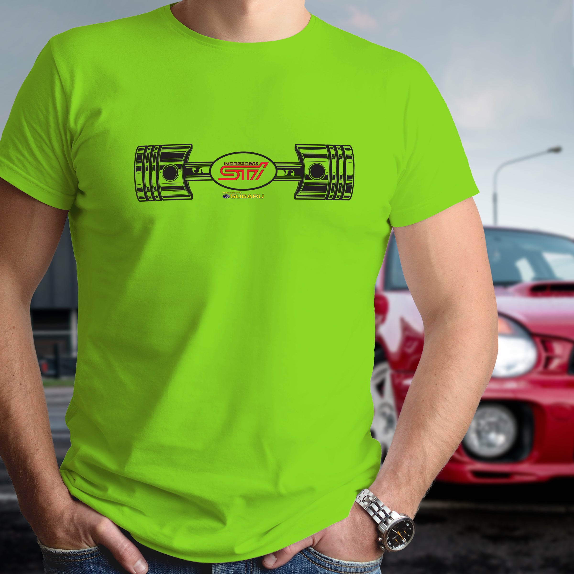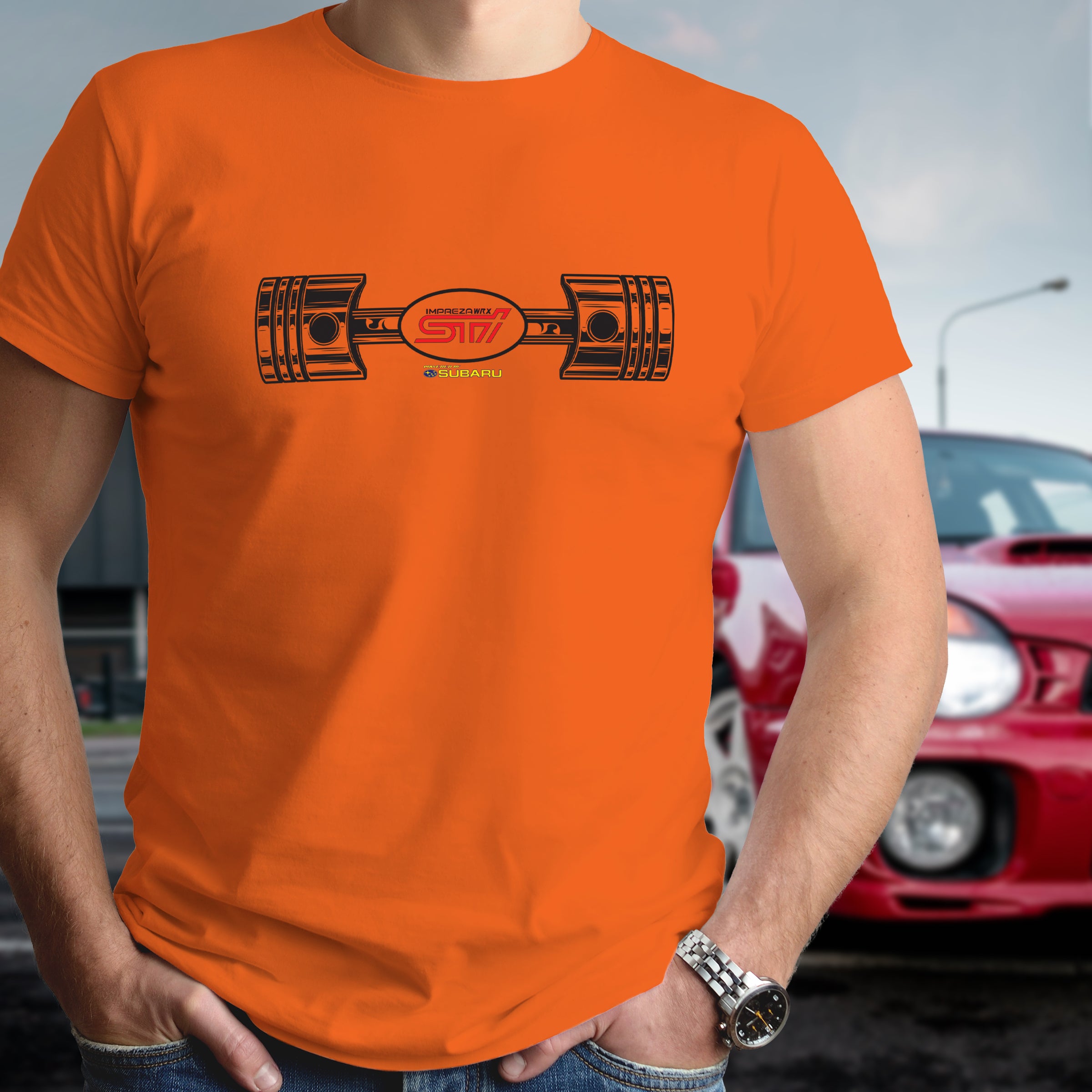 Rock the Subaru Impreza WRX STI with this Piston shirt. The WRX STI is a performance machine powered by the iconic flat-4 engine that delivers genuine thrills and earns respect from enthusiasts worldwide. This shirt features striking Subaru WRX STI piston branding perfect for casual wear. Whether you're enjoying spirited drives, attending car meets, or celebrating this legendary machine, this piece connects you with fellow fans who know the WRX STI represents pure driving passion and Japanese engineering excellence.