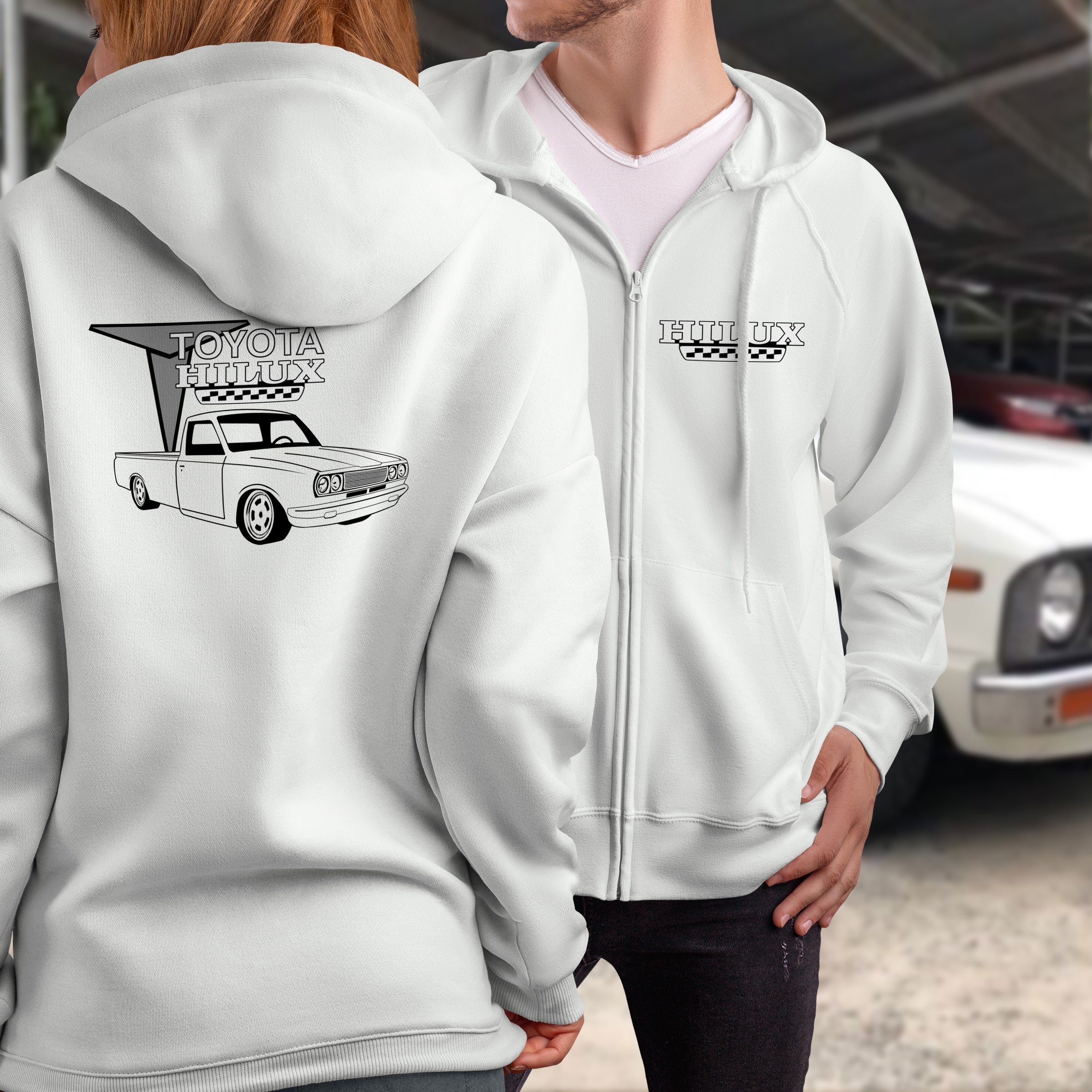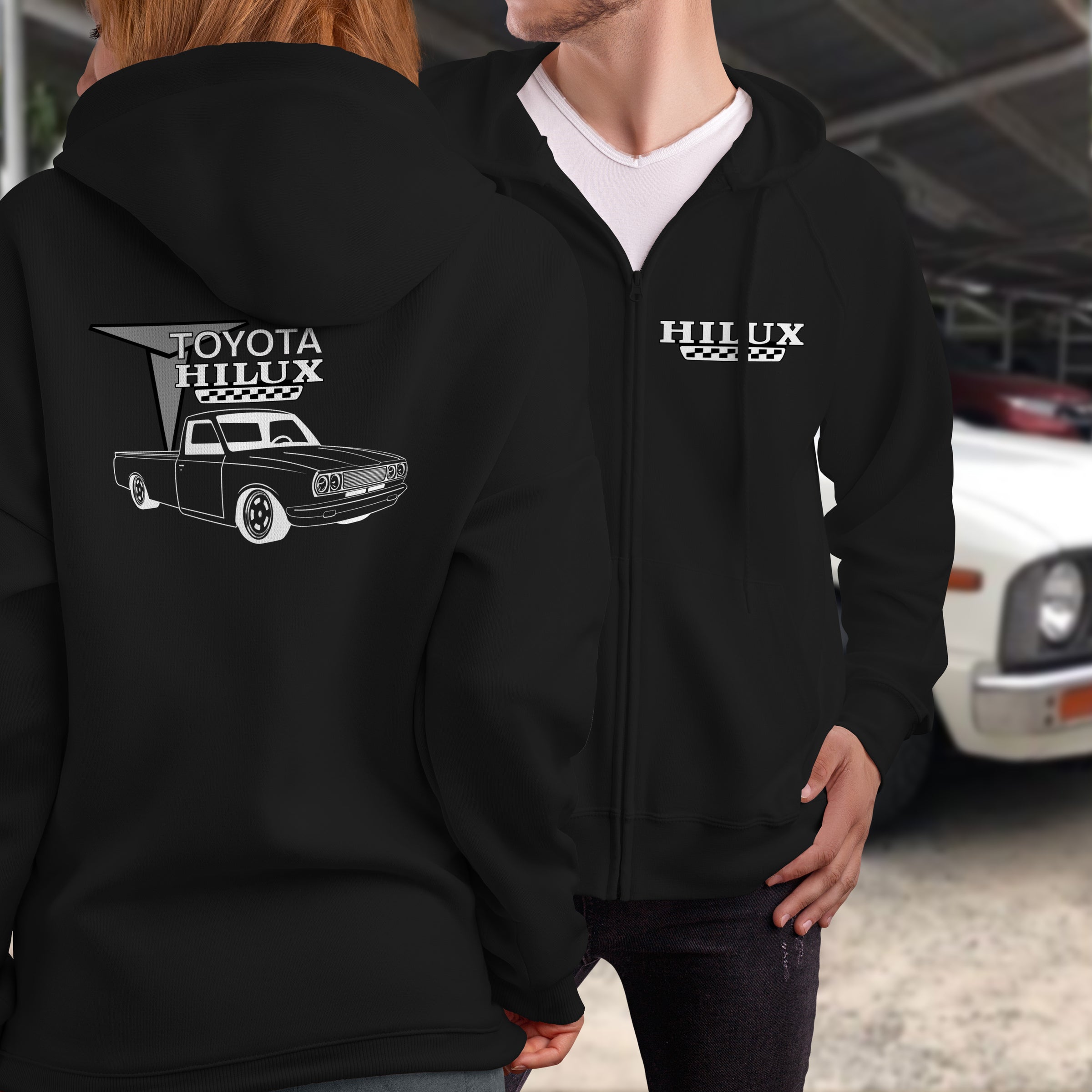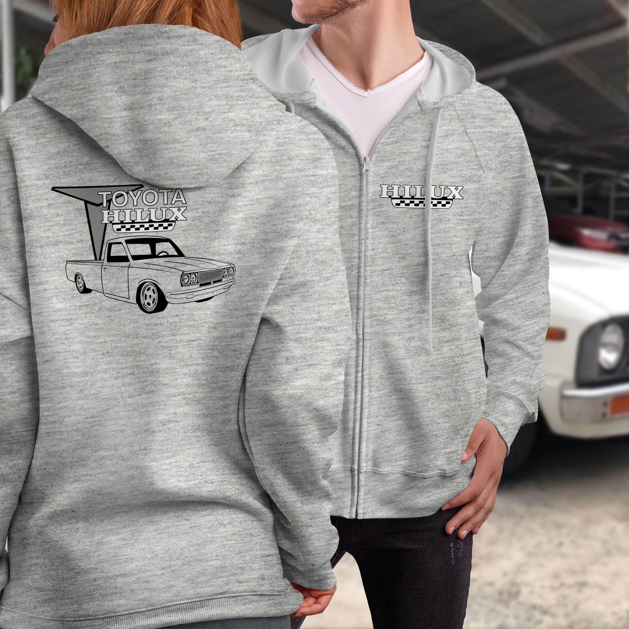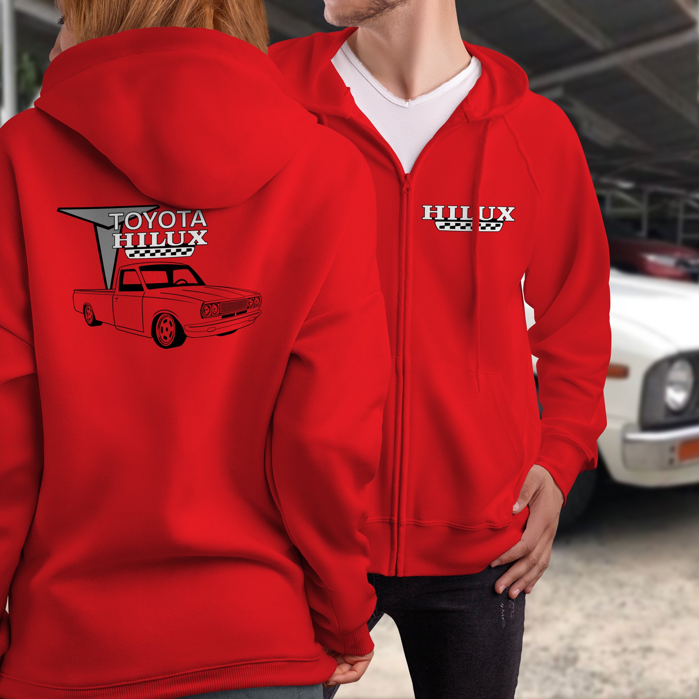 Gear up with our Toyota Hilux Full Zip Hoodie—a tribute to the lowered mini truck that's become a custom culture staple. This layer celebrates the legendary Hilux transformed into a show-stopping machine, earning respect from builders and enthusiasts worldwide. The full zip construction provides easy layering while quality fabric ensures comfort from morning to night. Whether you're at a truck meet, cruising the streets, or just living the lifestyle, this hoodie is your ultimate statement piece. Bold graphic, premium construction, and pure automotive passion.
