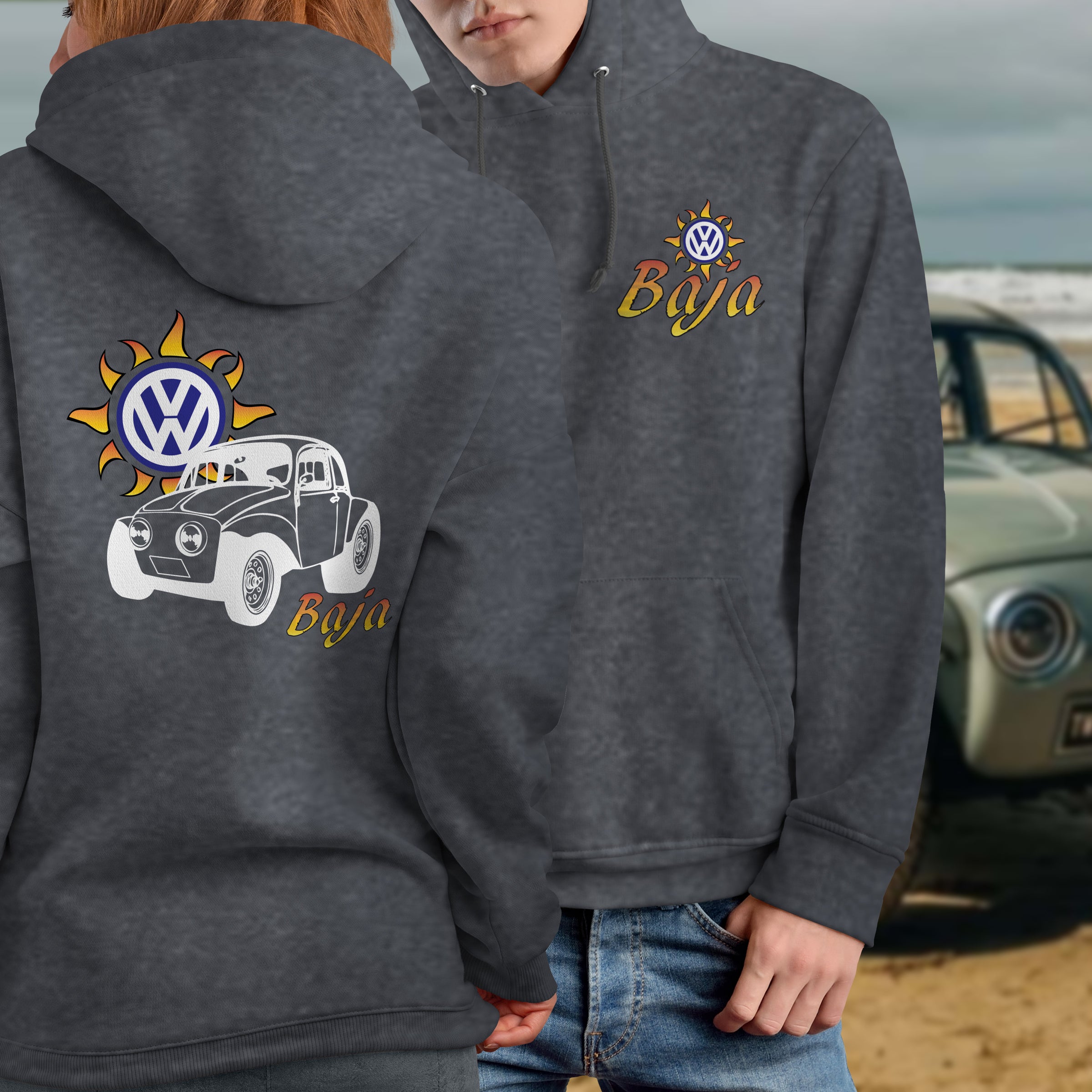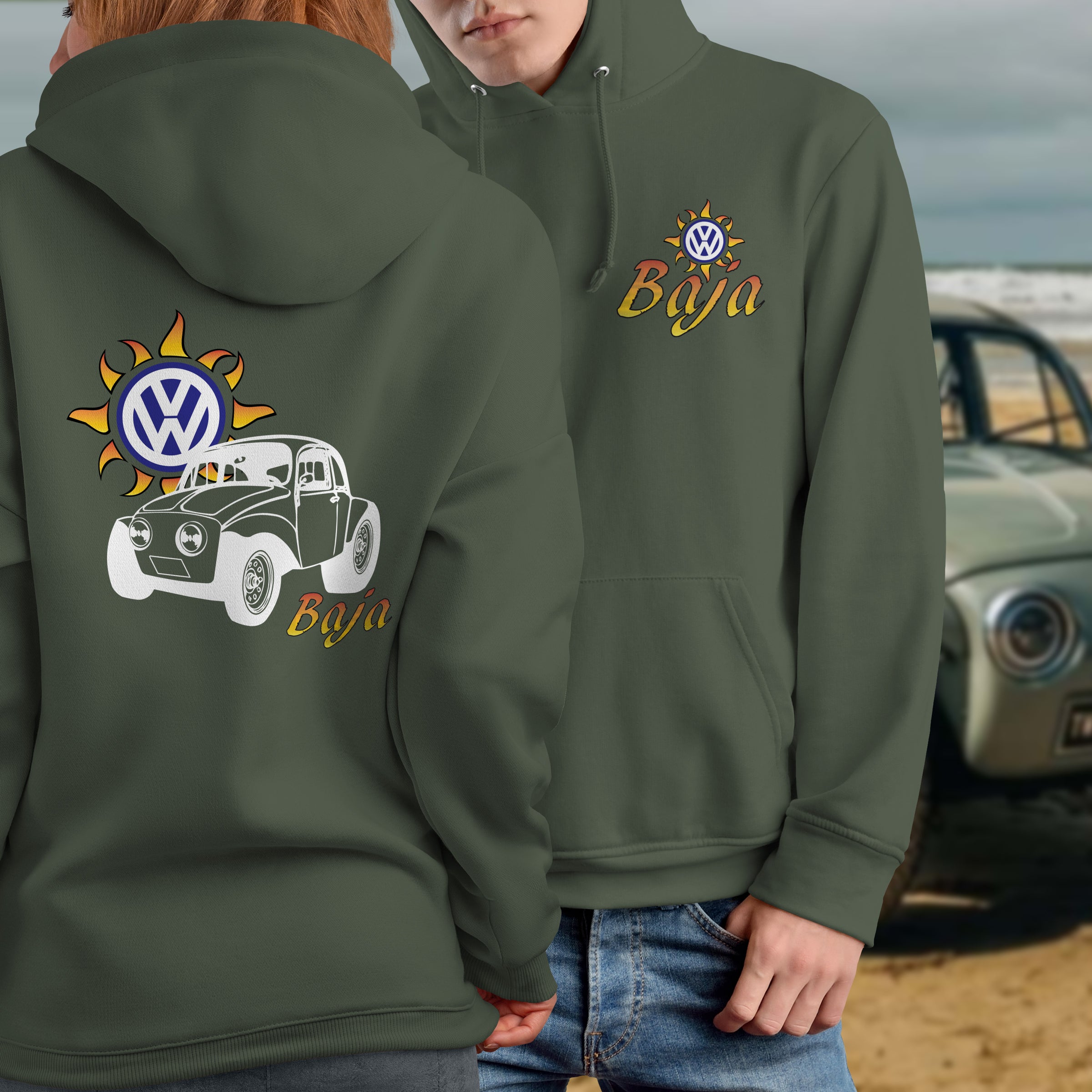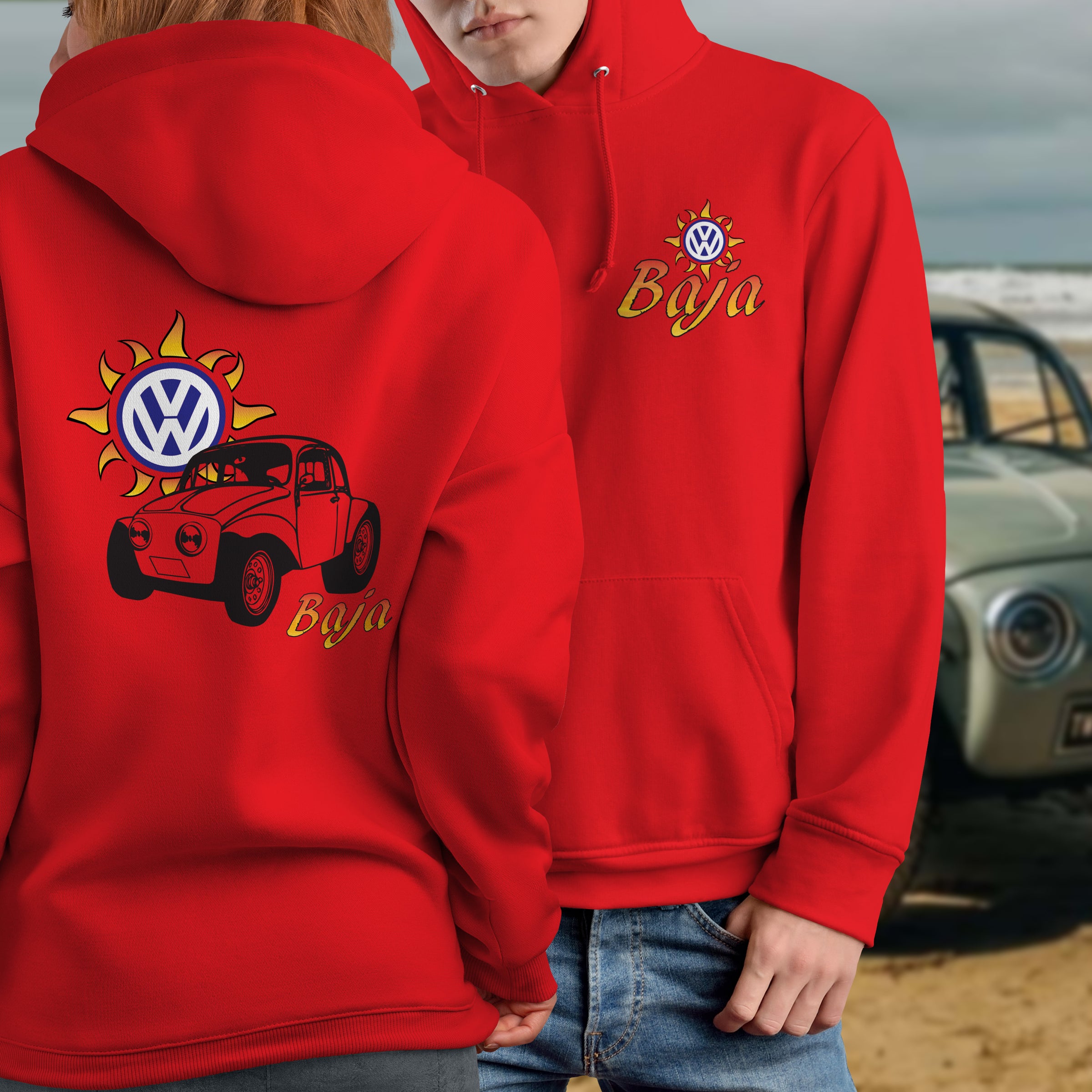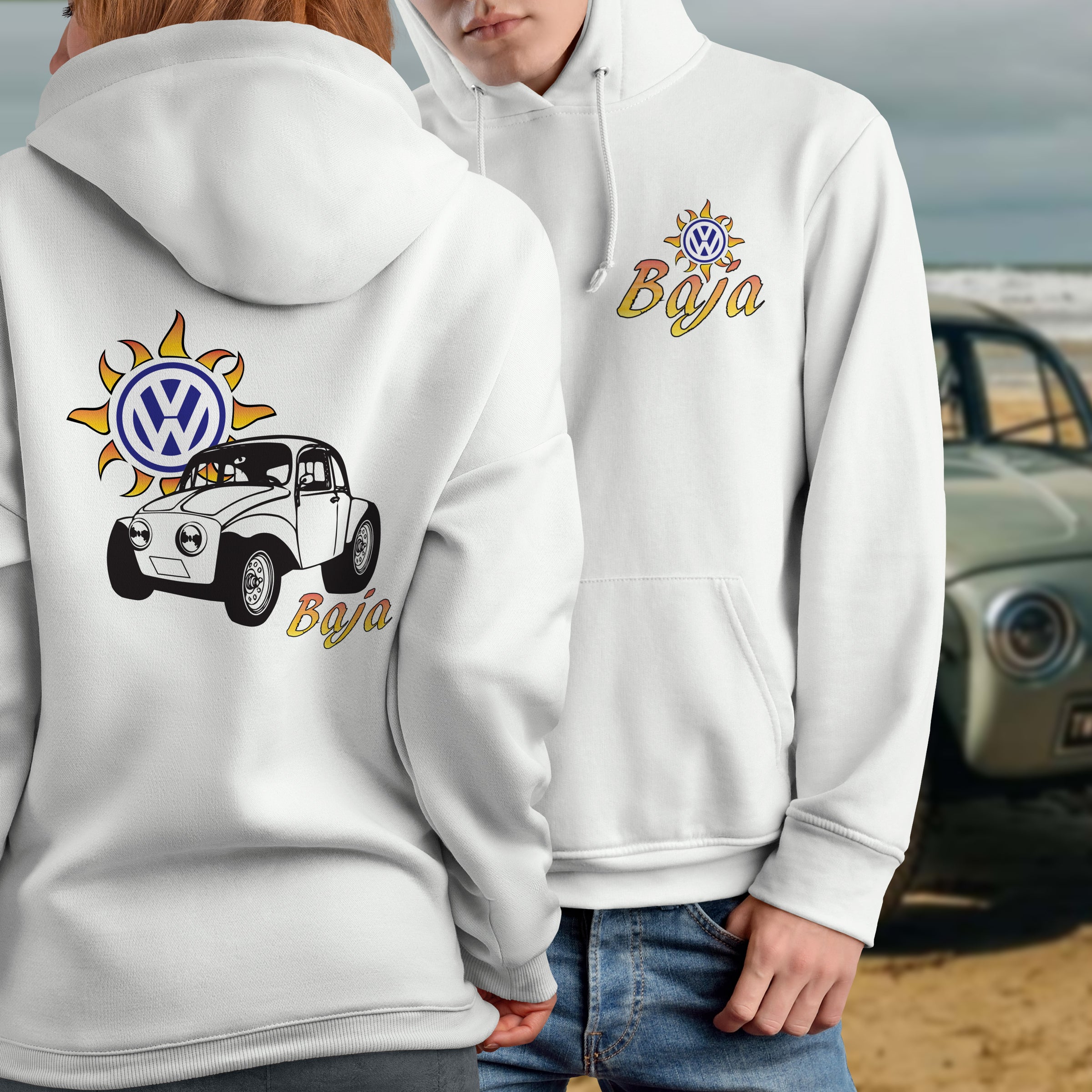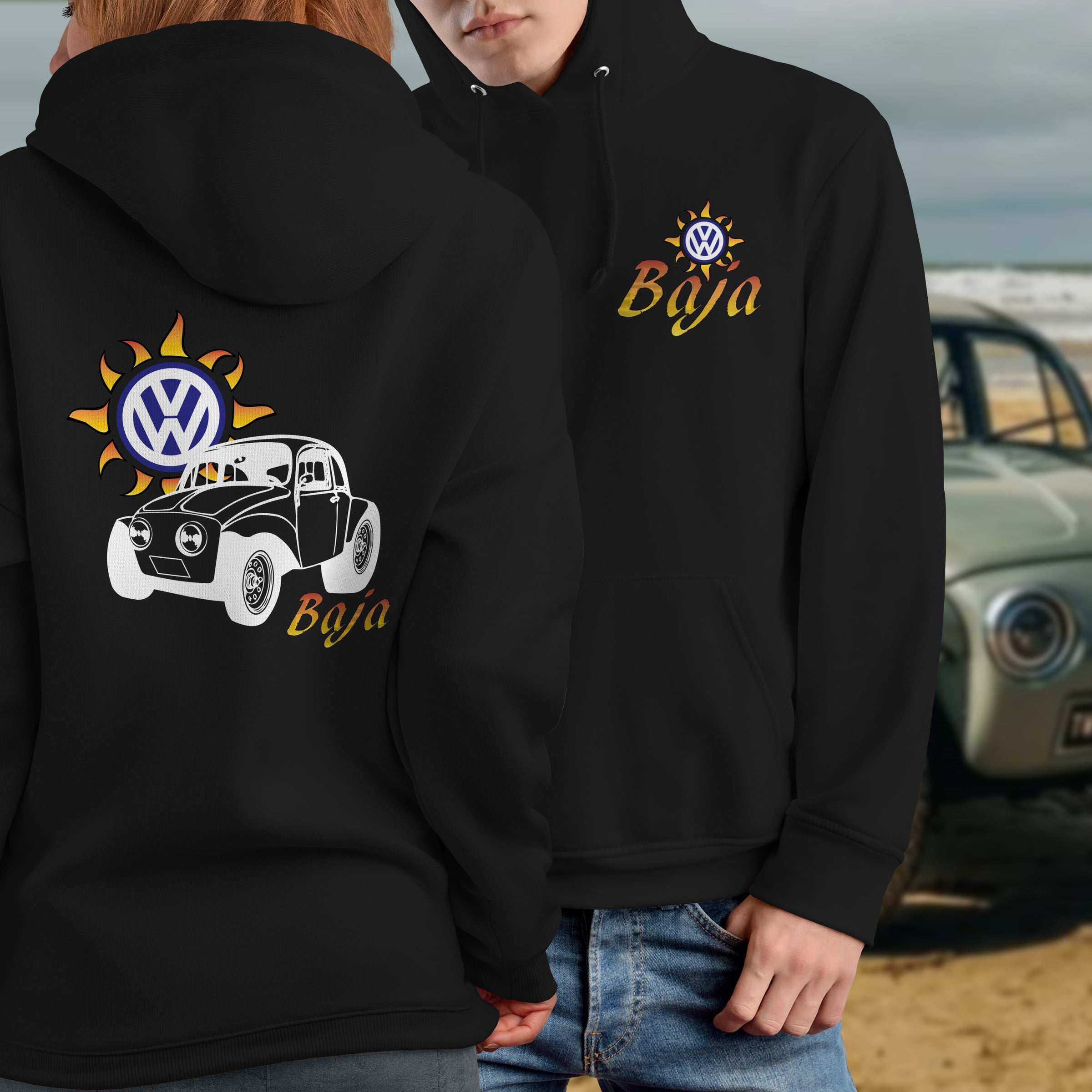 Embrace your inner dune basher with this VW Baja Bug Logo Hoodie. Featuring the iconic Baja Bug graphic that celebrates off-road legend status, this cozy layer keeps you warm whether you're wrenching in the garage or cruising town. Perfect for enthusiasts who live and breathe desert racing culture. Soft, comfortable, and ready to show your passion for VW's most legendary adventure machine.