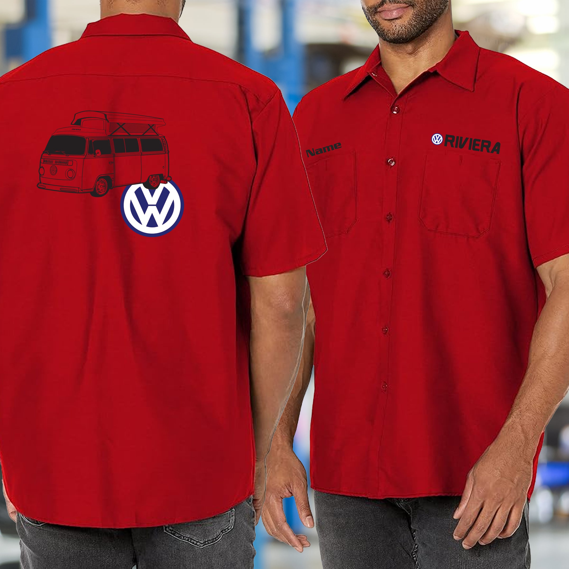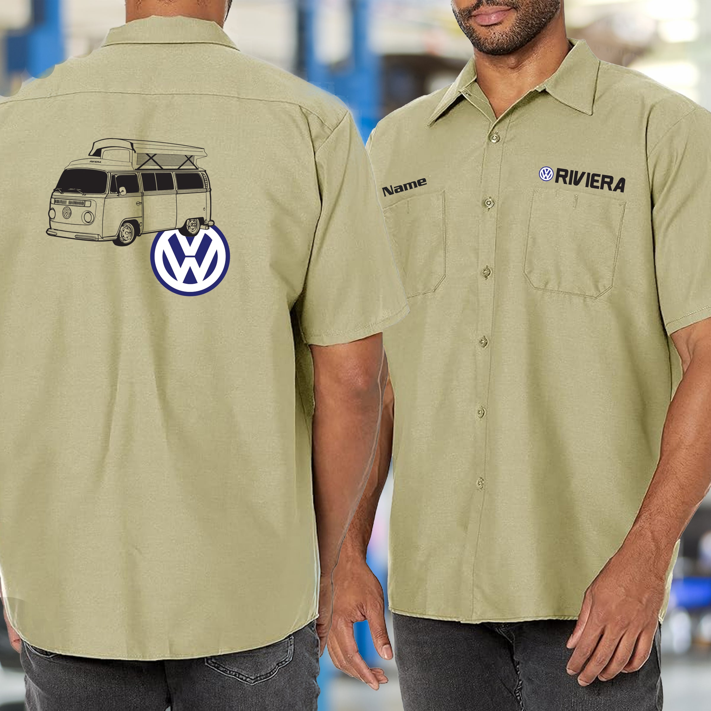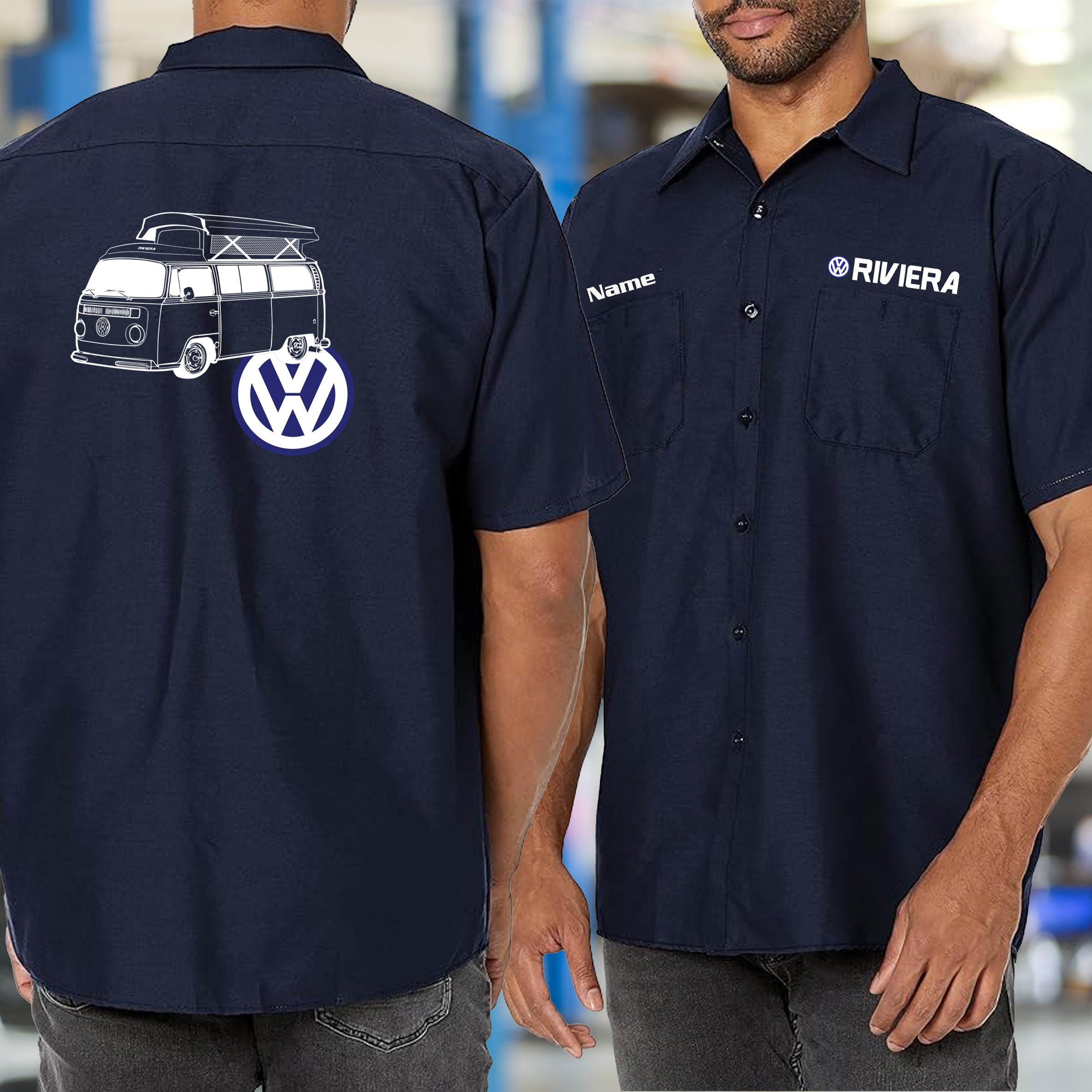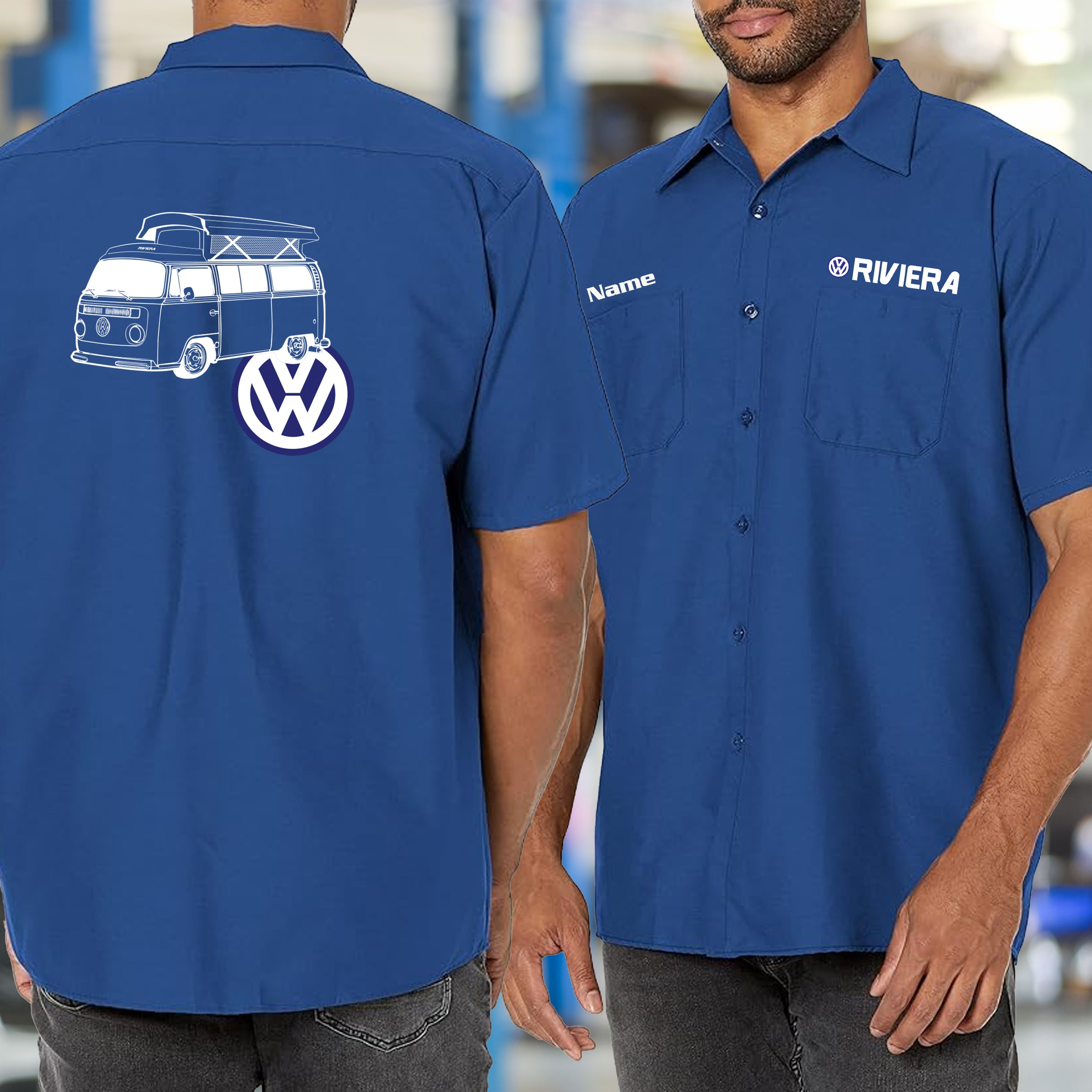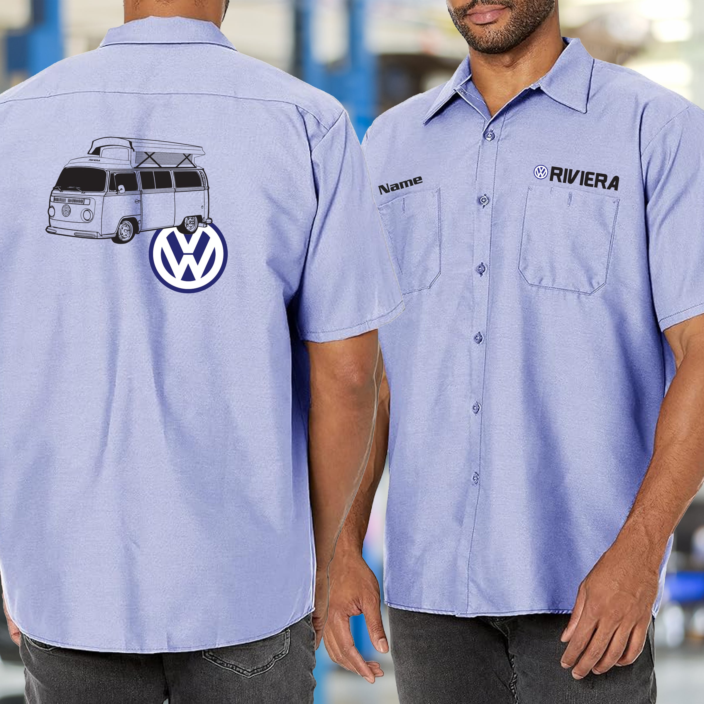 Rep the VW Bay Riviera with this Mechanic's Shirt. Made for the adventurer who understands that generation redefined what a camper could be. Wear it while you're maintaining your van in the shop, chasing horizons on the open road, or turning heads at the show. Durable construction meets wanderlust attitude. The VW Bay Riviera didn't just transport—it inspired a movement of freedom seekers. This shirt proves you're part of it. VW Bay Riviera: wear the adventure.