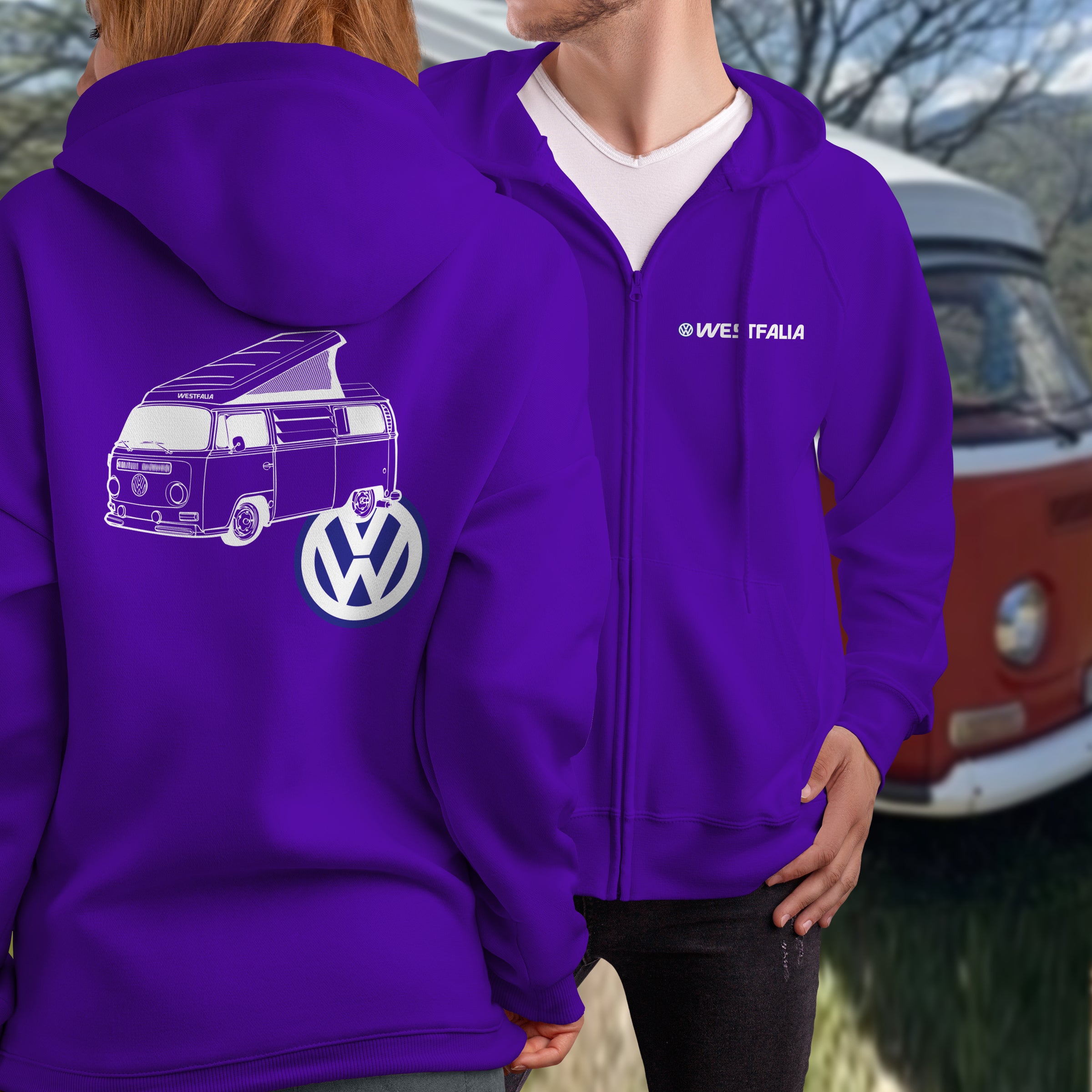 Layer up in style with this Early Bay Window Westy full zip hoodie, the ultimate gear for air-cooled camper fans. Perfect for van lifers and vintage VW enthusiasts, this versatile piece combines comfort with timeless retro appeal. The full zip design makes it easy to throw on for chilly campsite mornings or peel off when the sun comes out. Soft, durable, and bursting with classic Westy character, it's your go-to for celebrating the iconic camper van that defined a generation of road warriors and adventure seekers.