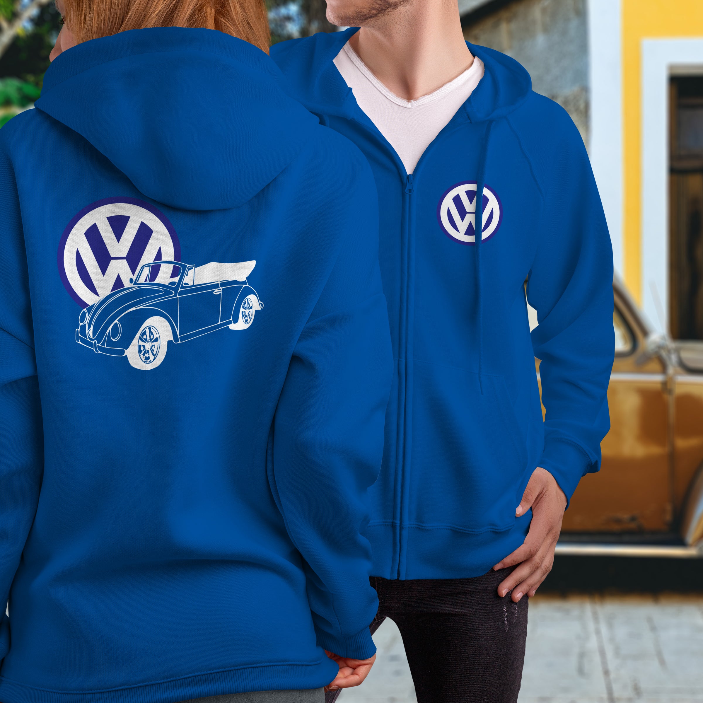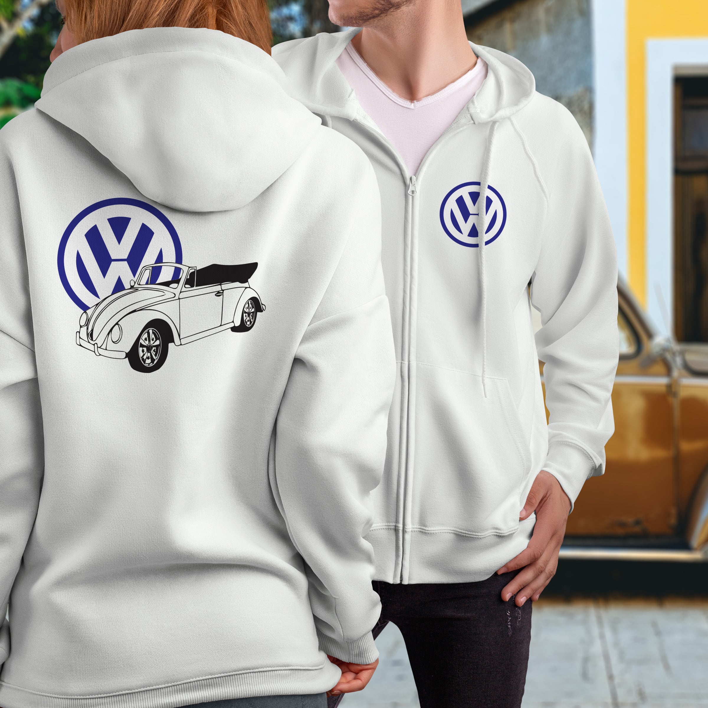 Feel the freedom with this VW Bug Vert Logo Full Zip Hoodie. The convertible Bug represents pure automotive bliss—the ultimate expression of carefree cruising and timeless design. Full zip convenience means you can peel it off when the weather warms up or layer it on for cooler days. For those who live for convertible season and appreciate the iconic silhouette that started it all.