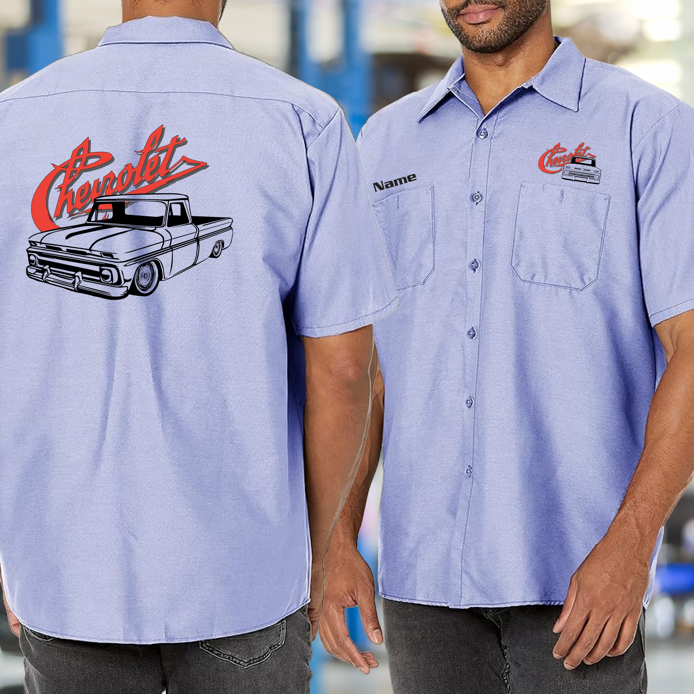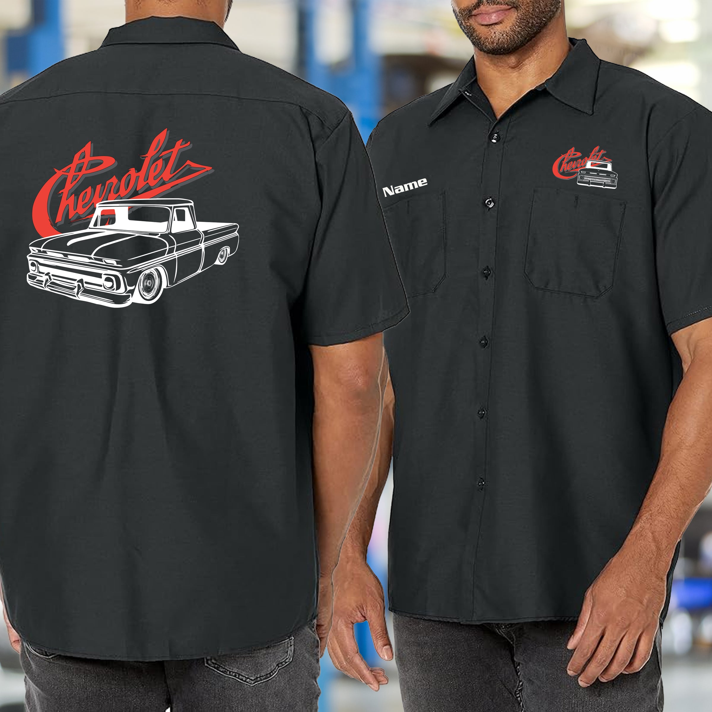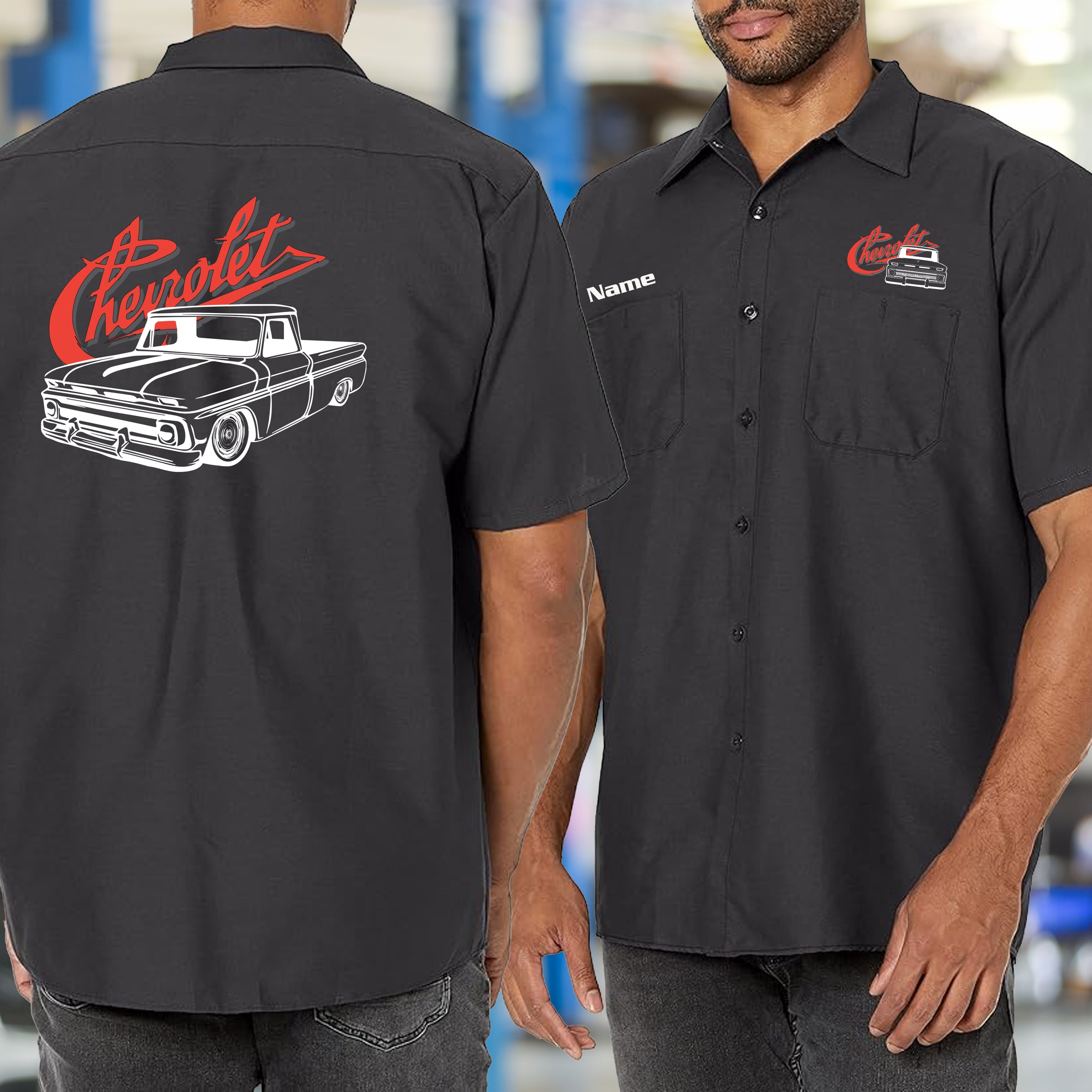 Show your love for the classic 60-66 Chevy truck in this functional mechanic's shirt. Featuring striking truck branding and sturdy construction, it's designed to handle garage work and casual wear alike. Ideal for collectors, restorers, and truck fans who recognize the significance of the American pickup that set the standard for generations.