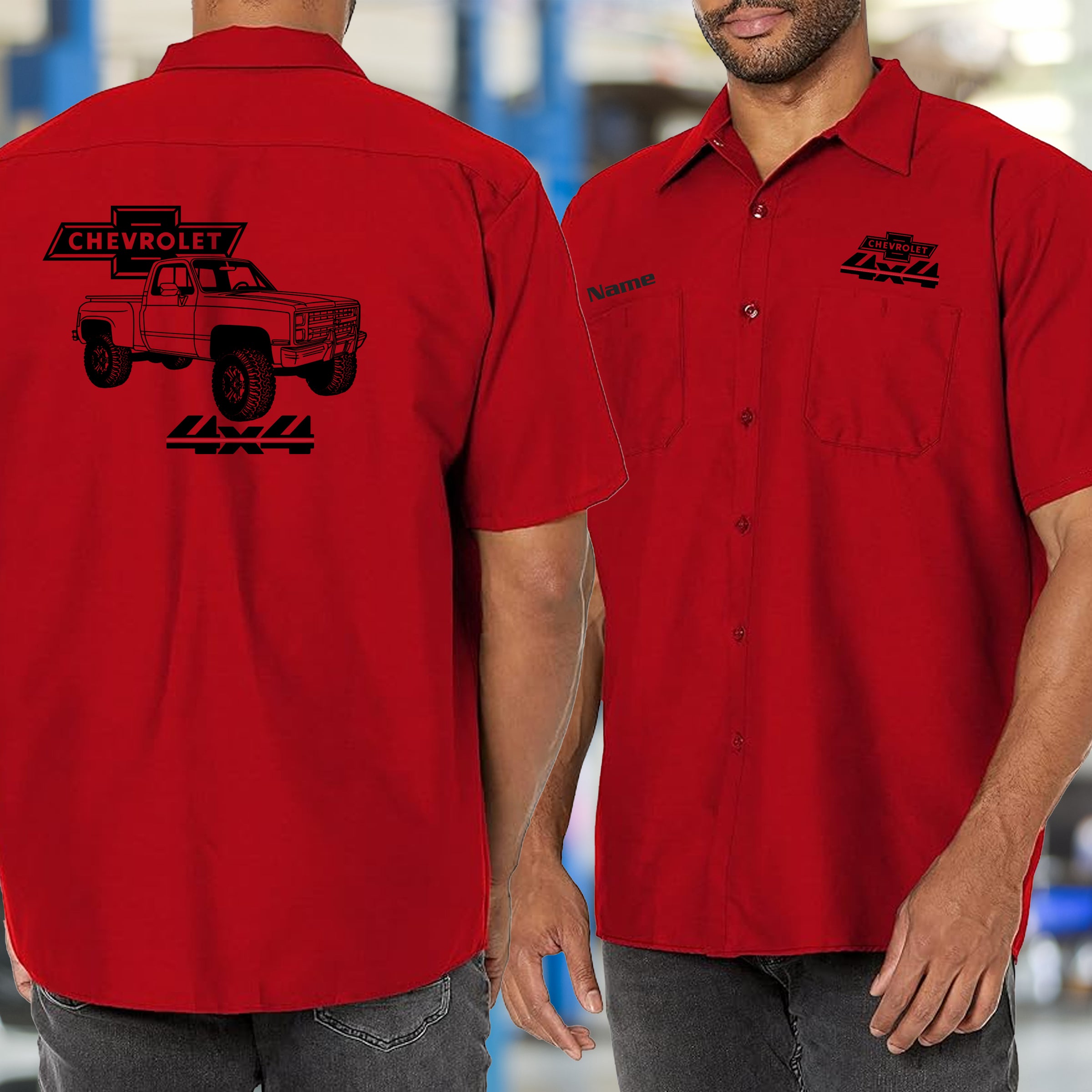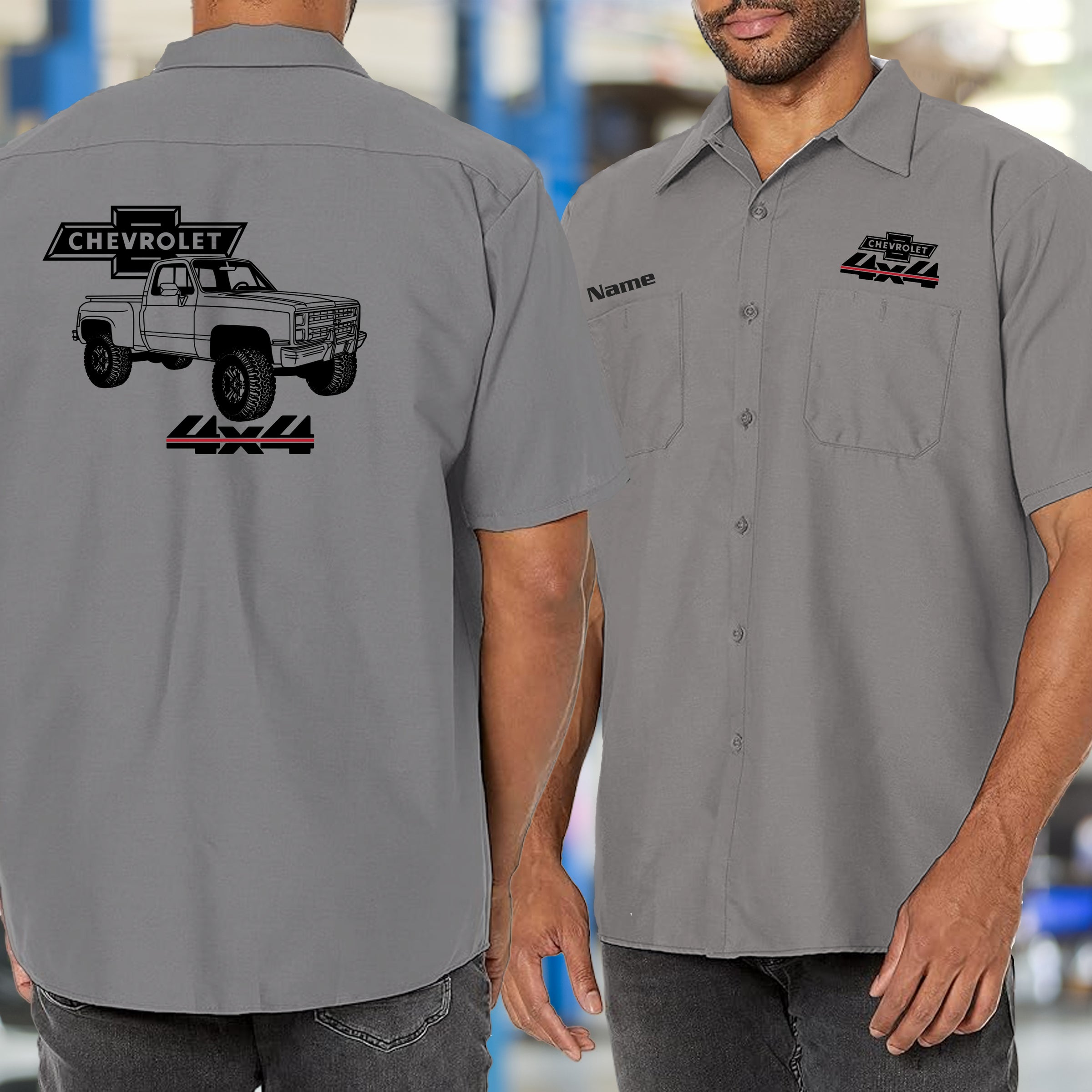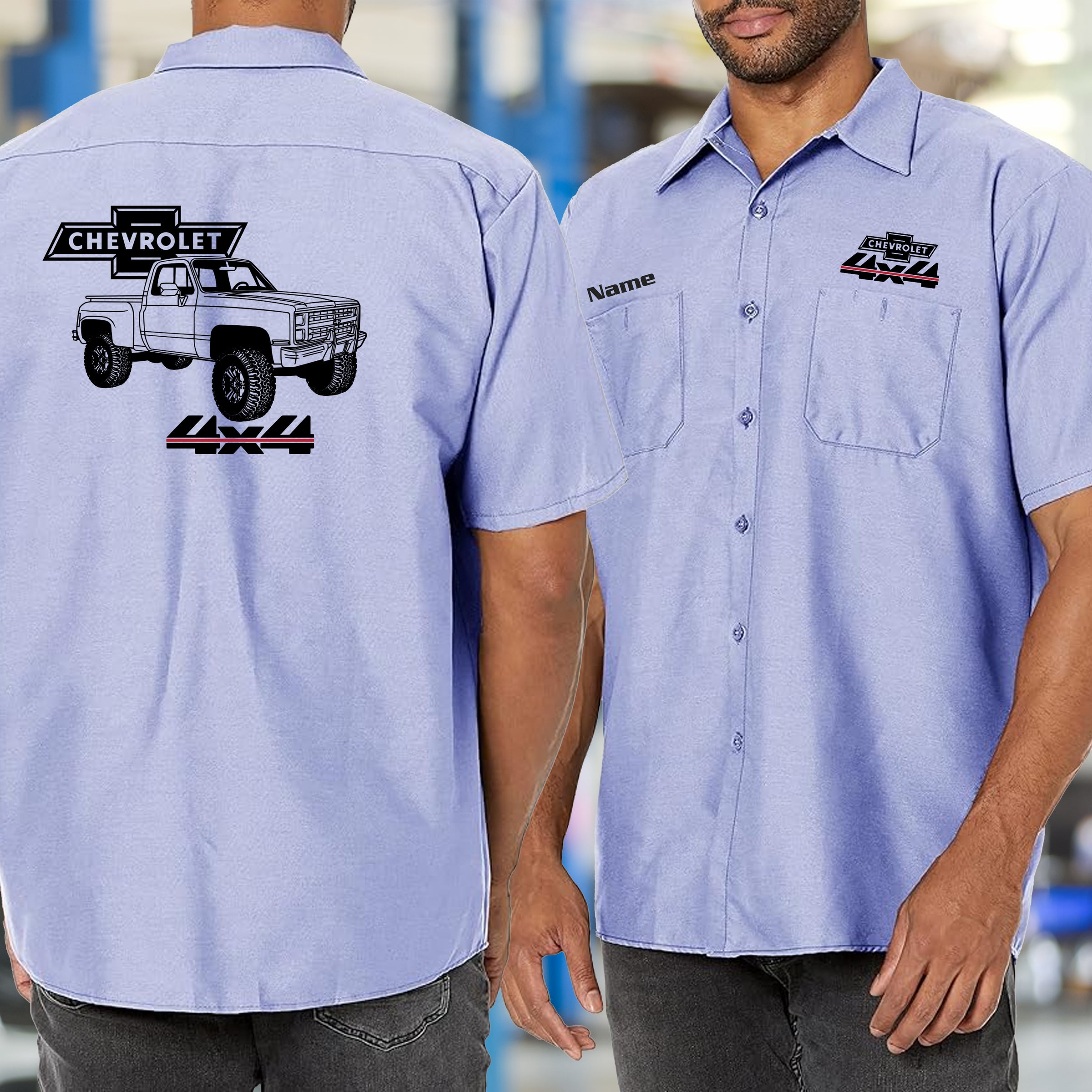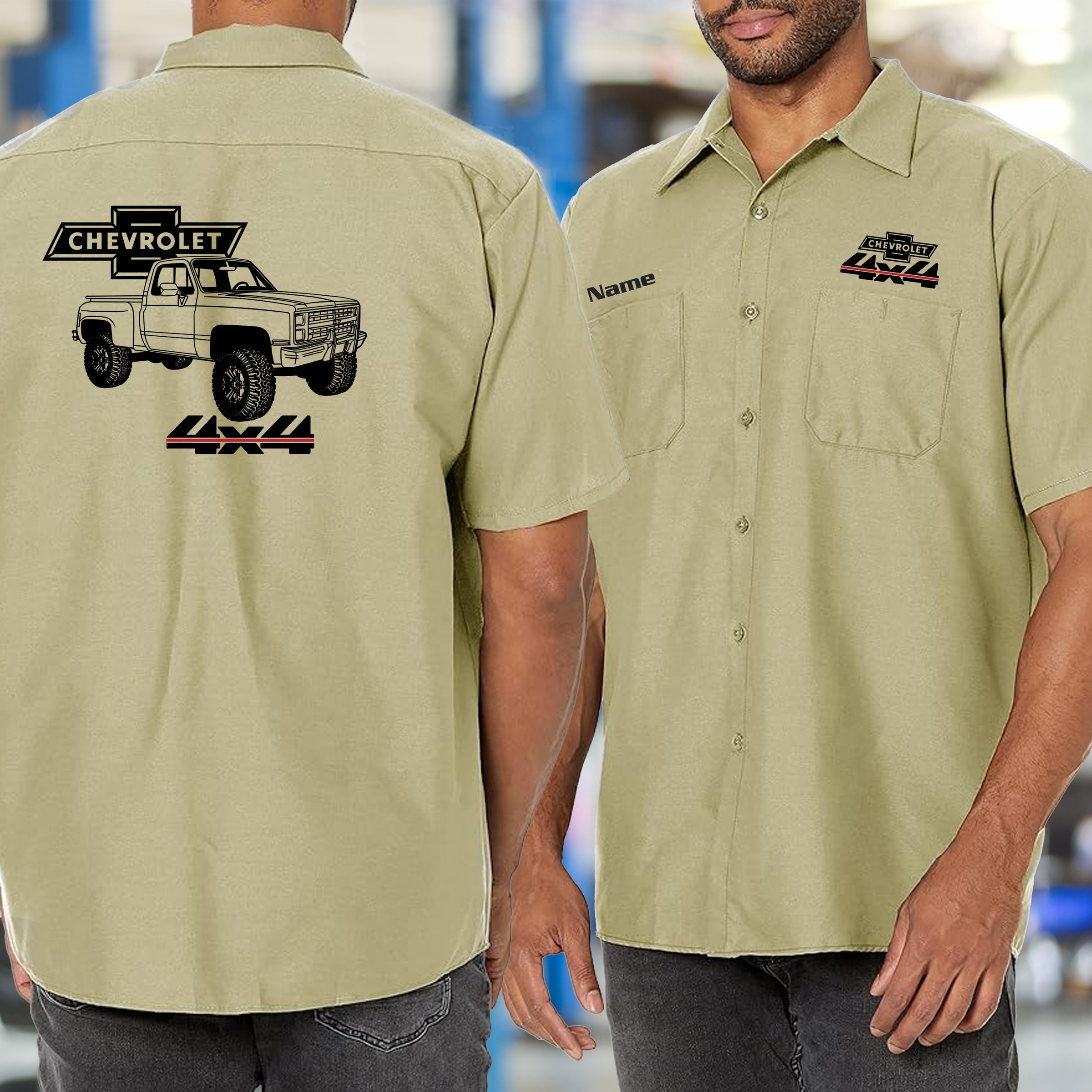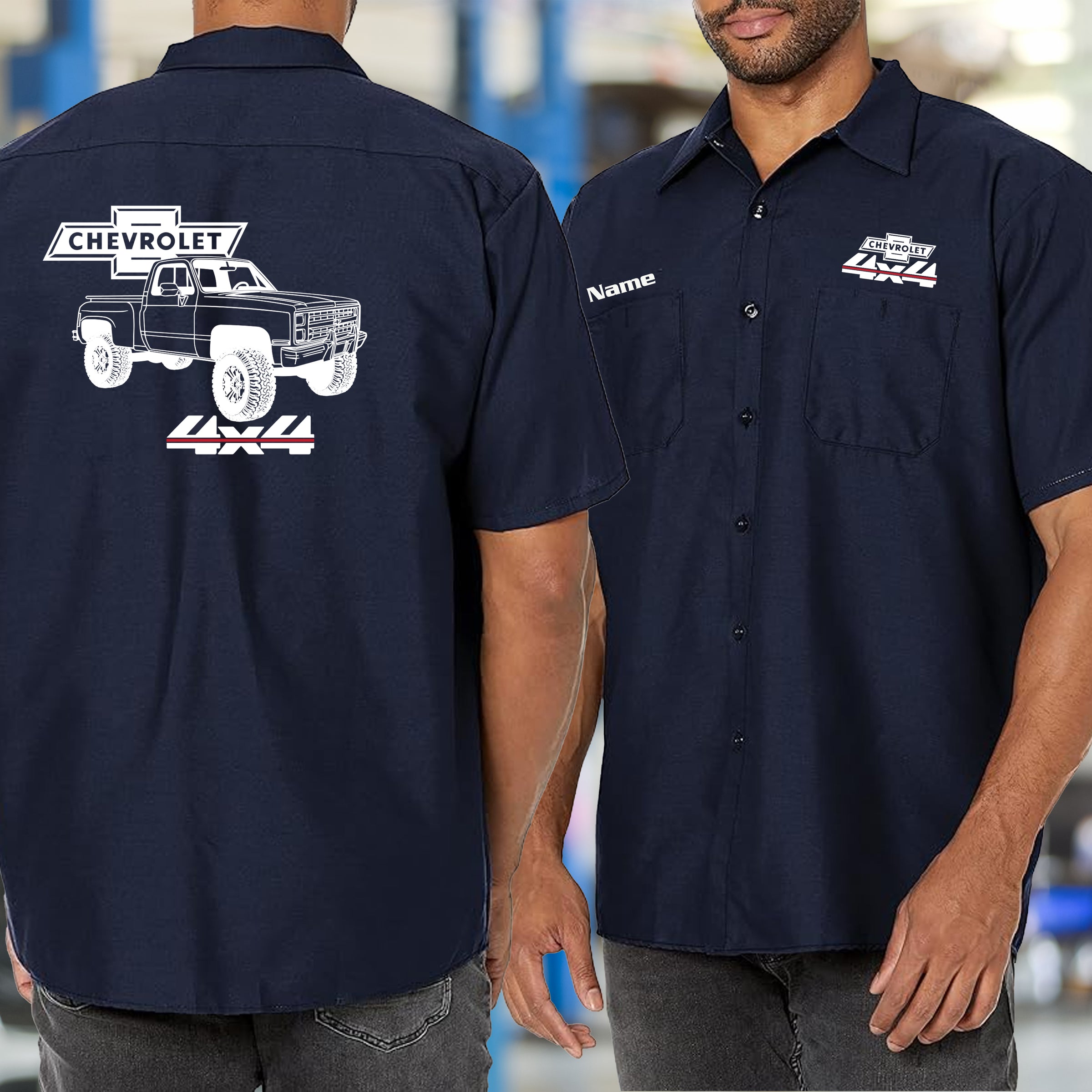 Built for those who live and breathe classic Chevy trucks, this mechanic's shirt celebrates the iconic square body 4x4 stepside that defined a generation. Premium fabric keeps you comfortable whether you're wrenching in the garage or showing off your passion at the car show. The bold, detailed design captures the unmistakable silhouette that truck enthusiasts instantly recognize and respect. Perfect for collectors, mechanics, and anyone who appreciates authentic American automotive heritage. Wear it with pride and let your love for these legendary trucks speak volumes.