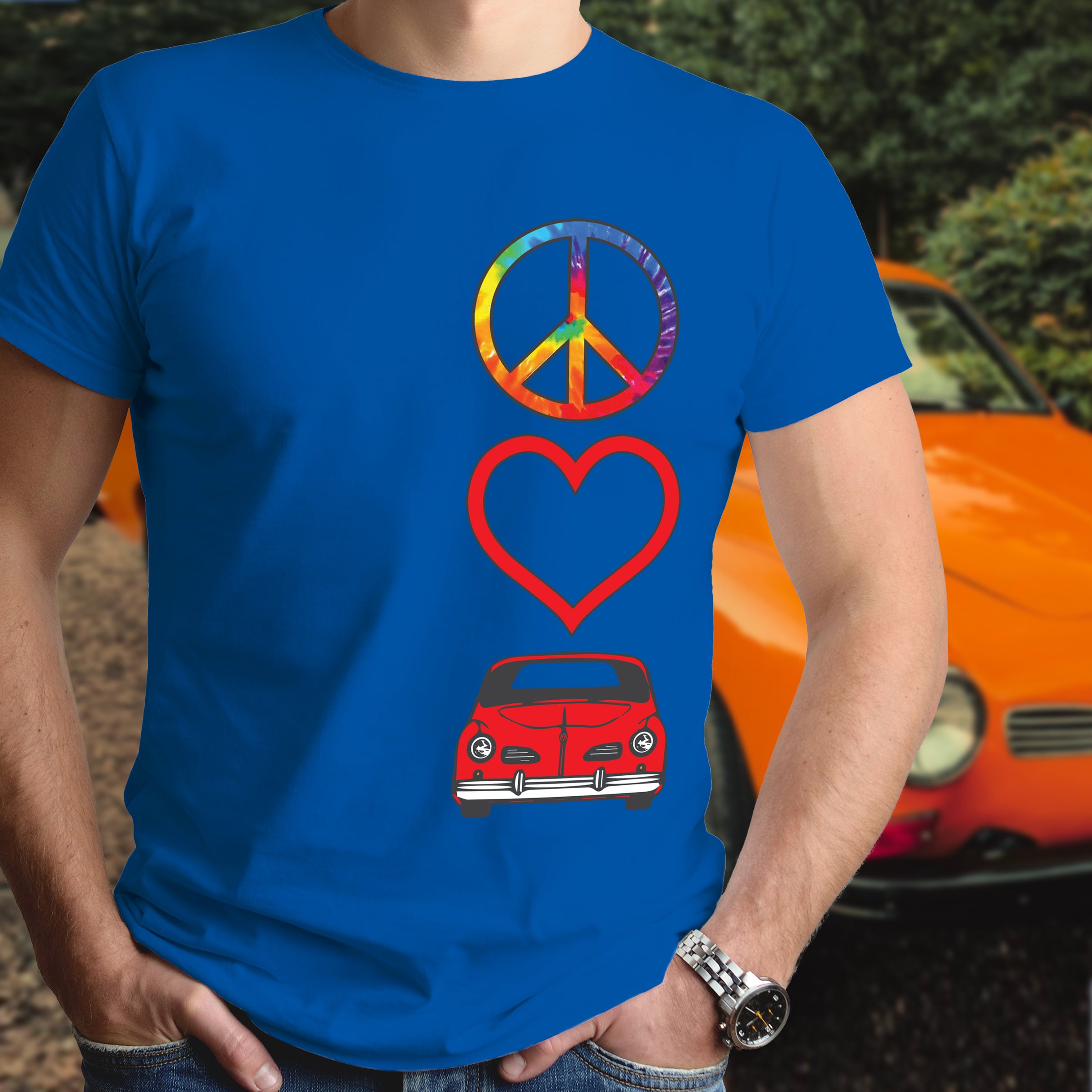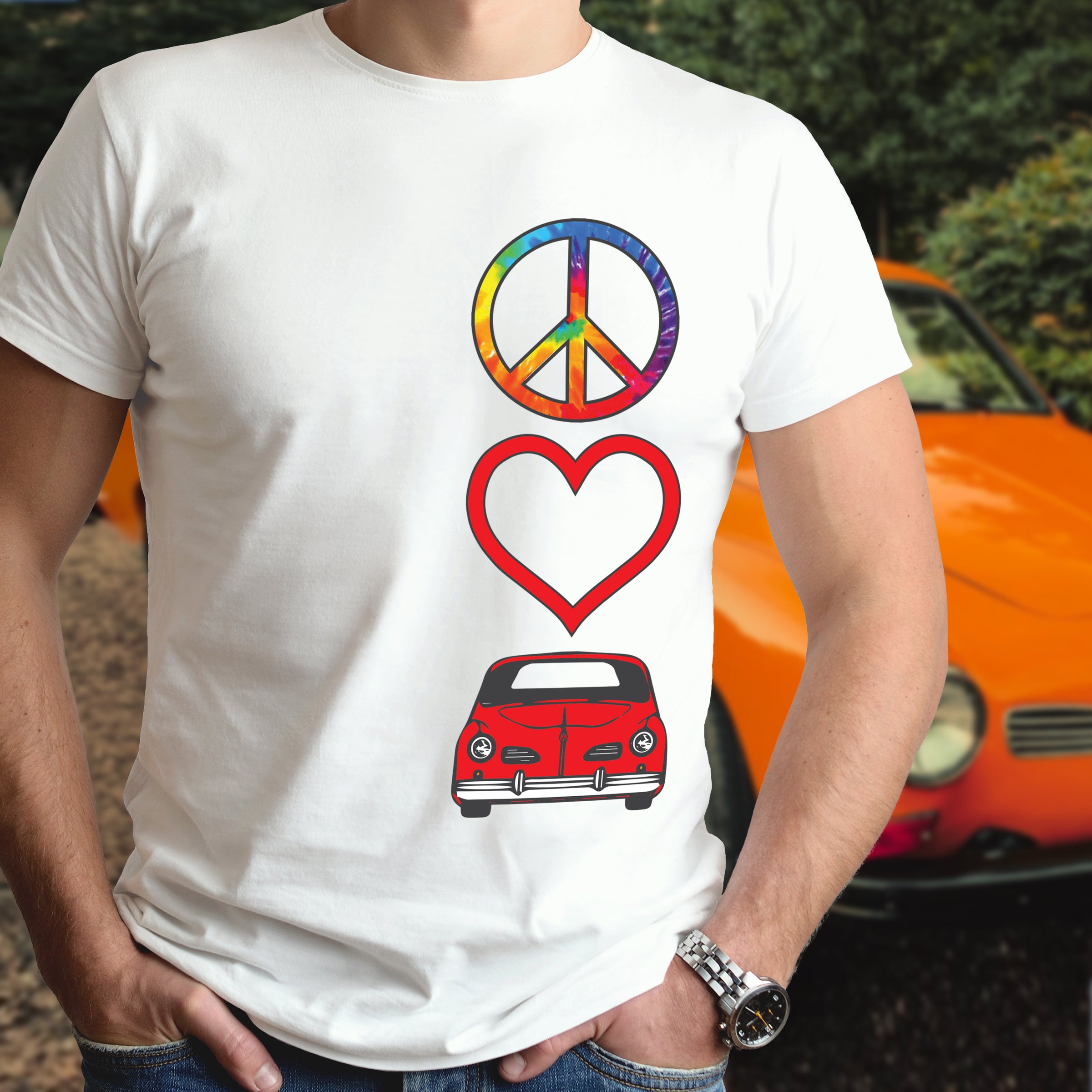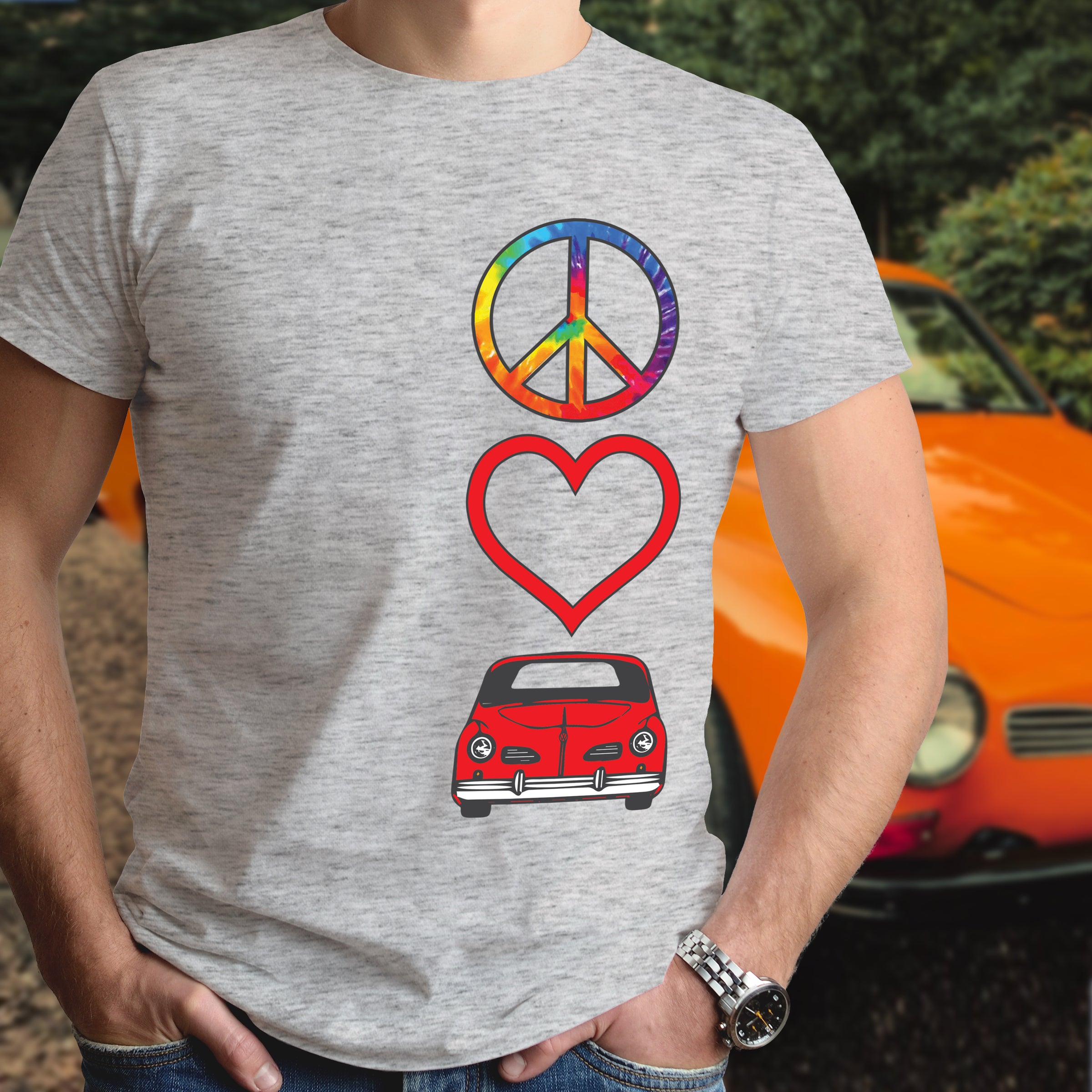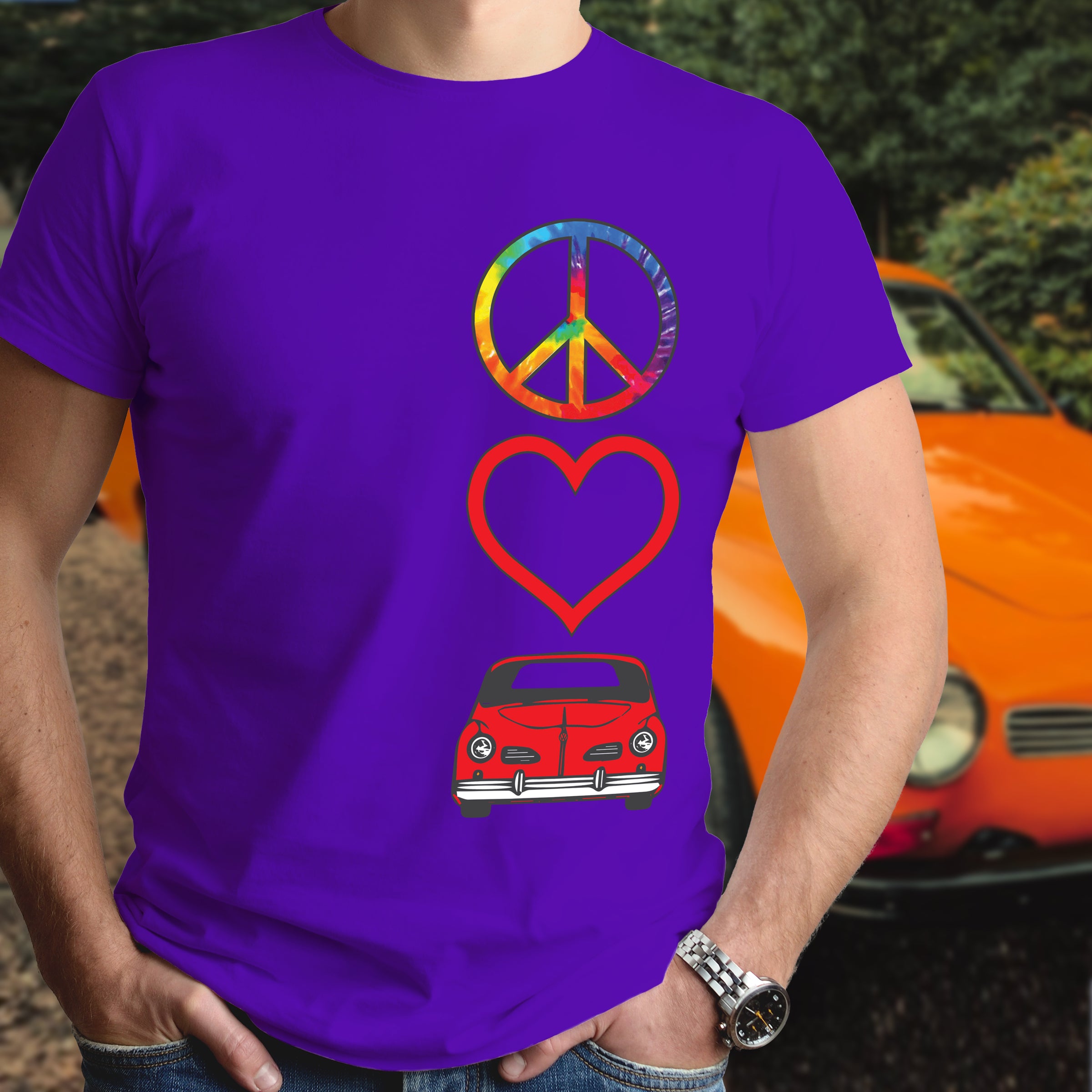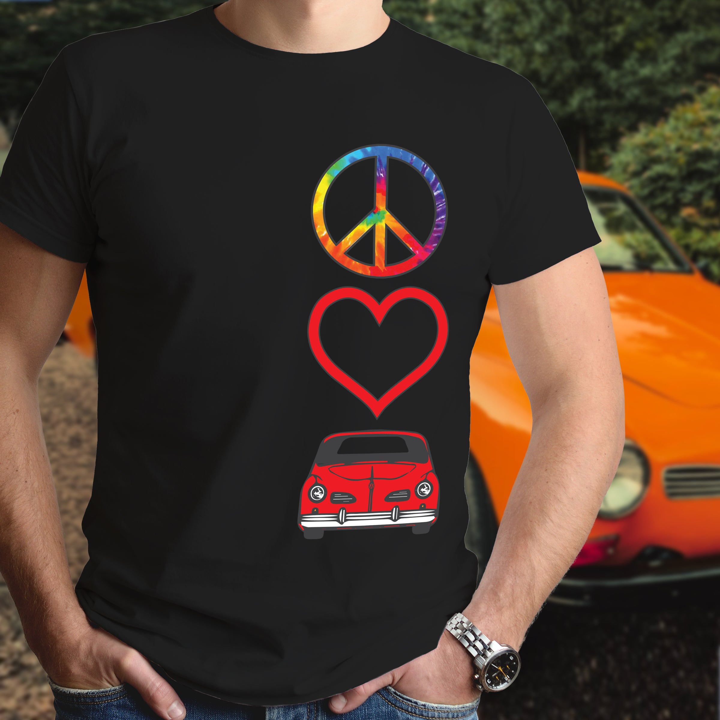 Celebrate timeless automotive passion with this Peace Love Karmann Ghia shirt. Perfect for air-cooled enthusiasts and classic car lovers, this tee combines retro vibes with meaningful symbolism. Whether you're cruising to car shows or expressing your devotion to iconic VW heritage, this shirt makes a bold statement. Comfortable, versatile, and unmistakably cool—wear your love for legendary engineering and vintage style with pride.