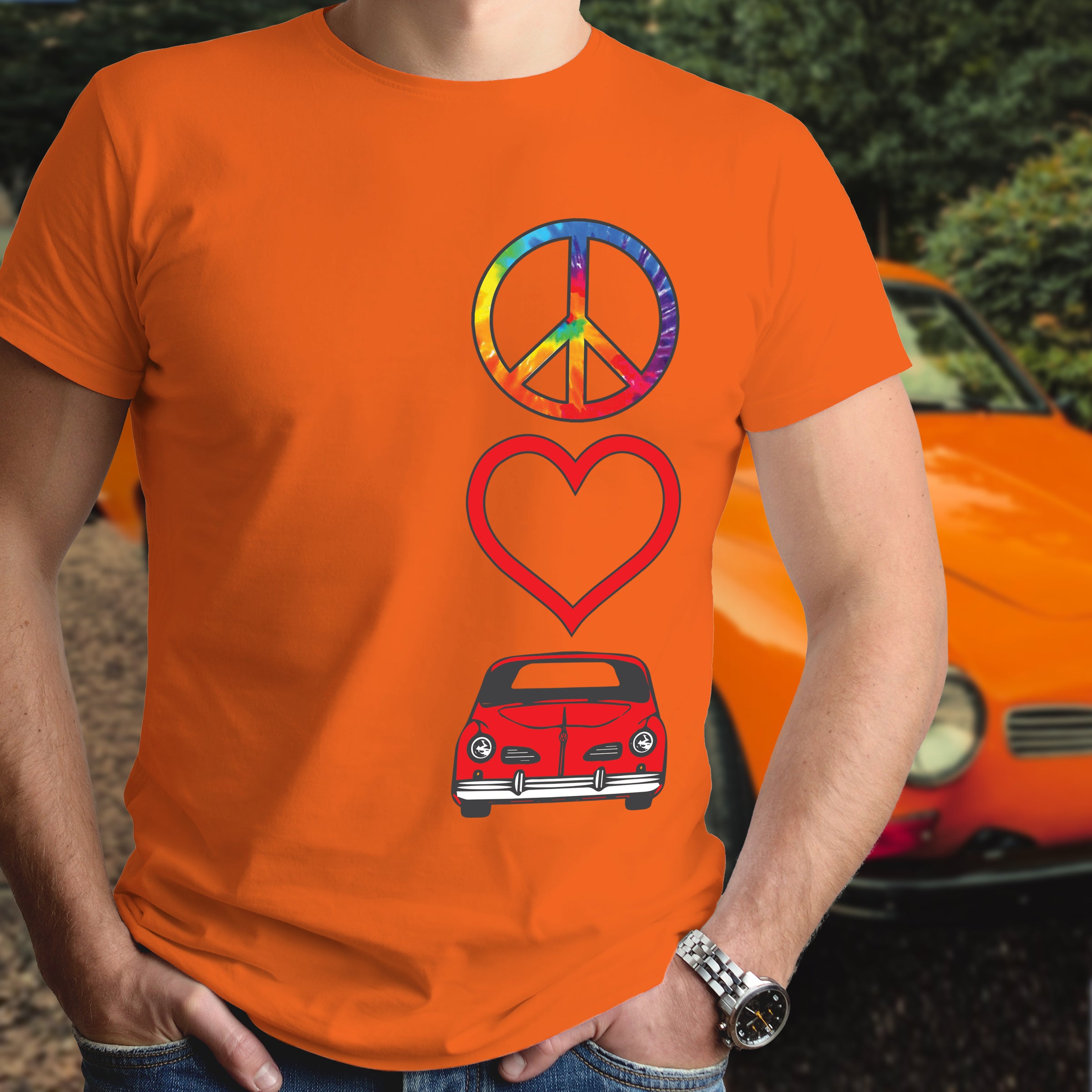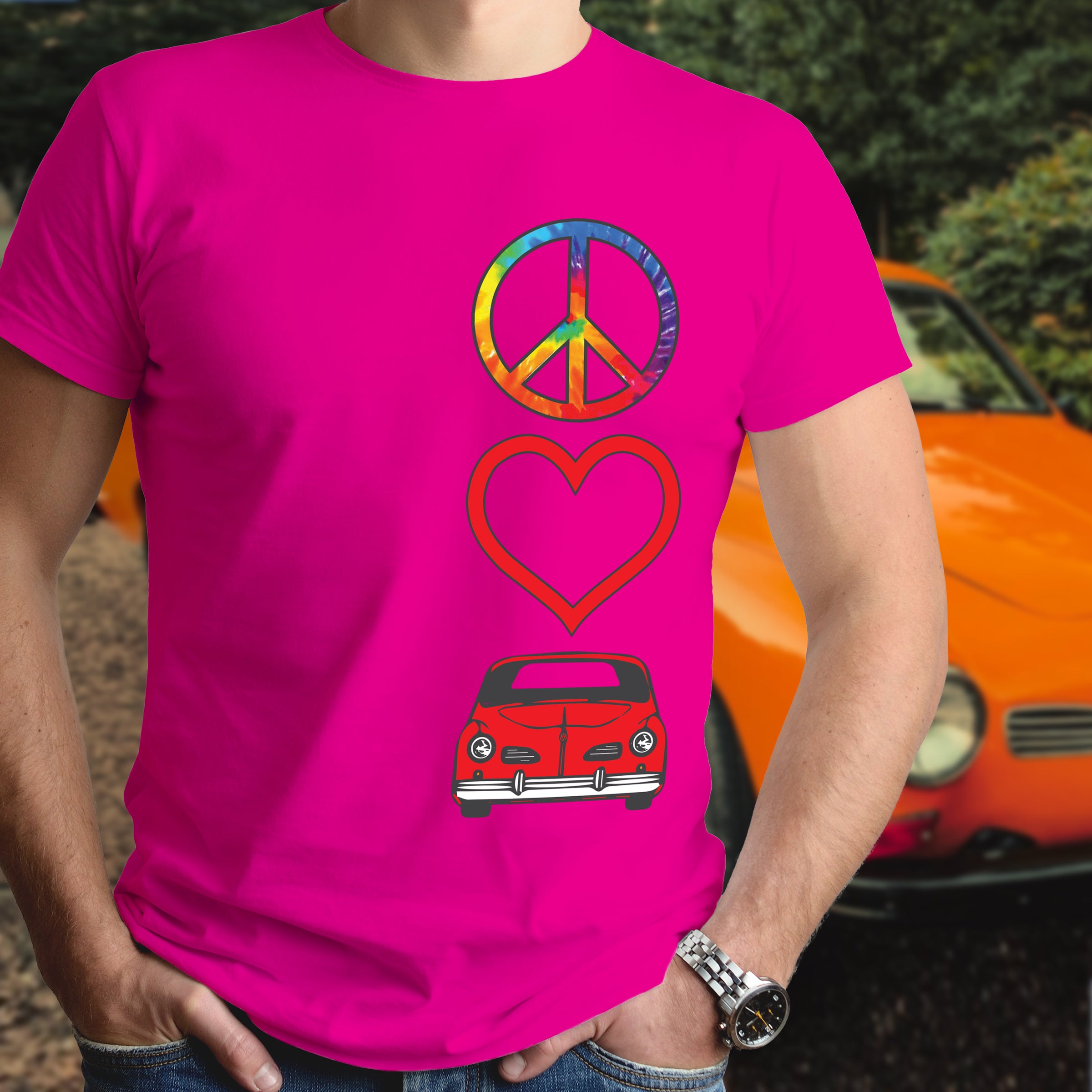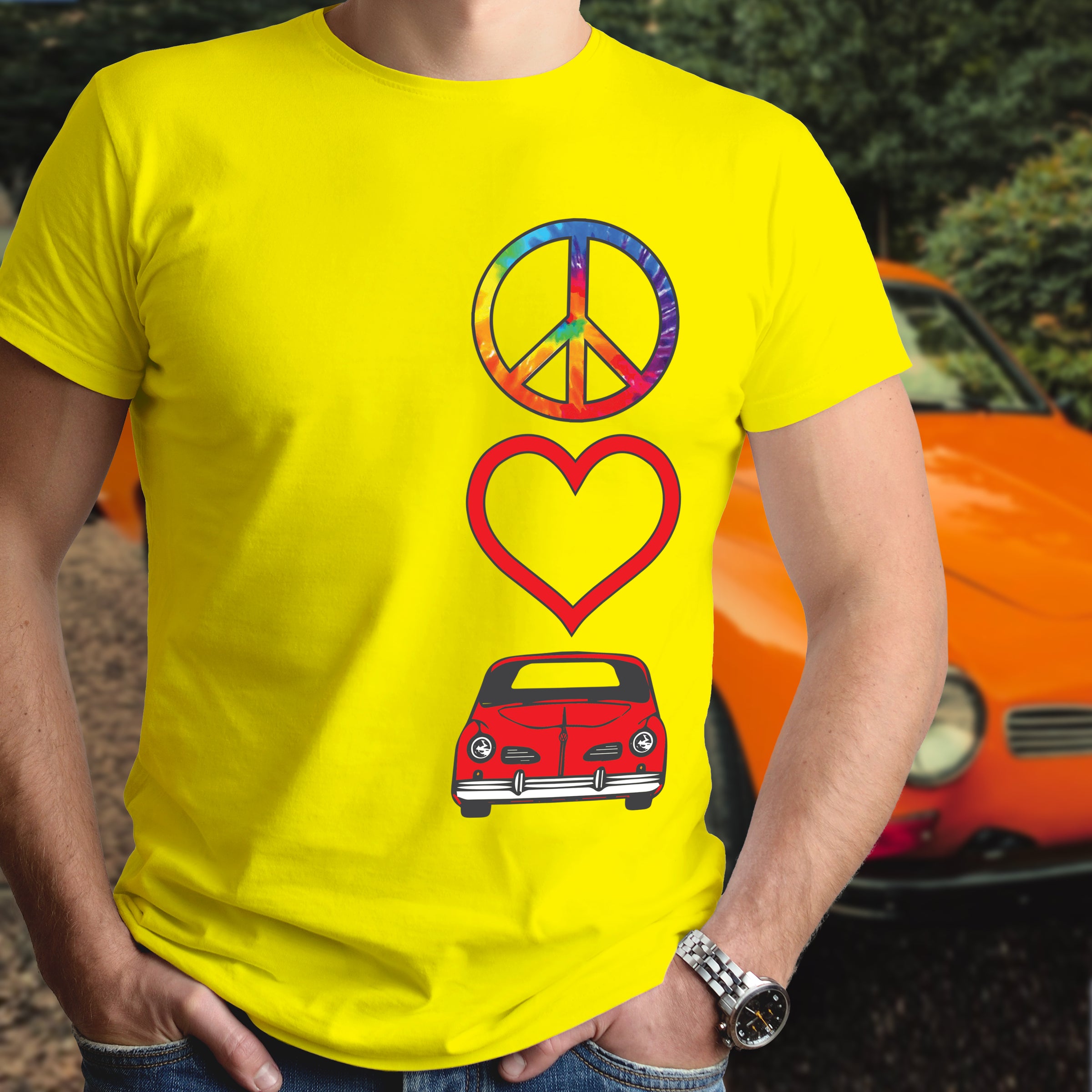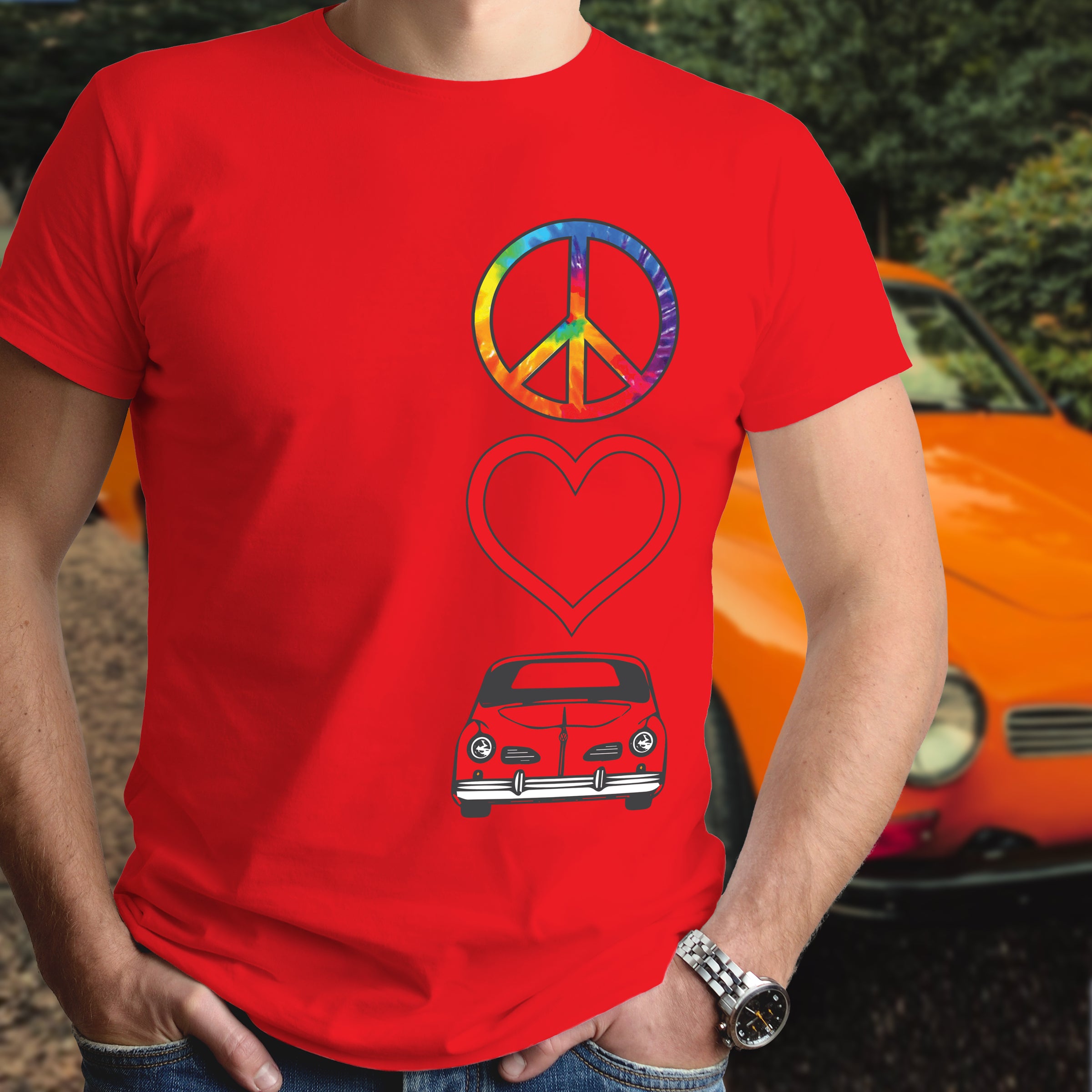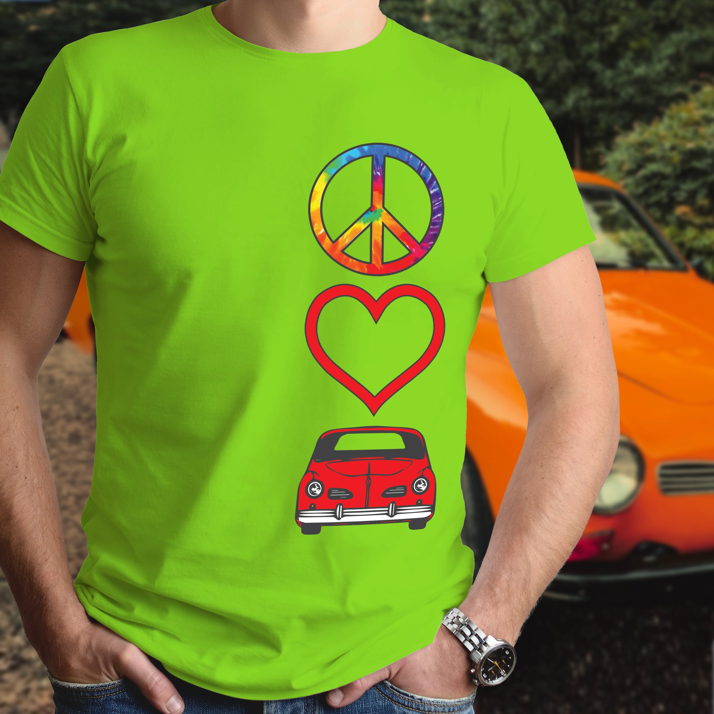 Celebrate timeless automotive passion with this Peace Love Karmann Ghia shirt. Perfect for air-cooled enthusiasts and classic car lovers, this tee combines retro vibes with meaningful symbolism. Whether you're cruising to car shows or expressing your devotion to iconic VW heritage, this shirt makes a bold statement. Comfortable, versatile, and unmistakably cool—wear your love for legendary engineering and vintage style with pride.