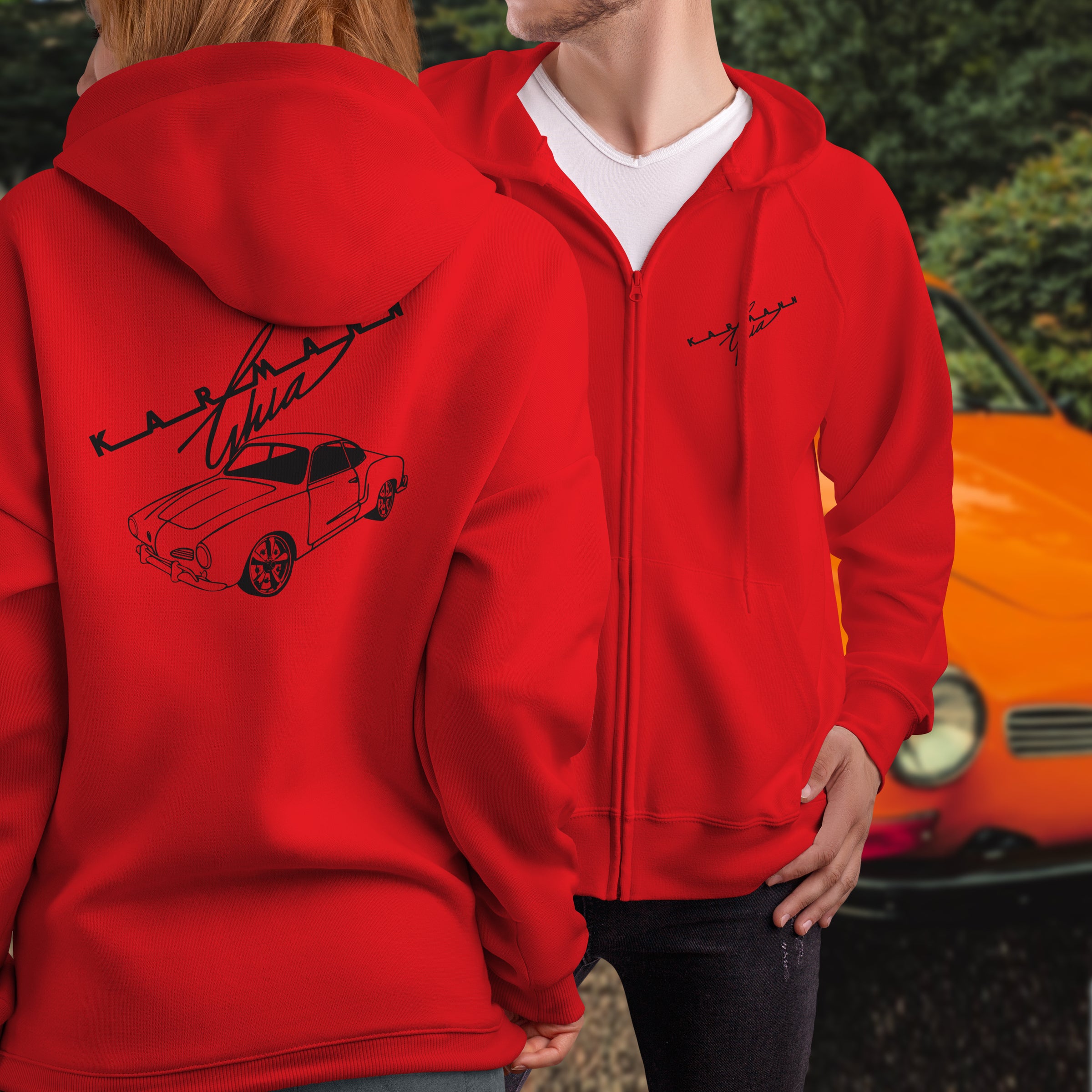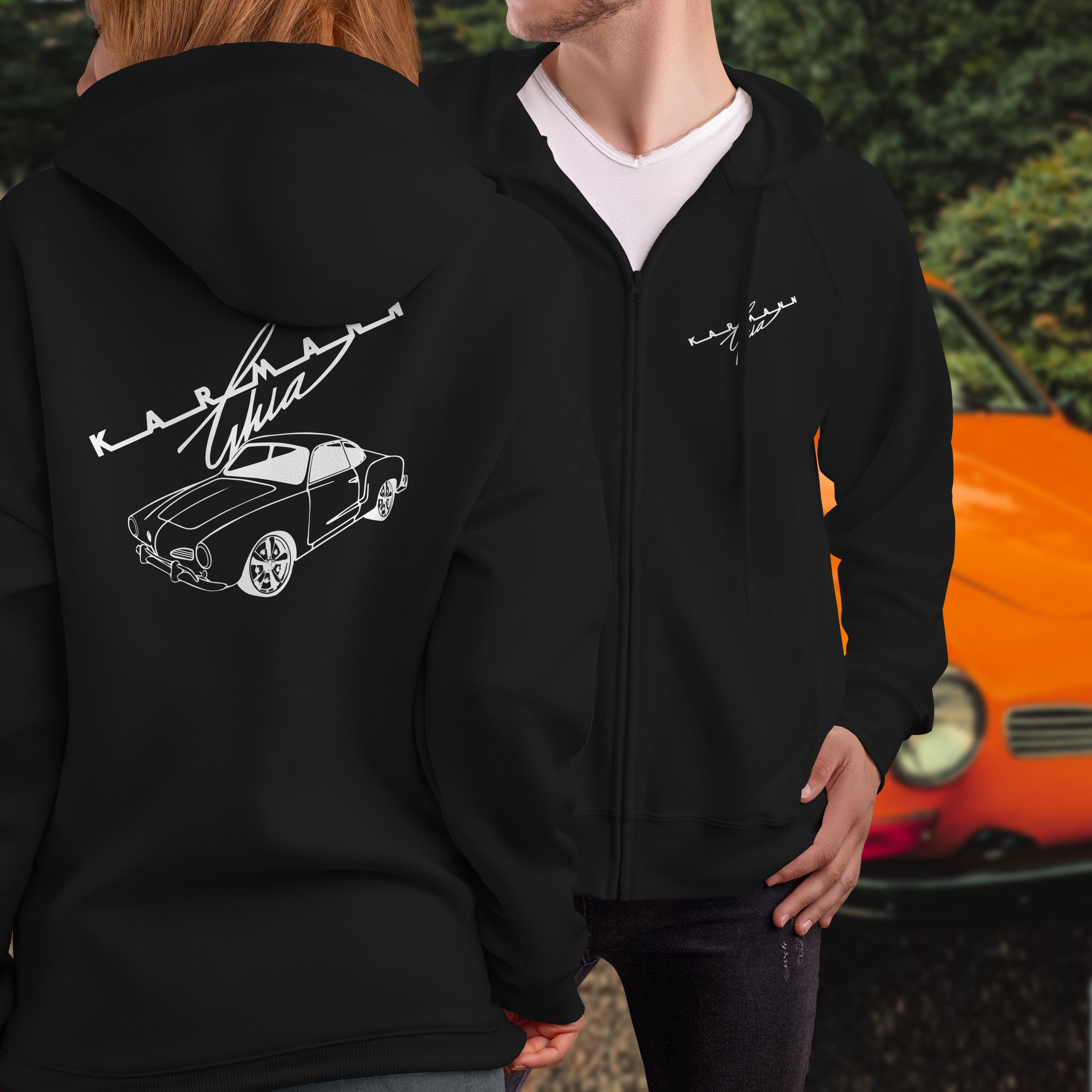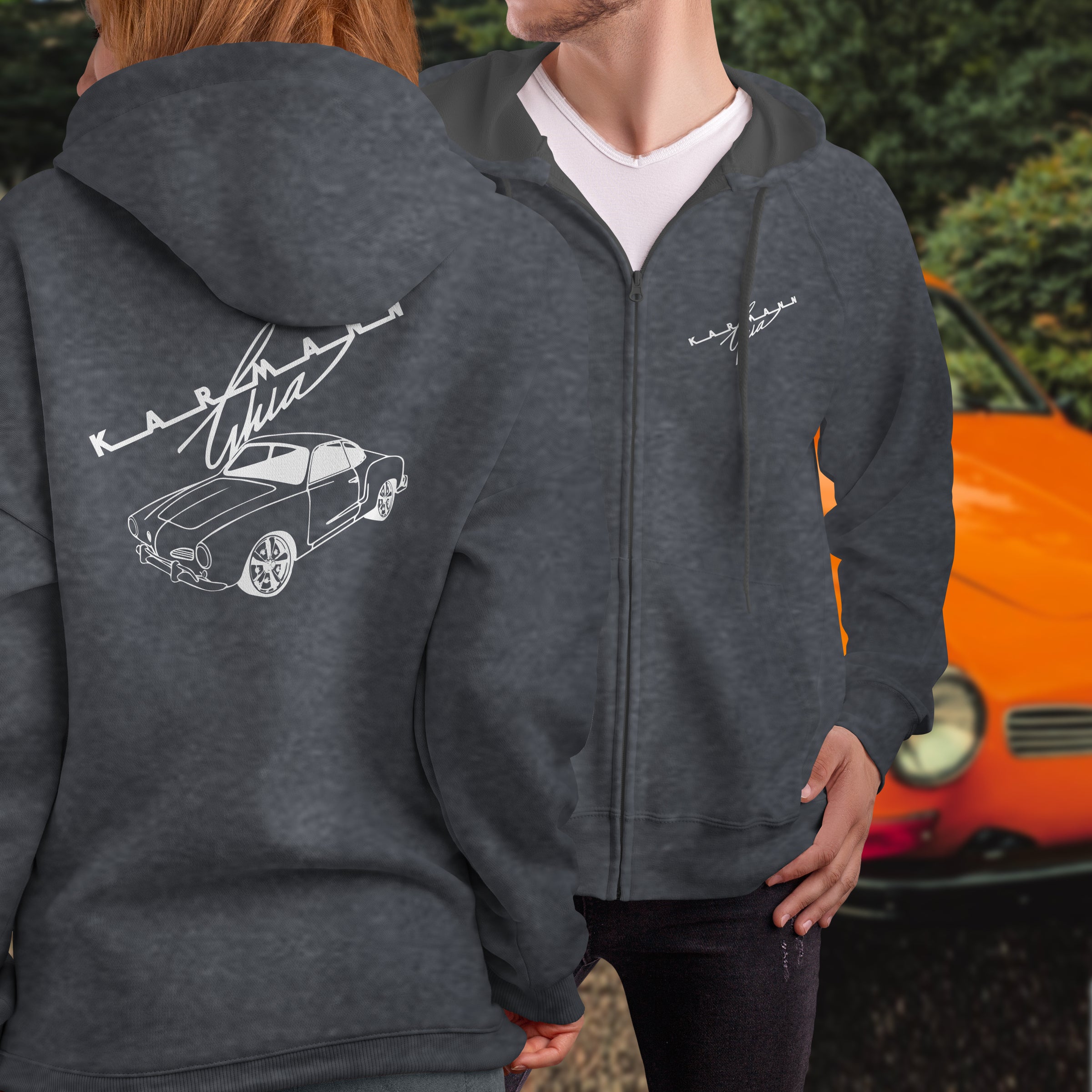 Celebrate automotive heritage with this VW Karmann Ghia Logo Full Zip Hoodie. Crafted for enthusiasts who appreciate classic design, this premium hoodie features the iconic Karmann Ghia emblem that pays homage to one of history's most elegant vehicles. The full zip construction offers versatile layering, while quality fabric ensures comfort whether you're at the track or cruising town. Perfect for showing your passion for vintage German engineering and timeless style. Make a statement that resonates with fellow car lovers.