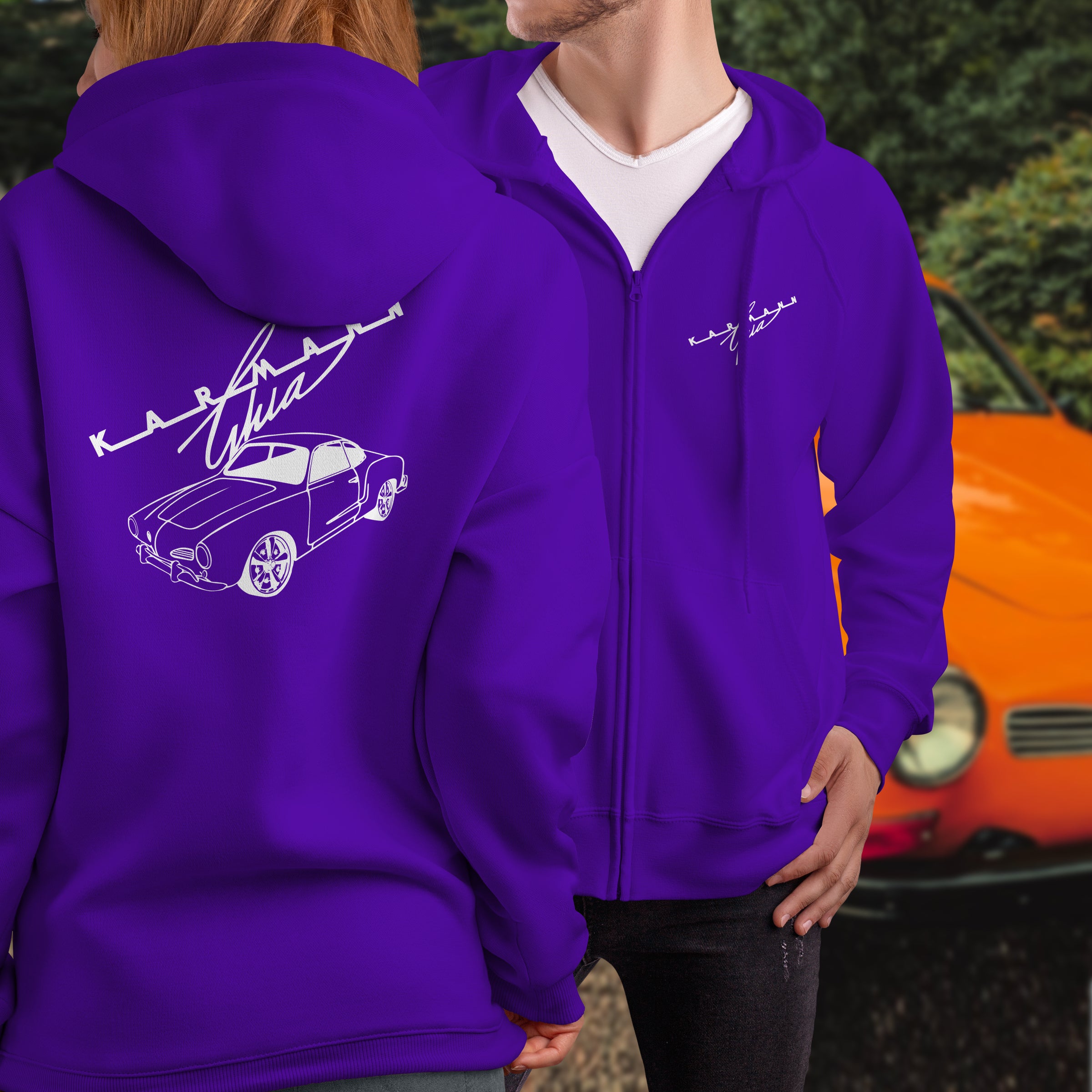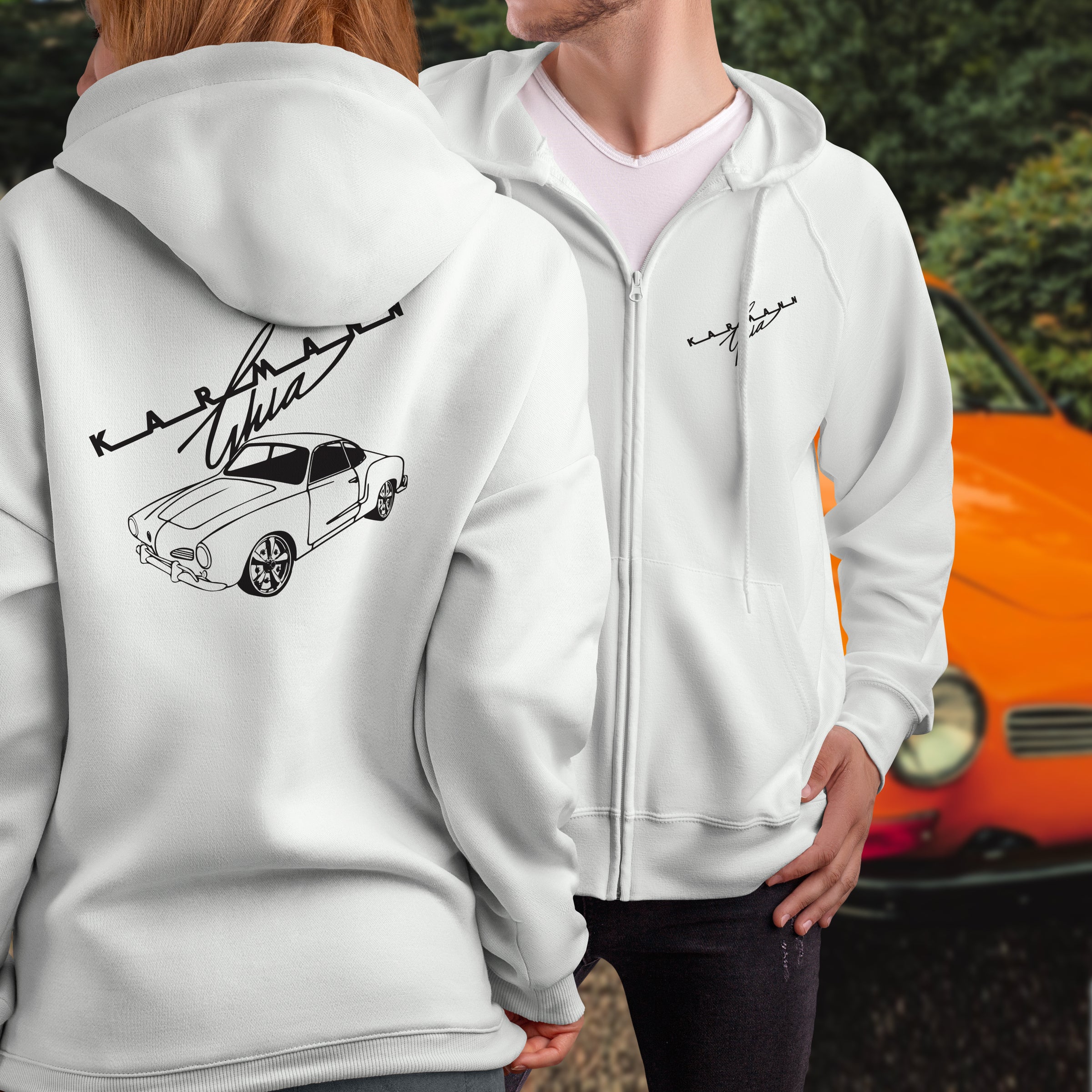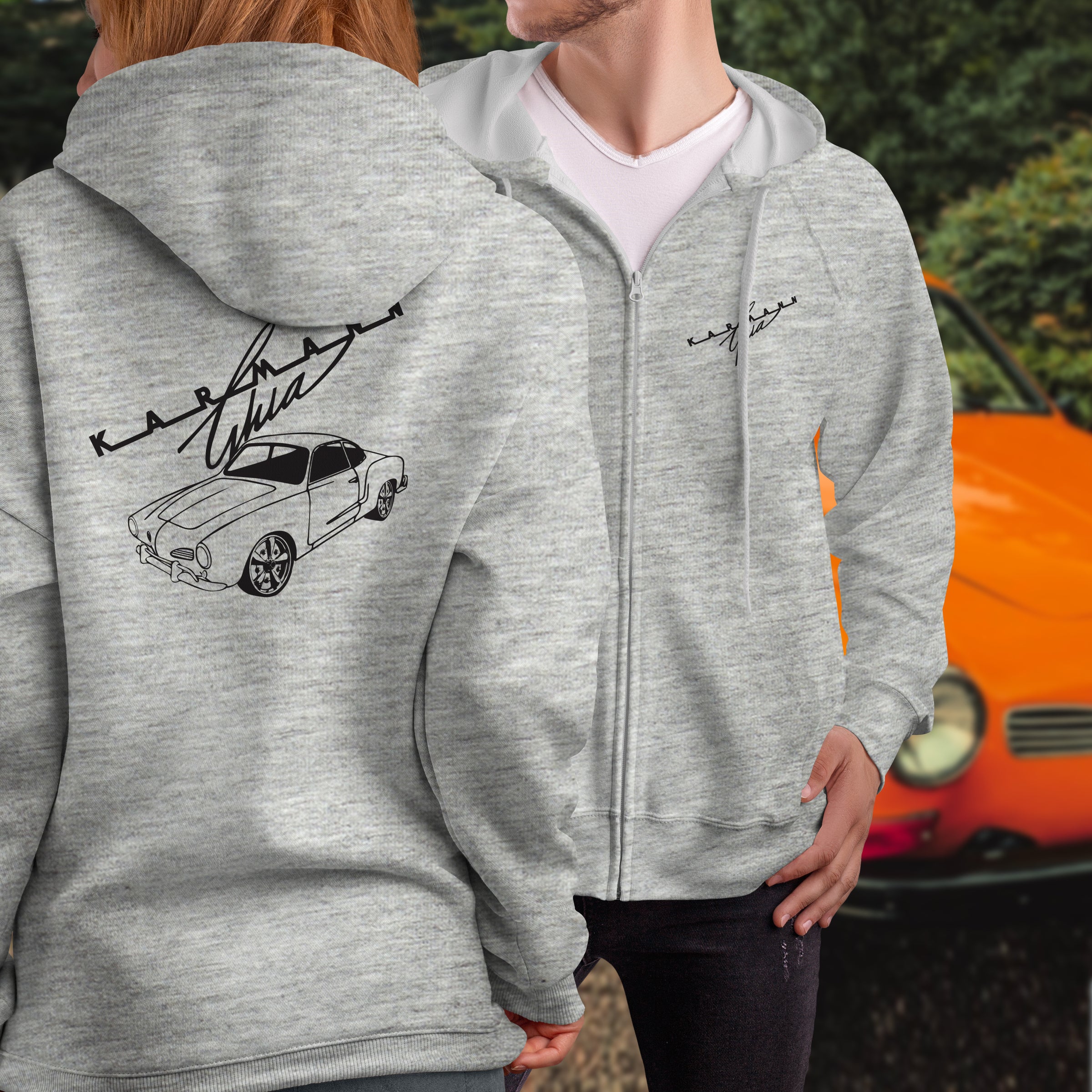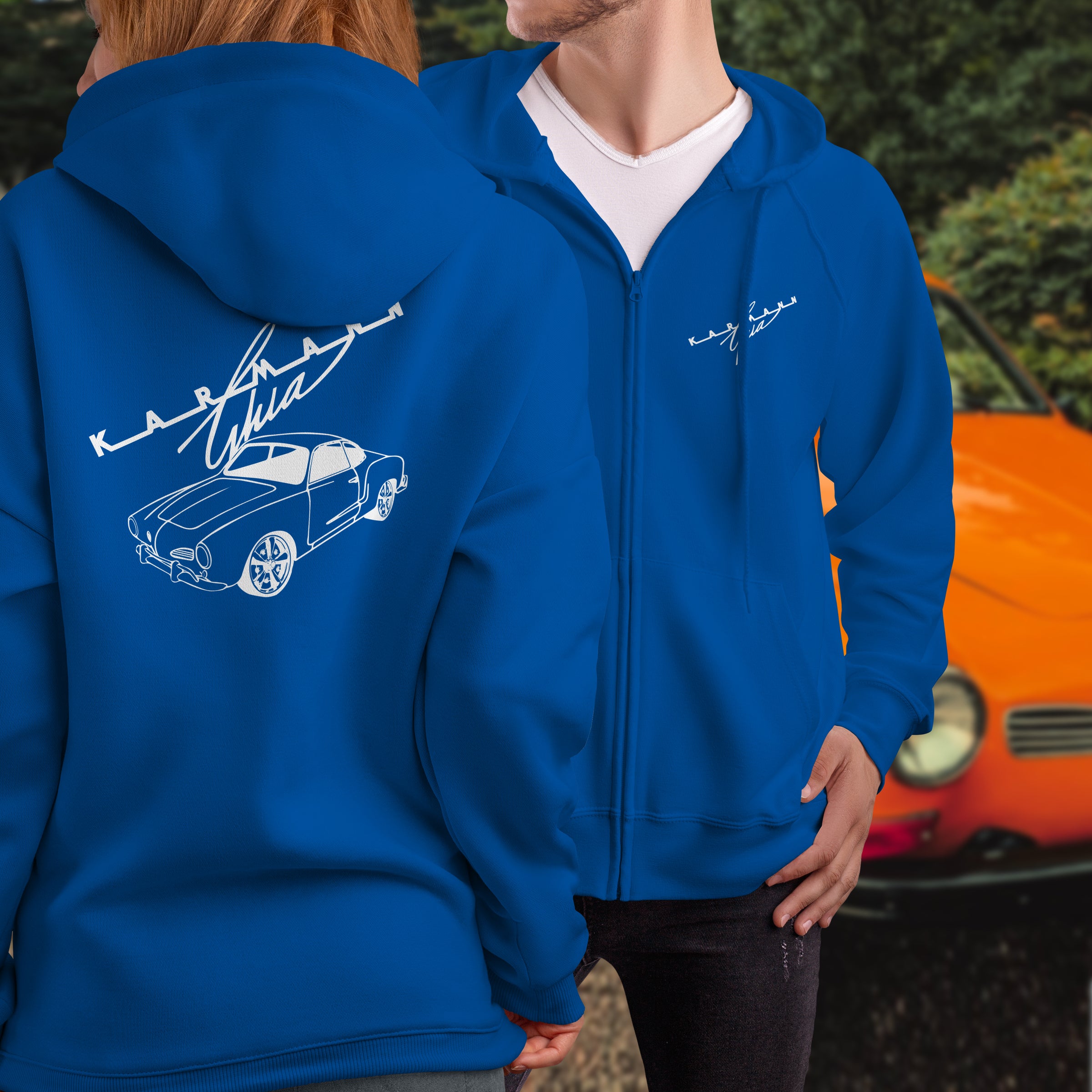 Celebrate automotive heritage with this VW Karmann Ghia Logo Full Zip Hoodie. Crafted for enthusiasts who appreciate classic design, this premium hoodie features the iconic Karmann Ghia emblem that pays homage to one of history's most elegant vehicles. The full zip construction offers versatile layering, while quality fabric ensures comfort whether you're at the track or cruising town. Perfect for showing your passion for vintage German engineering and timeless style. Make a statement that resonates with fellow car lovers.